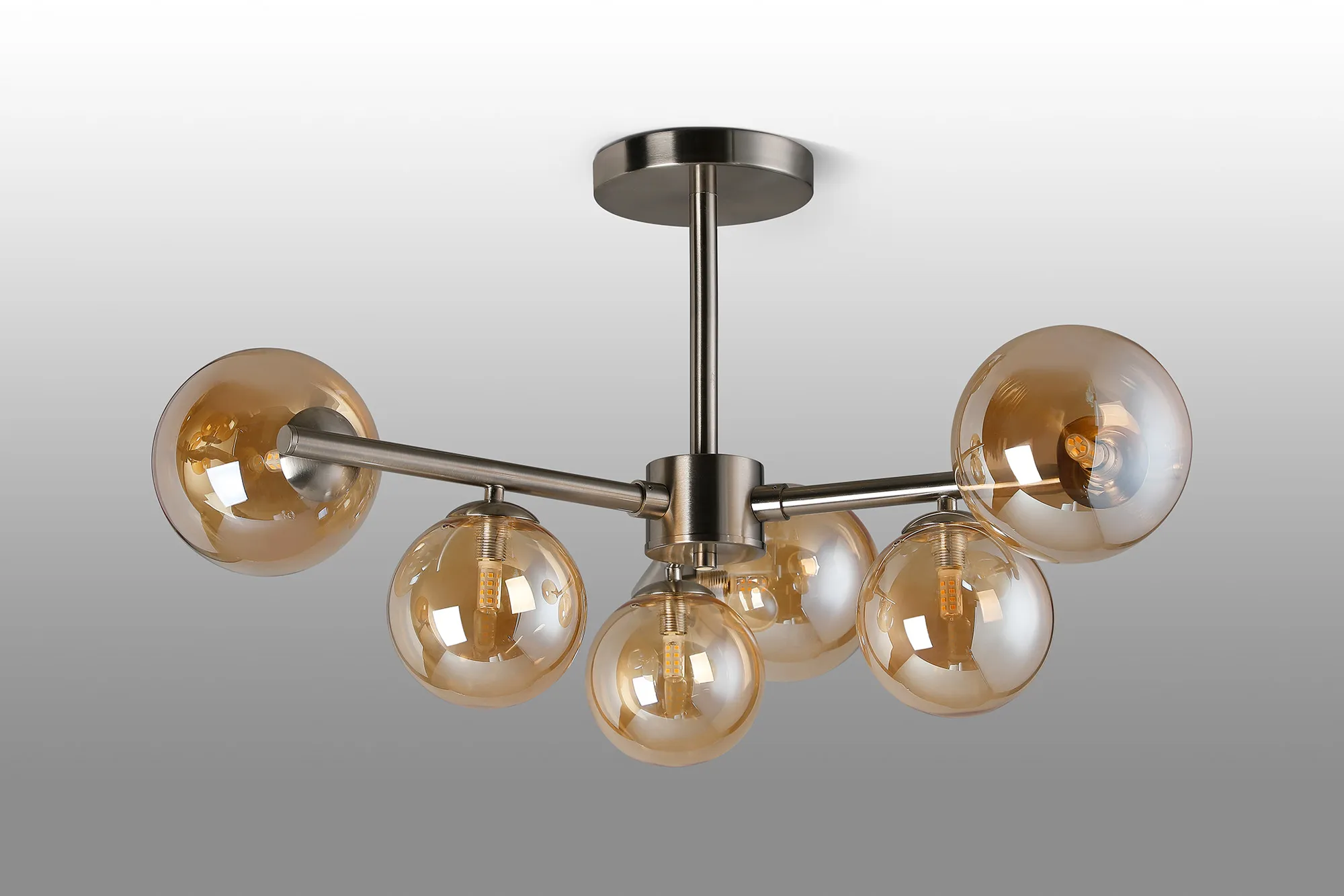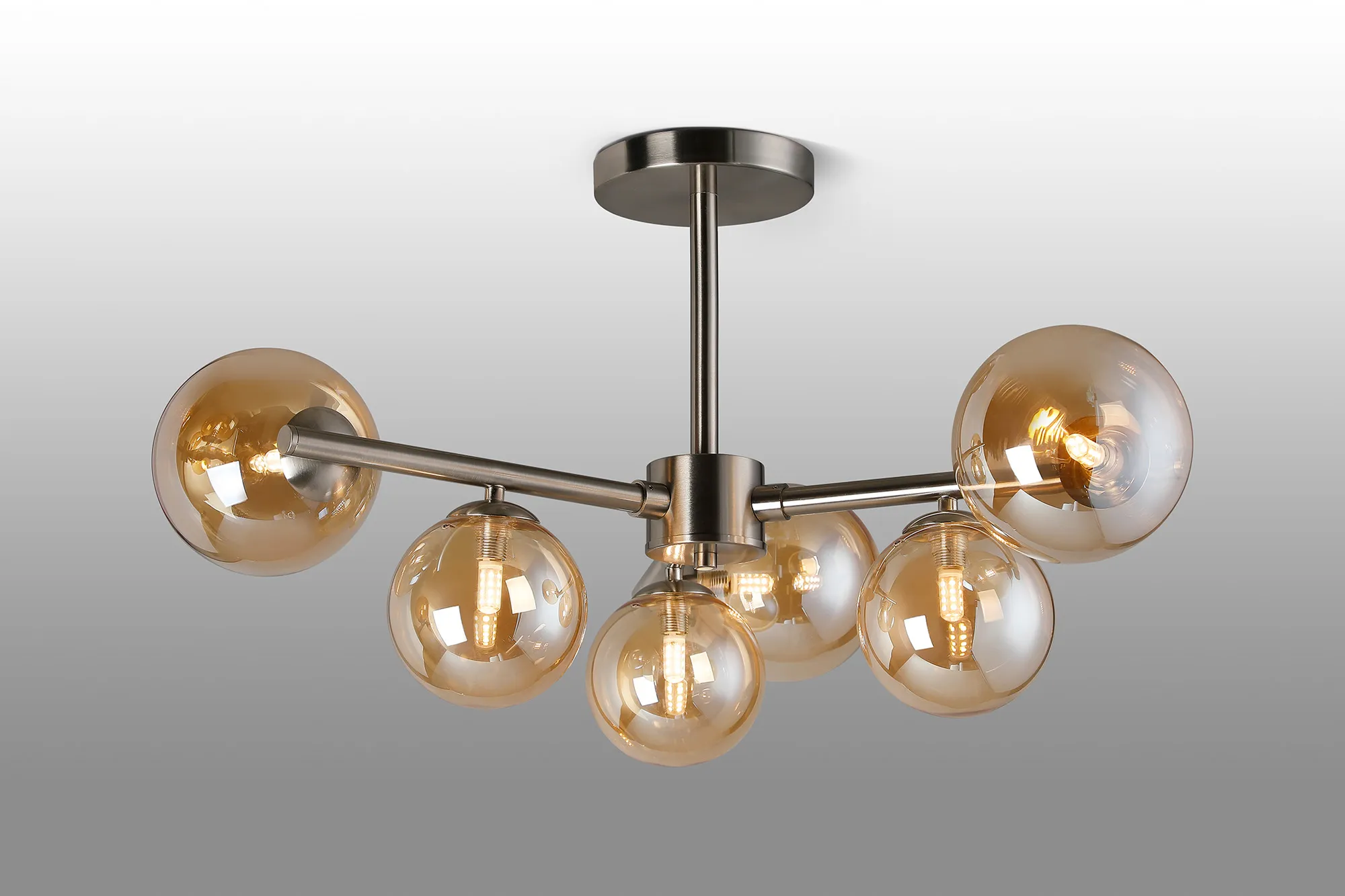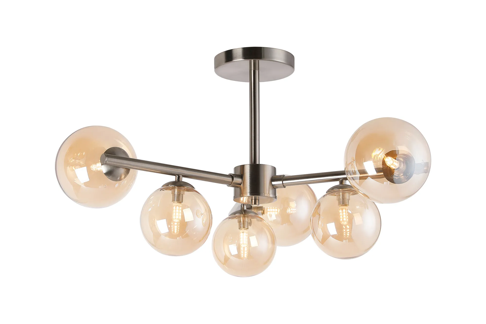 OTHER Wayburn 71.5cm Semi-Flush 3 Arm Ceiling Light, 6 x G9, Satin Nickel, Amber Plated Glass