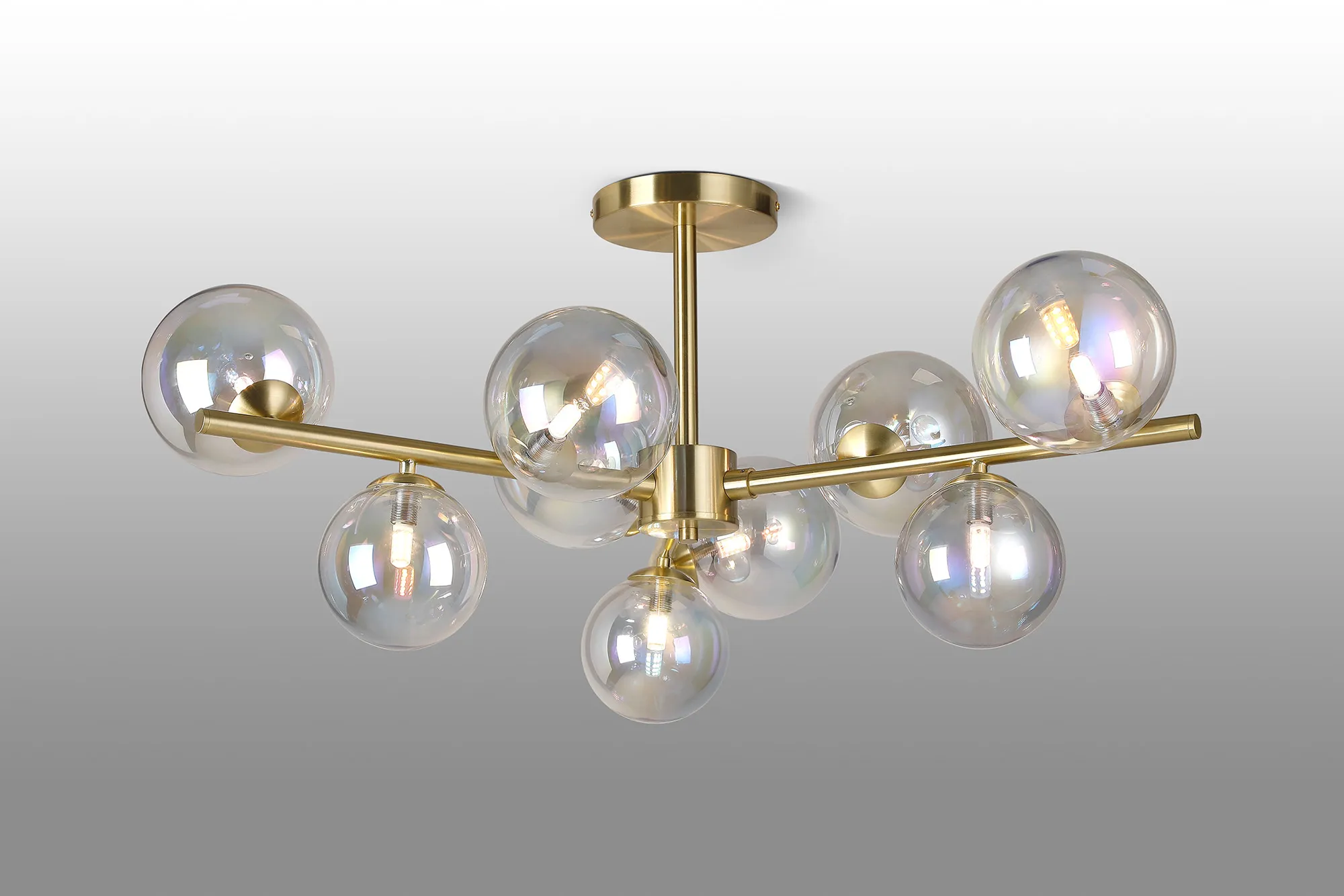 Wayburn Table Lamp, 2 x G9, Satin Gold, Iridescent Plated Mixed Size Glass