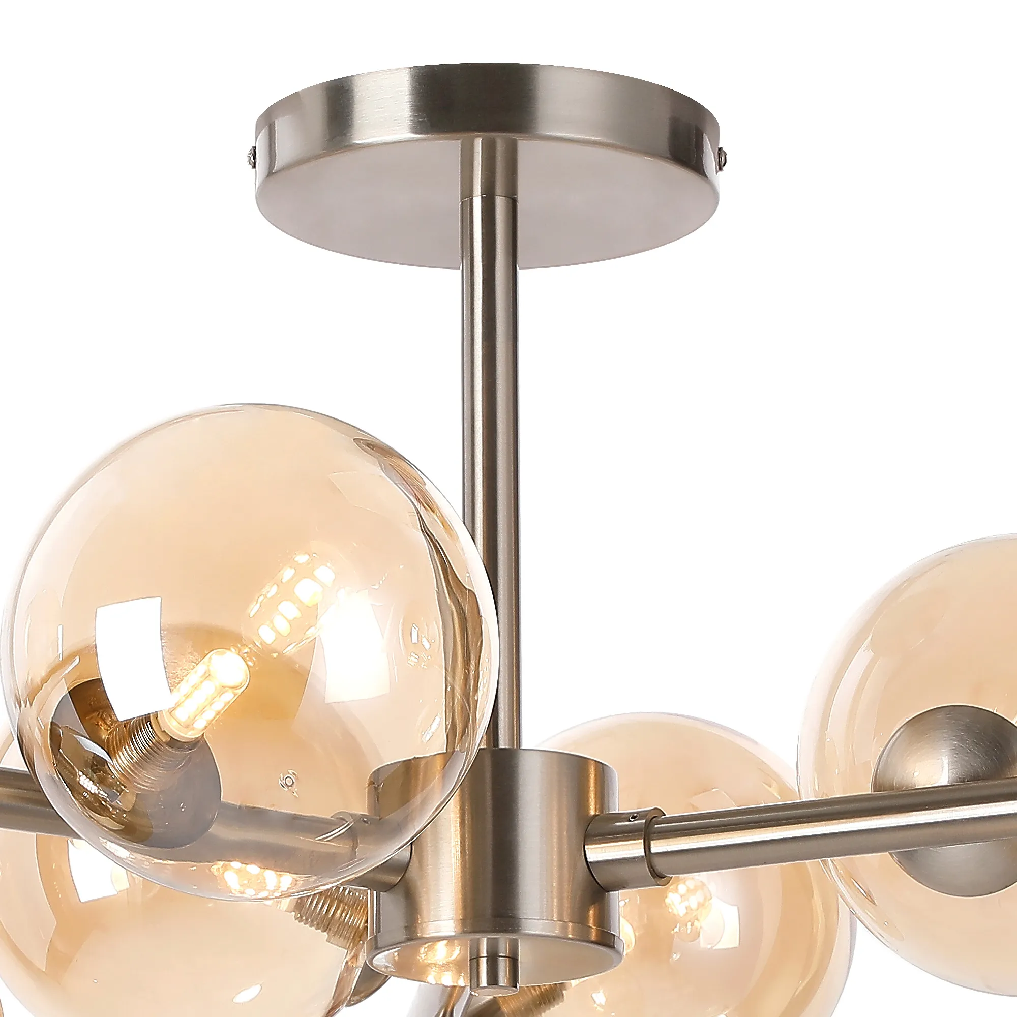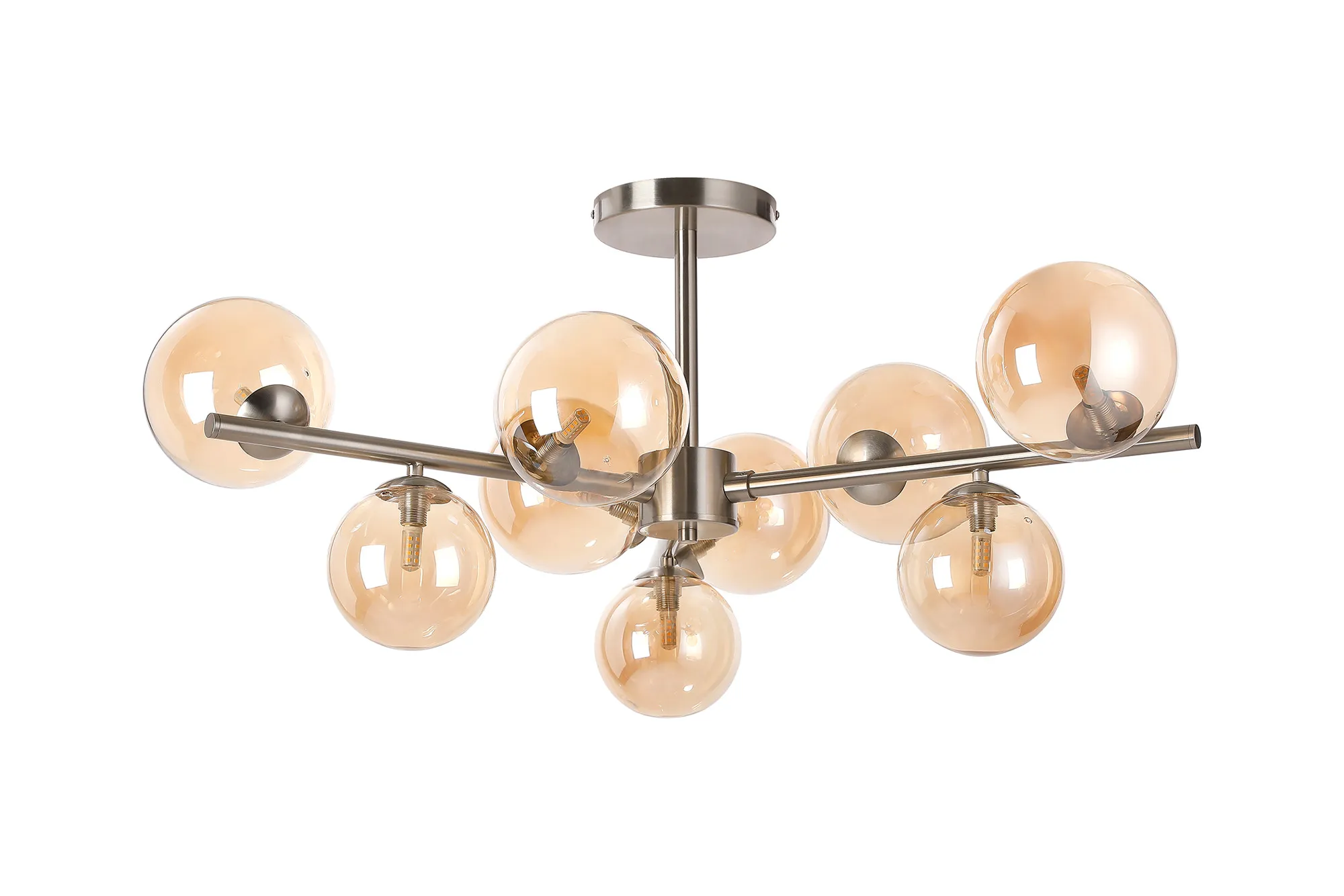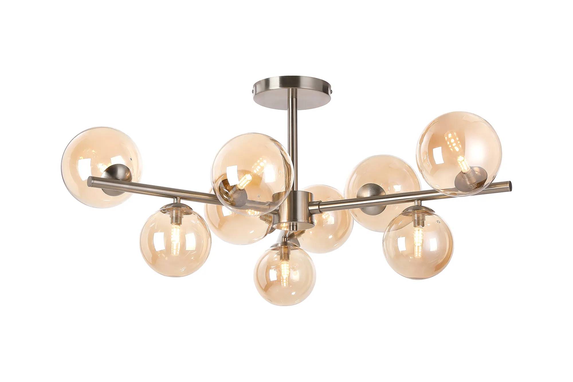 OTHER Wayburn 88cm Semi-Flush 3 Arm Ceiling Light, 9 x G9, Satin Nickel, Amber Plated Glass