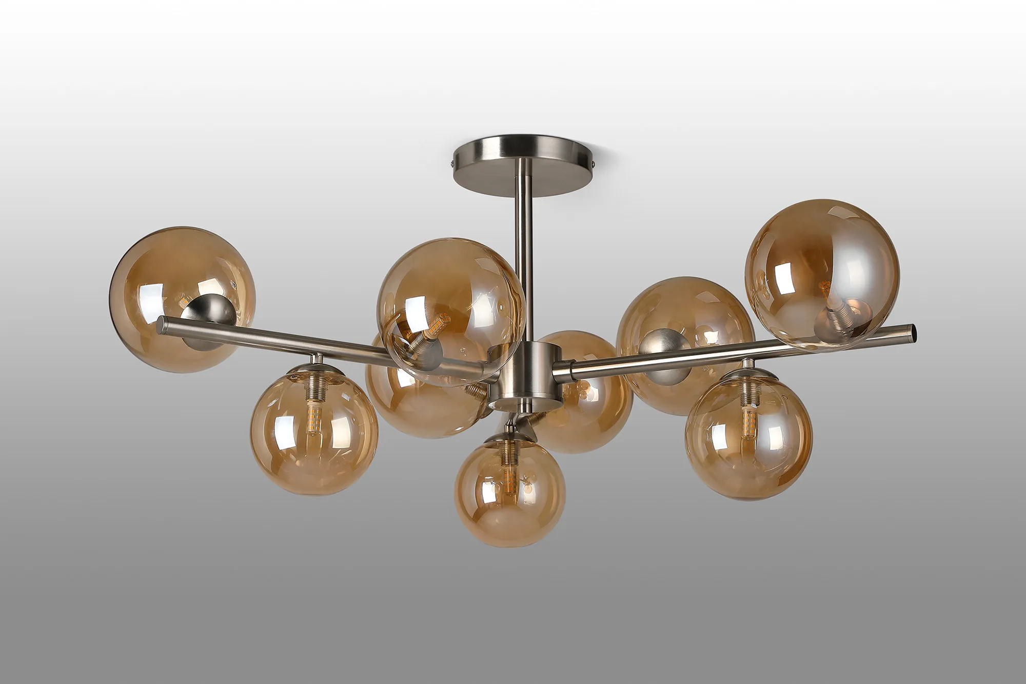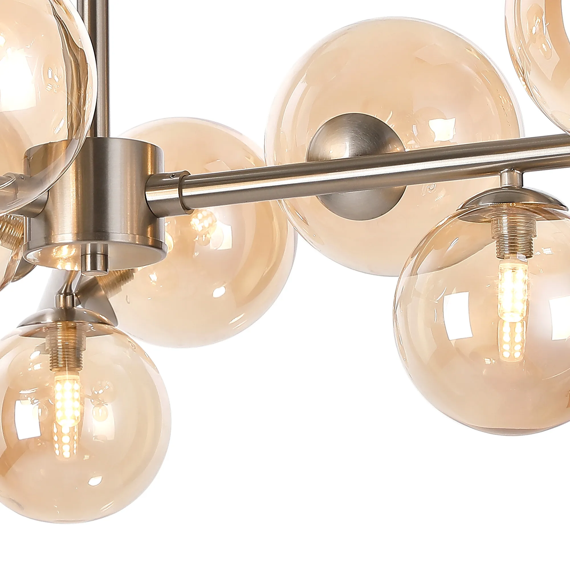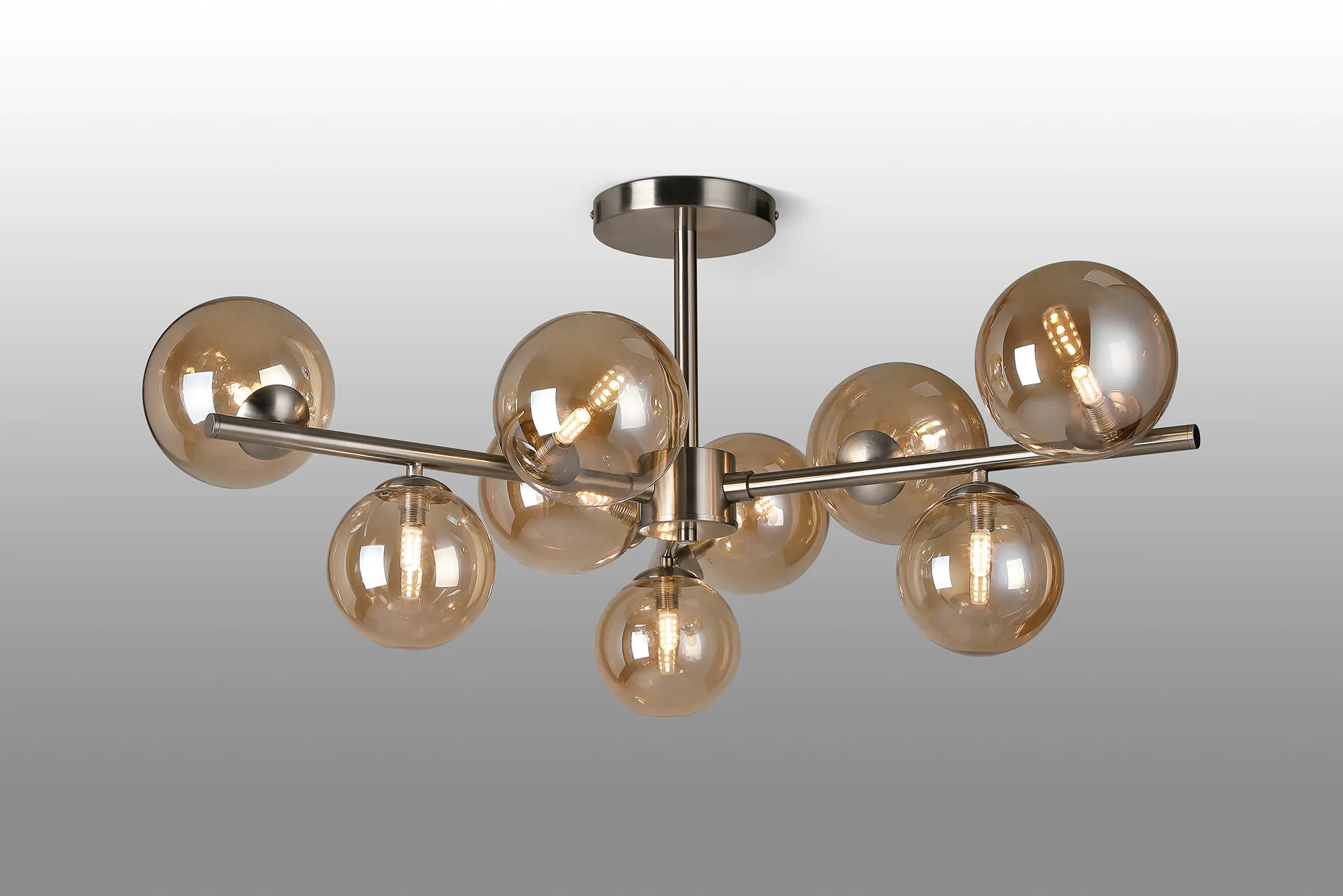 OTHER Wayburn 88cm Semi-Flush 3 Arm Ceiling Light, 9 x G9, Satin Nickel, Amber Plated Glass