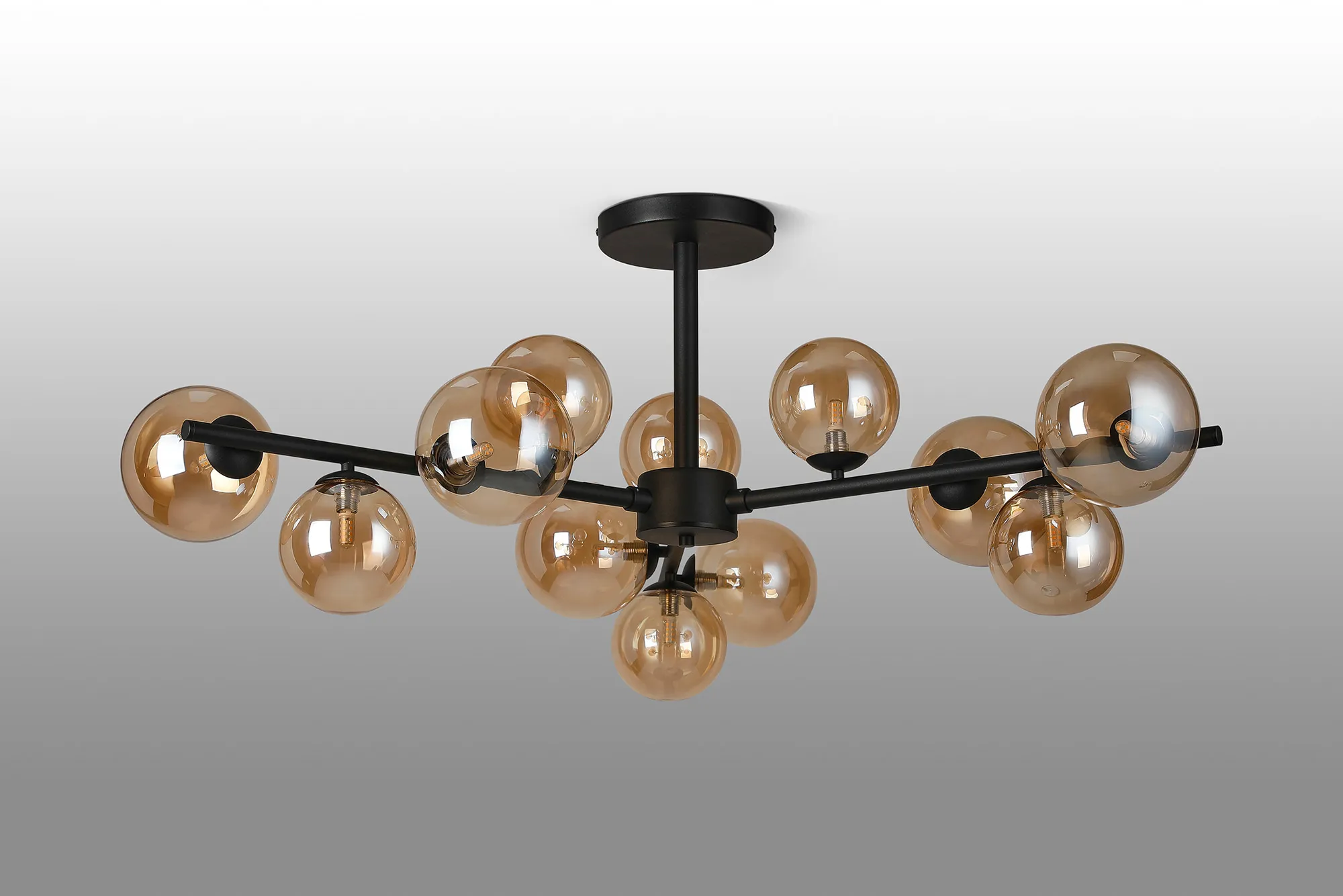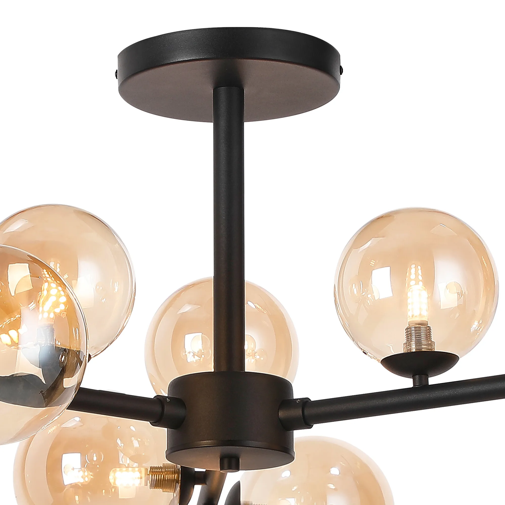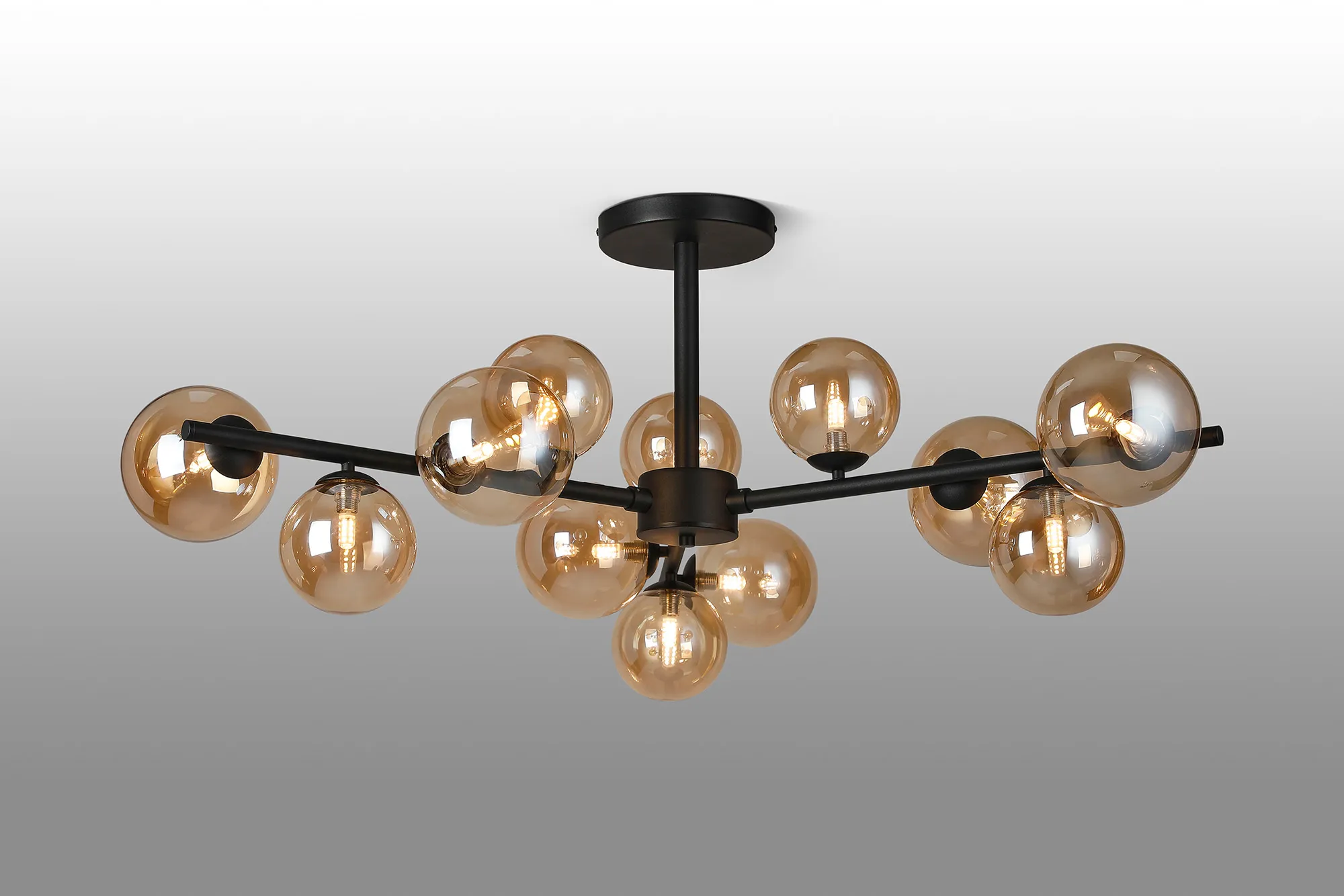 OTHER Wayburn 110cm Semi-Flush 3 Arm Ceiling Light, 12 x G9, Satin Black, Amber Plated Glass