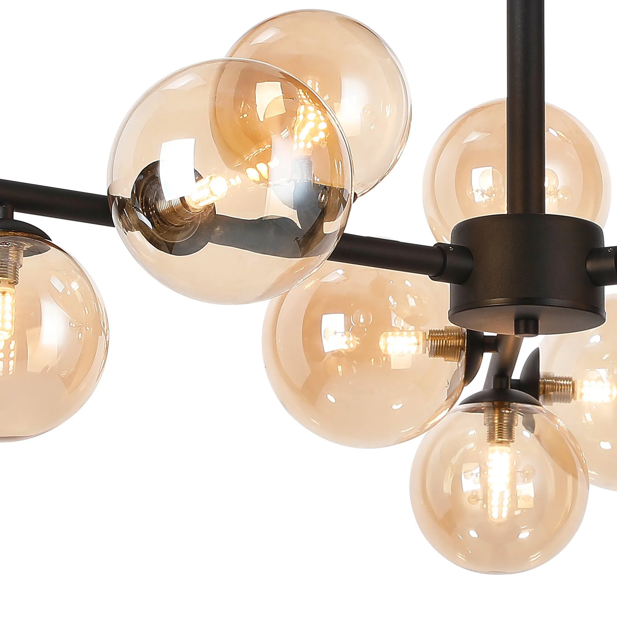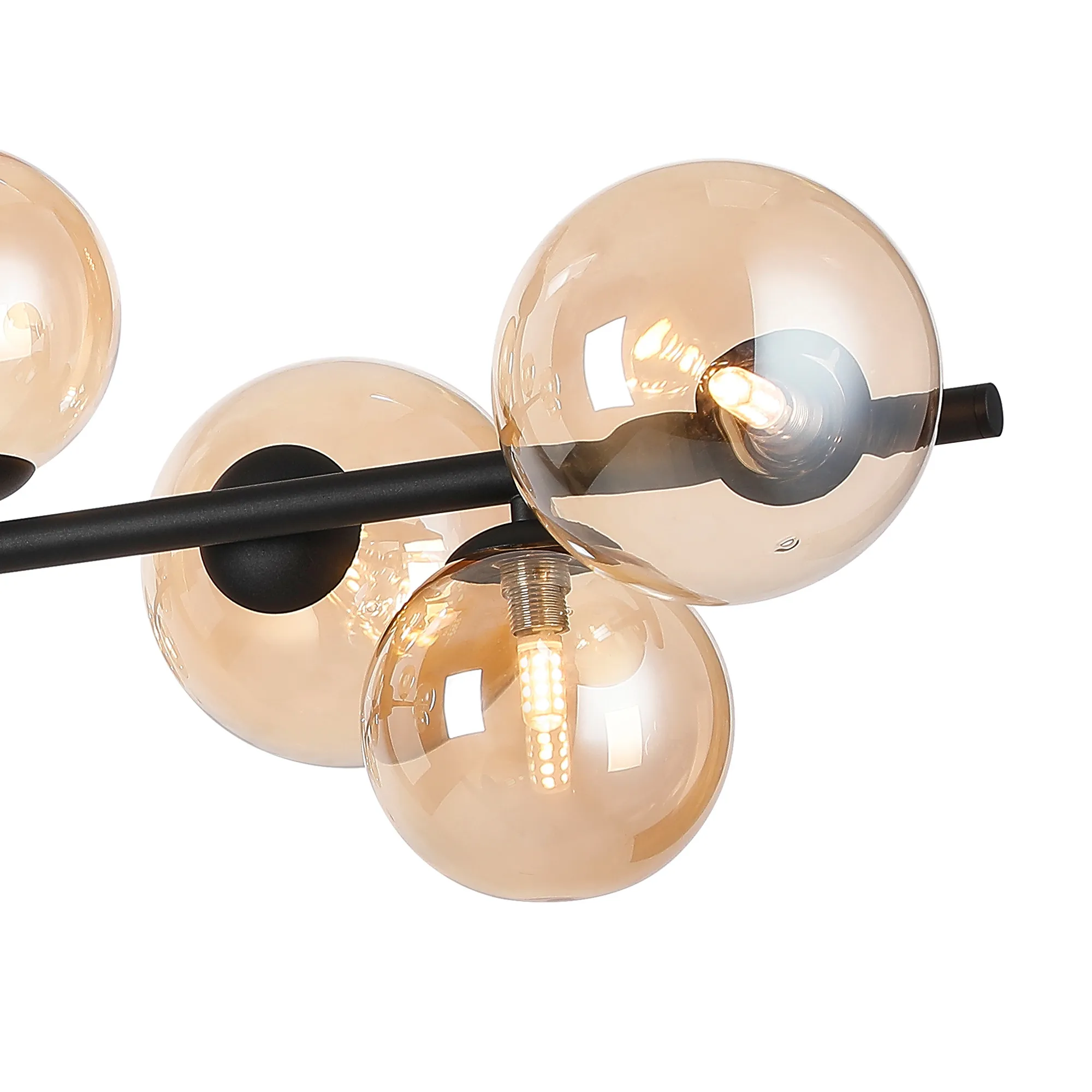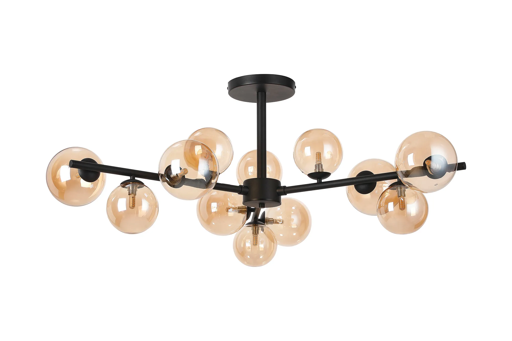 OTHER Wayburn 110cm Semi-Flush 3 Arm Ceiling Light, 12 x G9, Satin Black, Amber Plated Glass