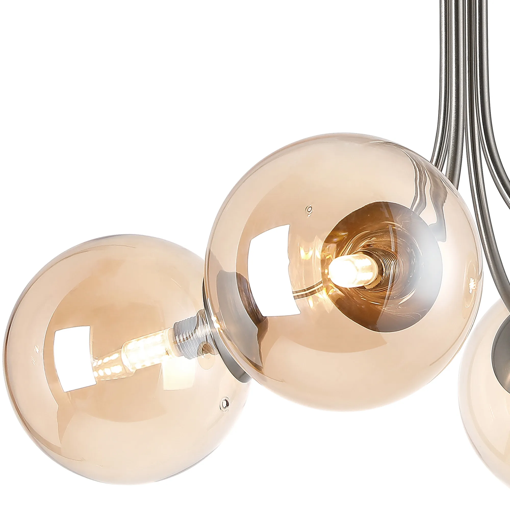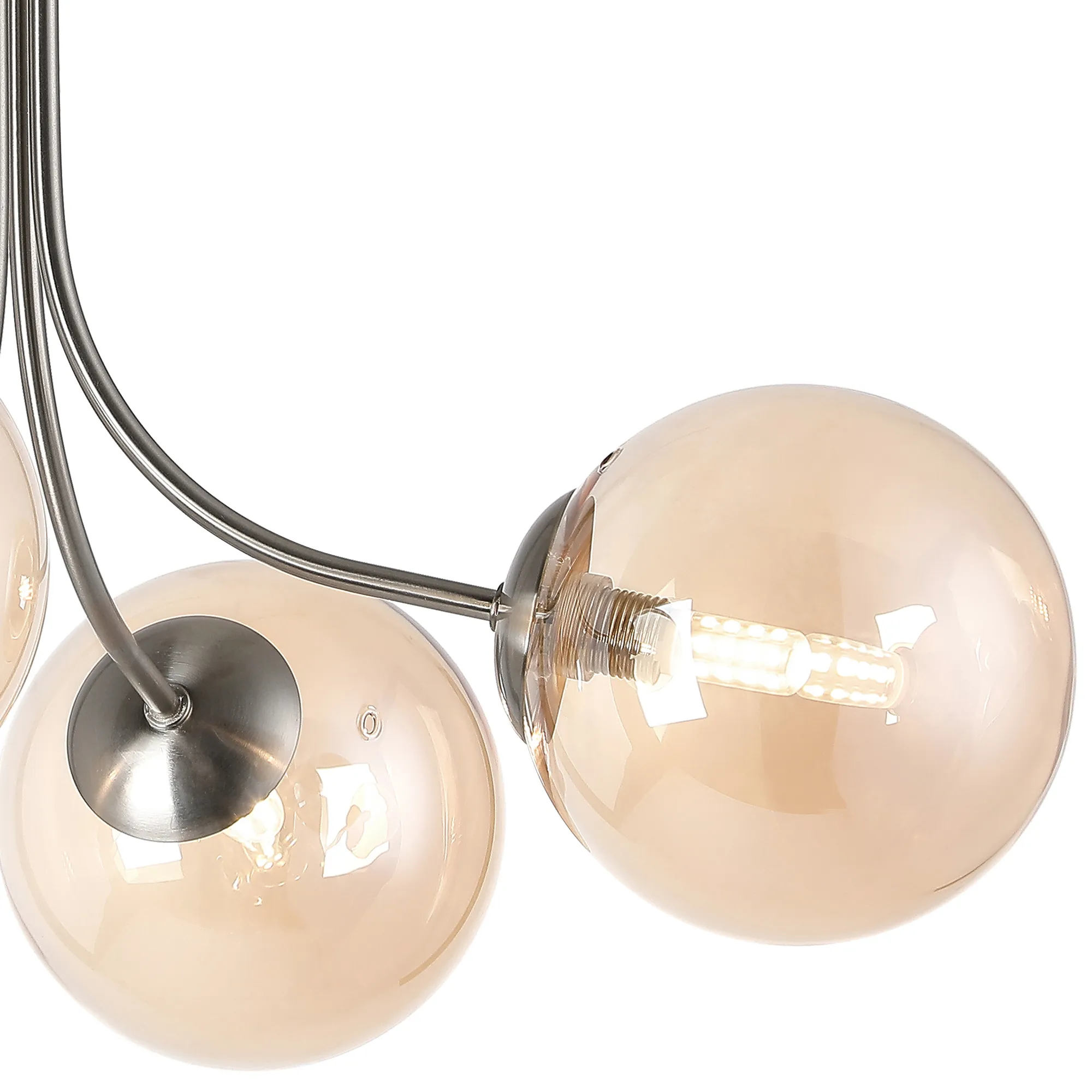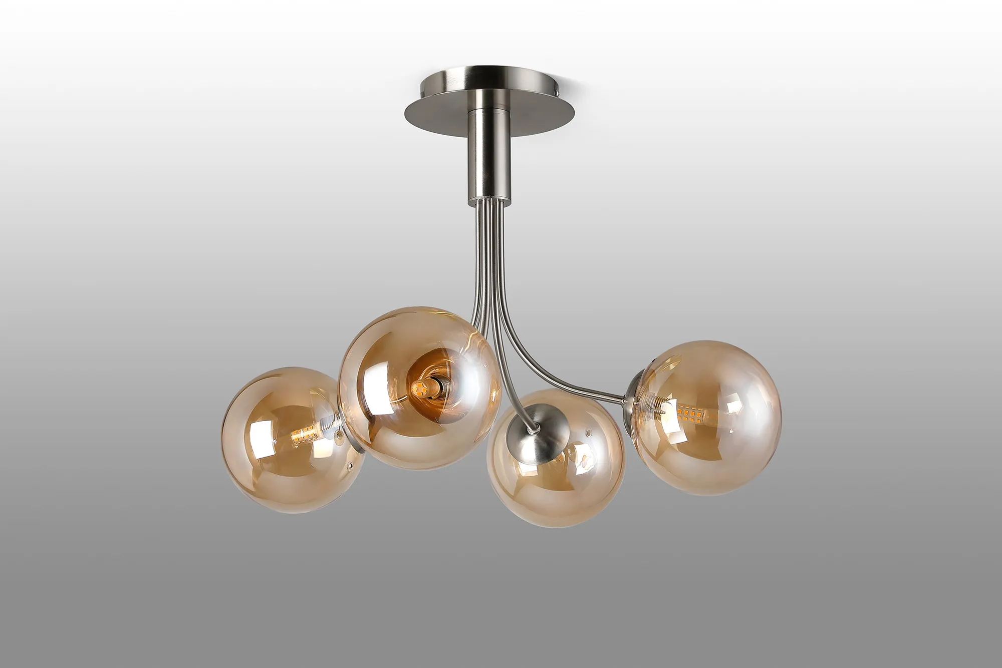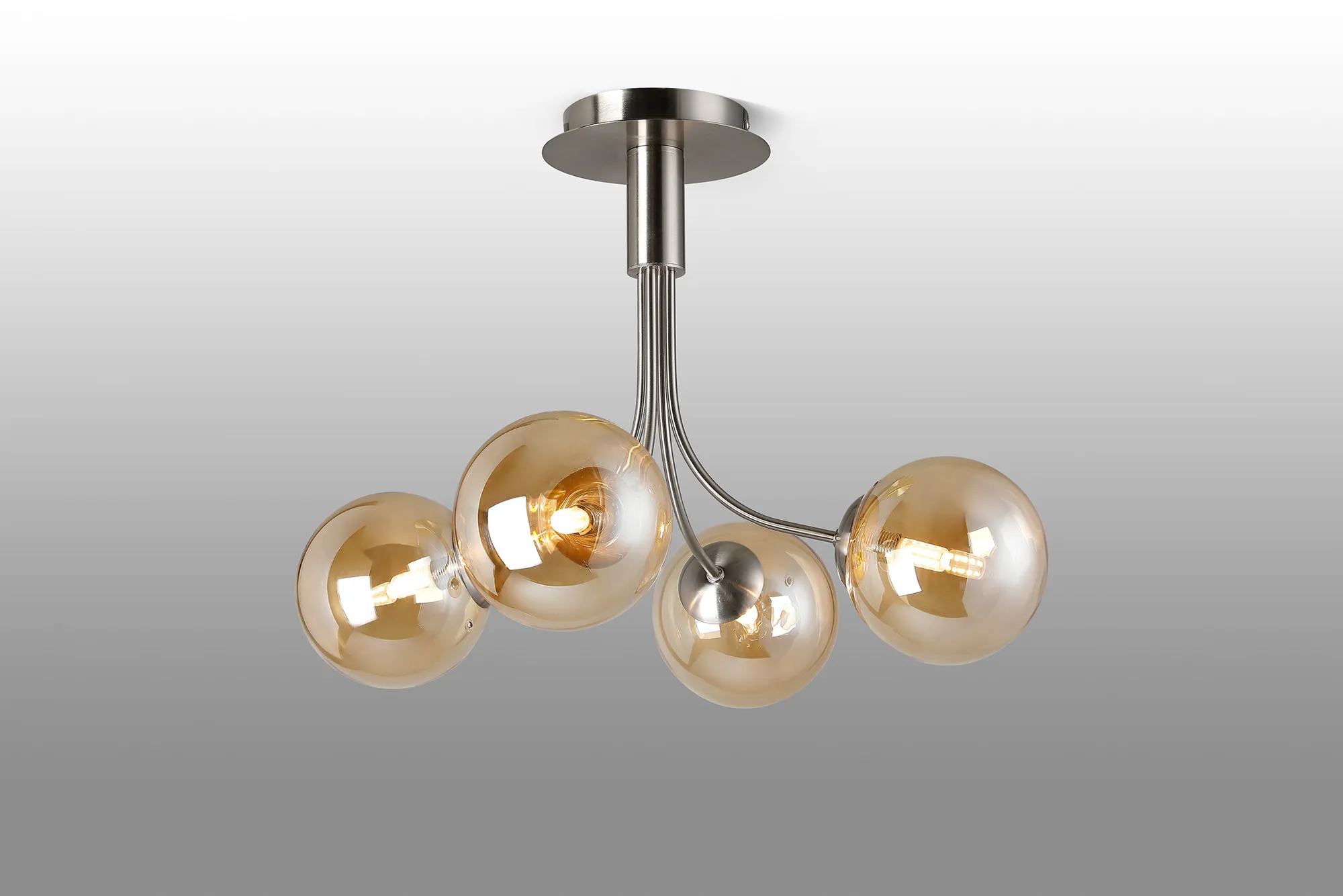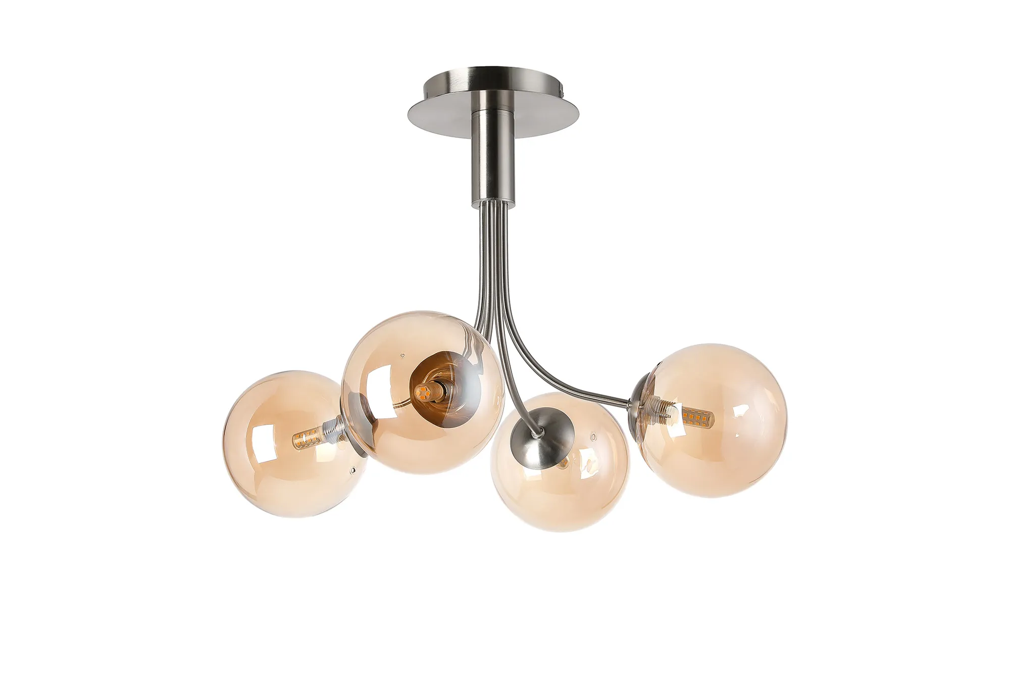 OTHER Wayburn 49cm Semi-Flush Curved Arm Ceiling Light, 4 x G9, Satin Nickel, Amber Plated Glass