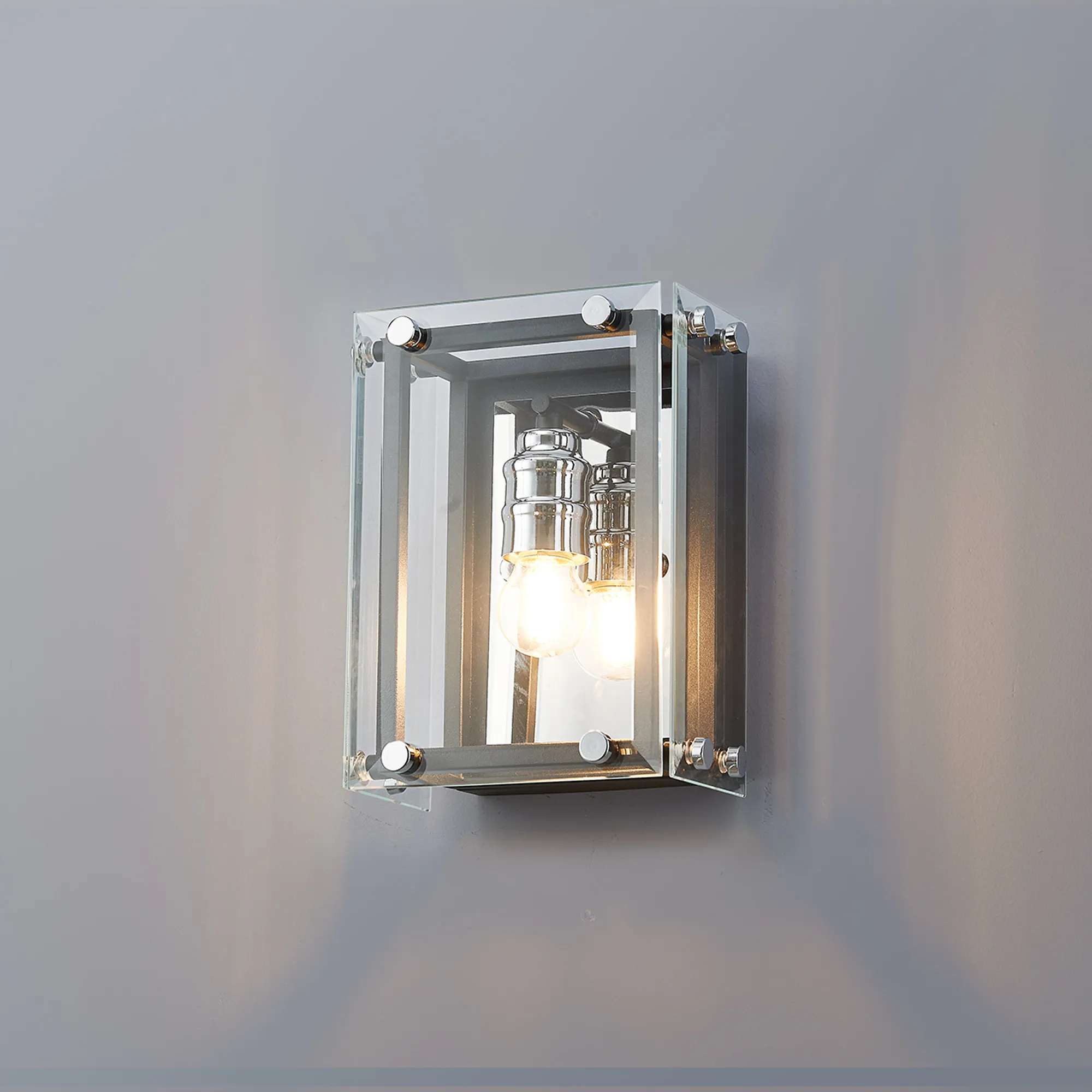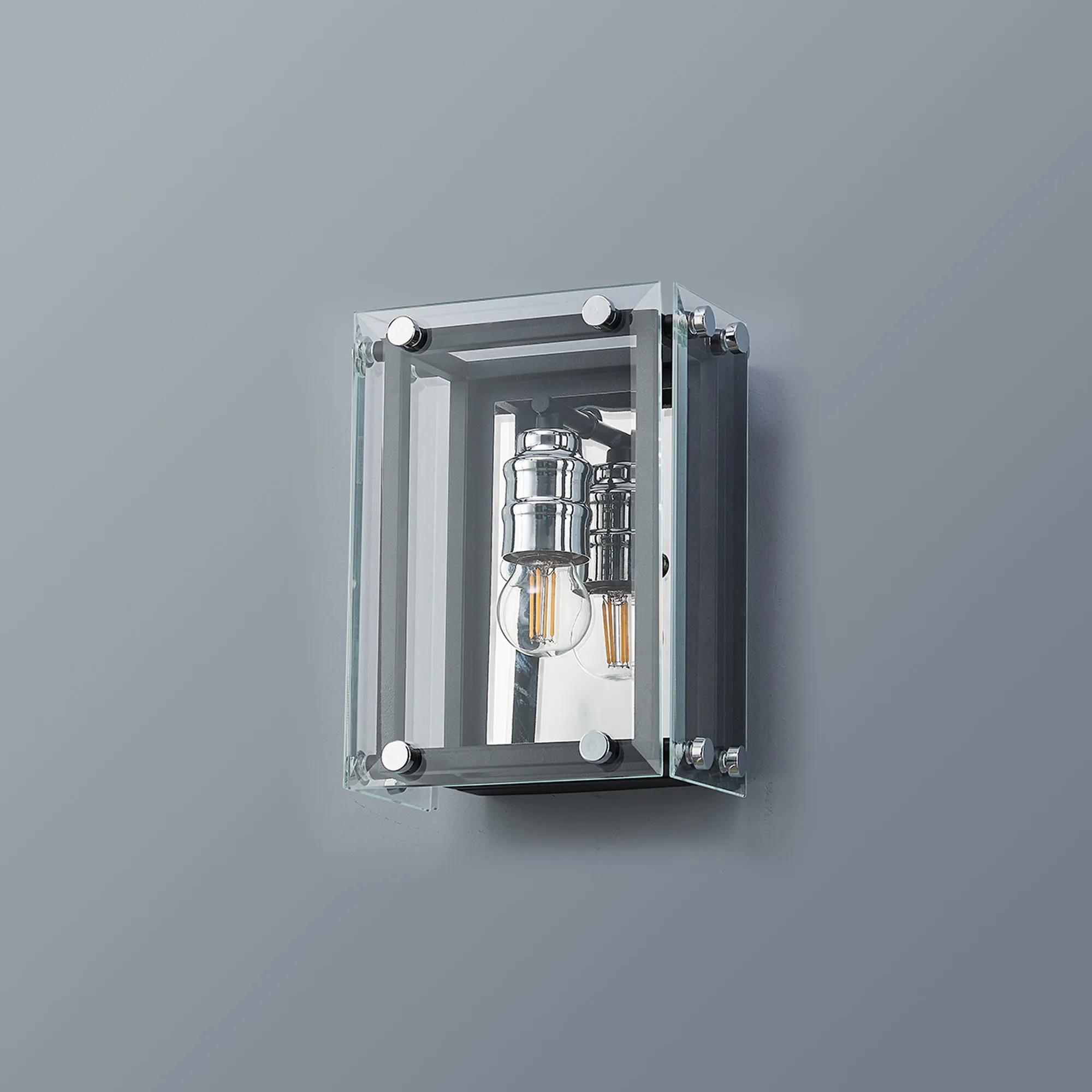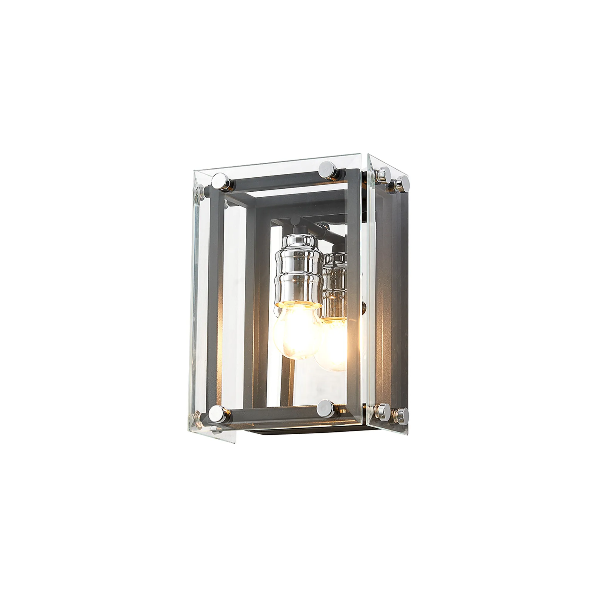 George is a contemporary range of square glass pendants with complementing flush, semi flush and wall light fixtures. The intricate design details of this range see the matt black colour finish accentuated by the polished chrome components. This added attractive, contrasting detail applies a modern twist to an otherwise traditional concept; suitable for a wide range of settings. The open spaces between the framework are filled with high quality clear glass panes to further reflect the light from the E27 lamp holders.
