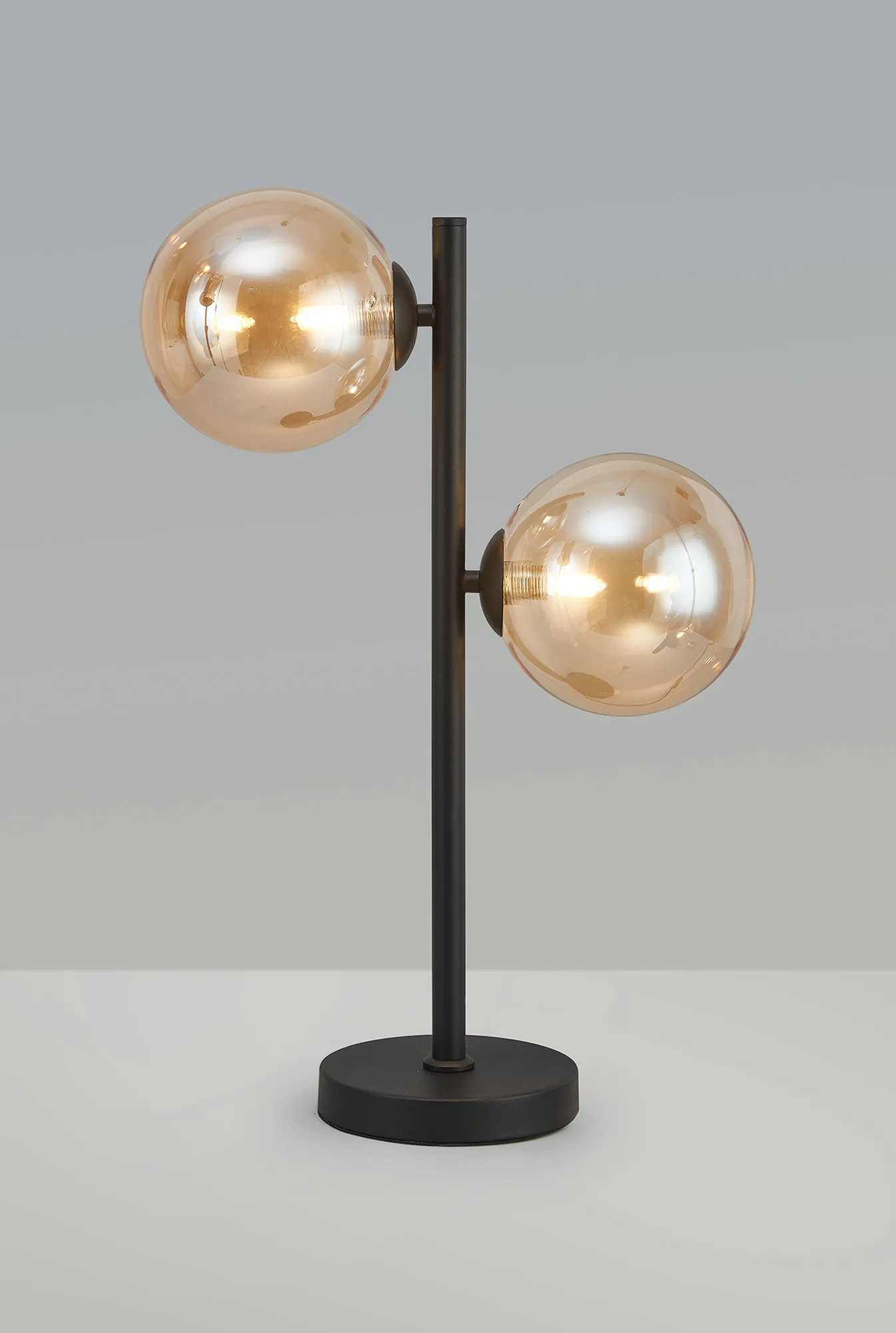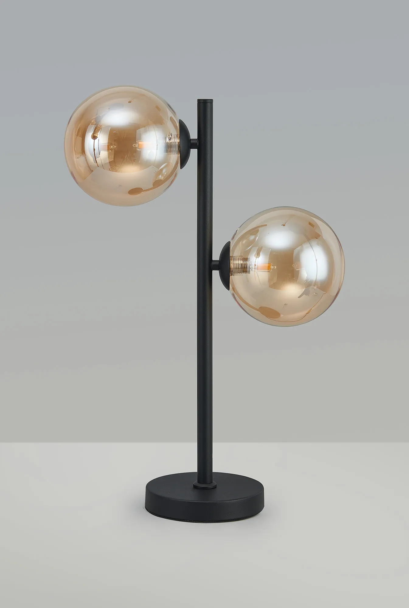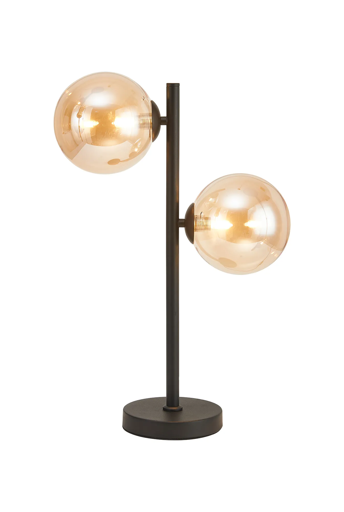 OTHER Wayburn Table Lamp, 2 x G9, Satin Black, Amber Plated 15cm Glass