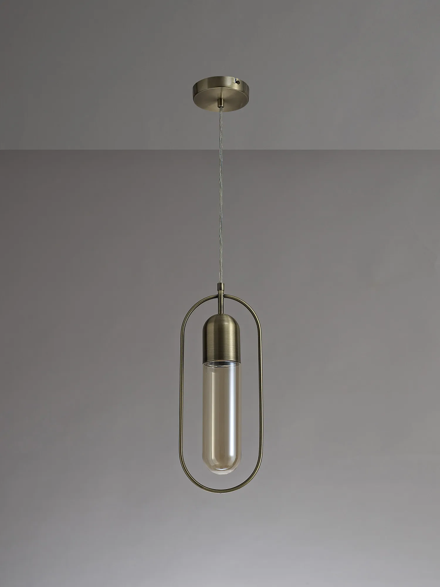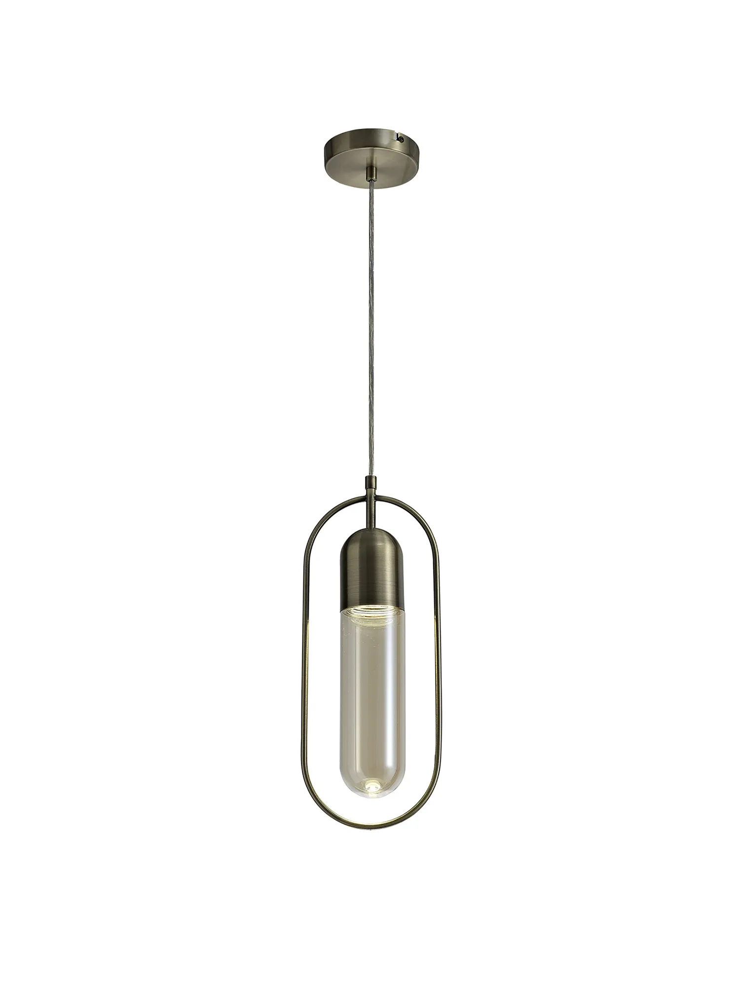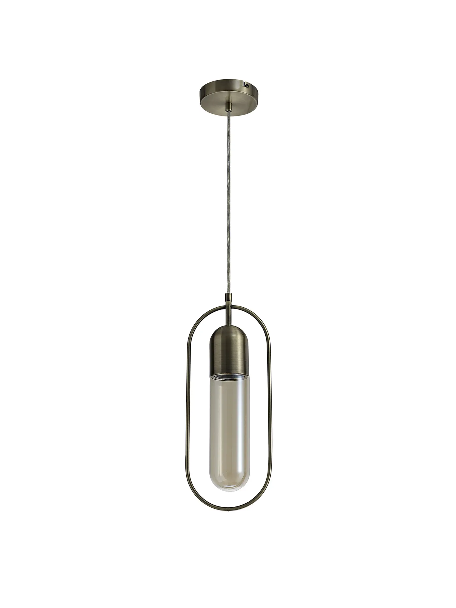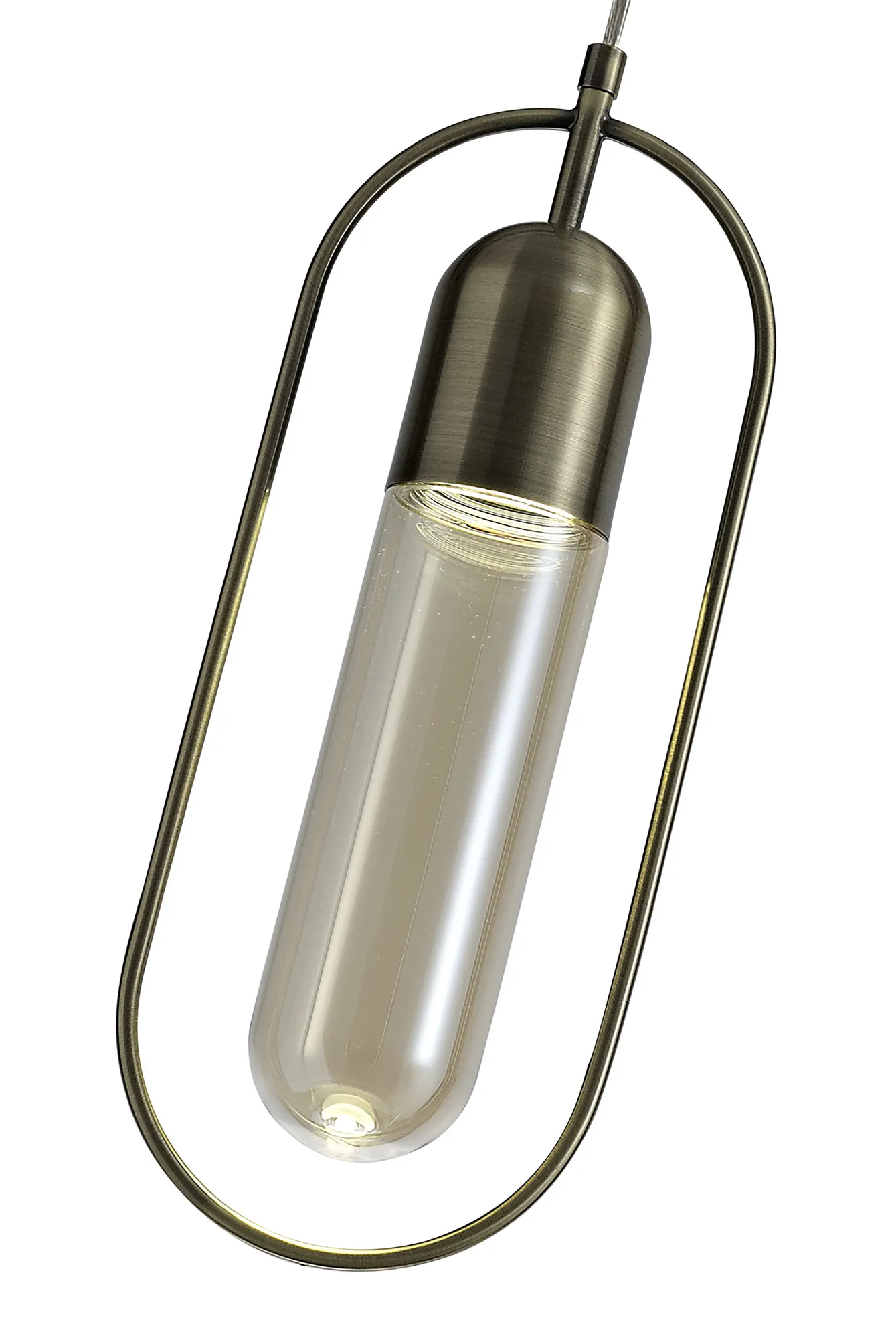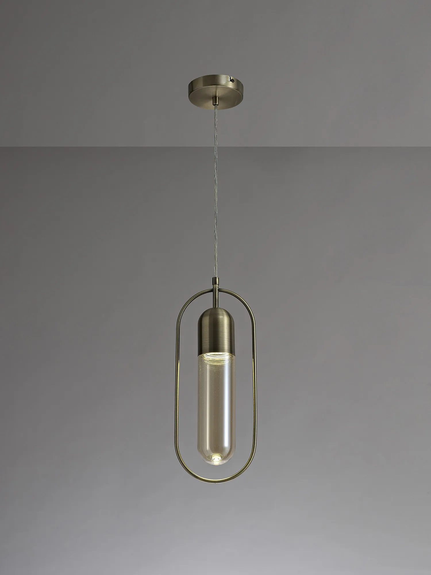 Cardrona economically uses minimal metalwork to structure its frame whilst still providing an interesting decorative form. The long capsule glass holding the integral 4000K LEDs are encircled by a slim single frame ring, intelligently producing a modern design feature with few materials. Adding further character, the glass is tinted to reflect the finish of the frames; antique brass with amber glass, satin nickel with clear and black with smoked glass. A single pendant, table and floor lamp make a small family of lighting solutions which can be seamlessly used within one room setting.