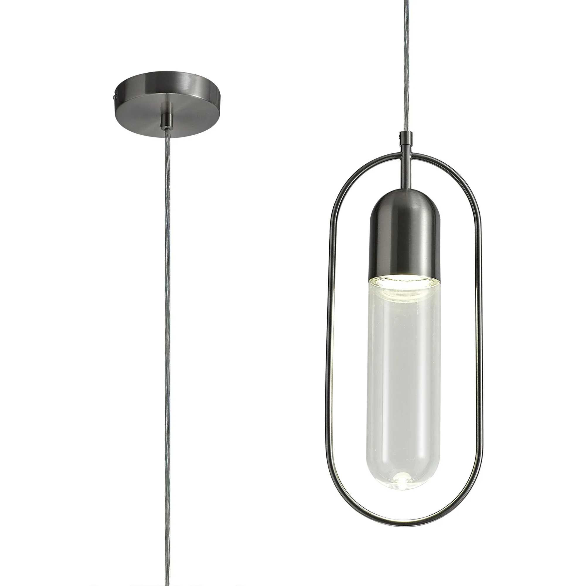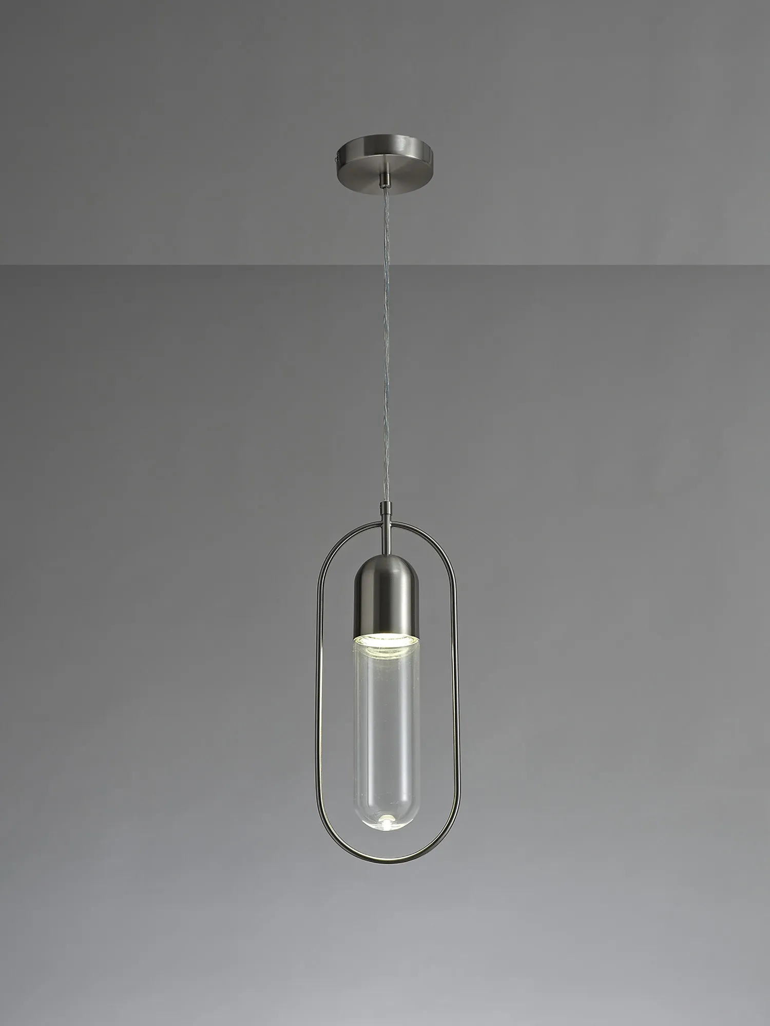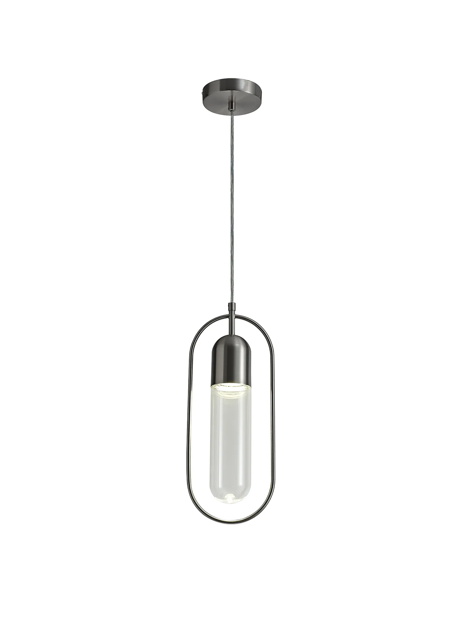 Cardrona economically uses minimal metalwork to structure its frame whilst still providing an interesting decorative form. The long capsule glass holding the integral 4000K LEDs are encircled by a slim single frame ring, intelligently producing a modern design feature with few materials. Adding further character, the glass is tinted to reflect the finish of the frames; antique brass with amber glass, satin nickel with clear and black with smoked glass. A single pendant, table and floor lamp make a small family of lighting solutions which can be seamlessly used within one room setting.