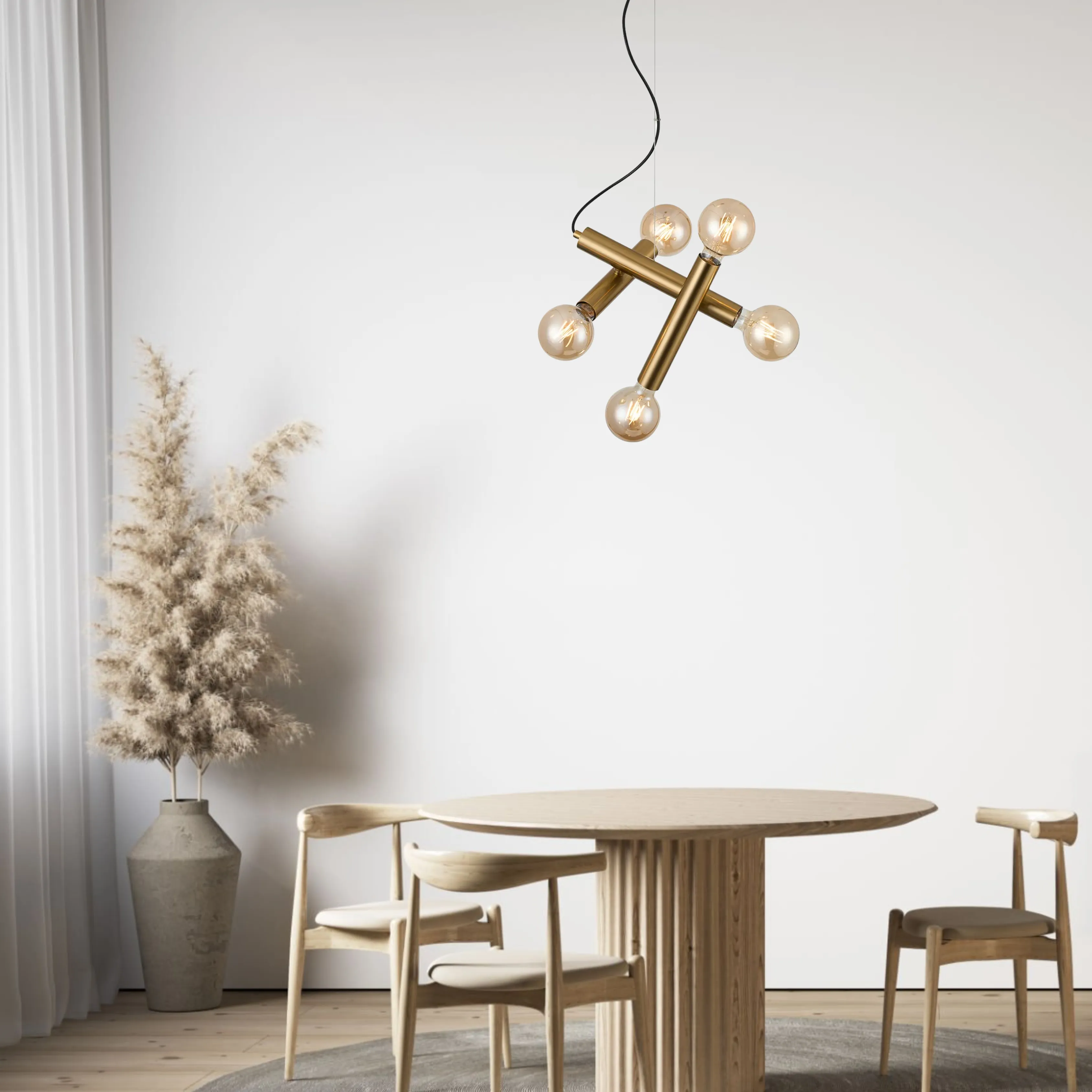 These arms can be twisted and turned to create a unique configuration, allowing you to personalise your lighting style with ease. Available in pendants, ceiling, and wall lights, the range spans up to a 12-light design and is offered in three sophisticated finishes: Antique Gold, Satin Black, and Satin Nickel.