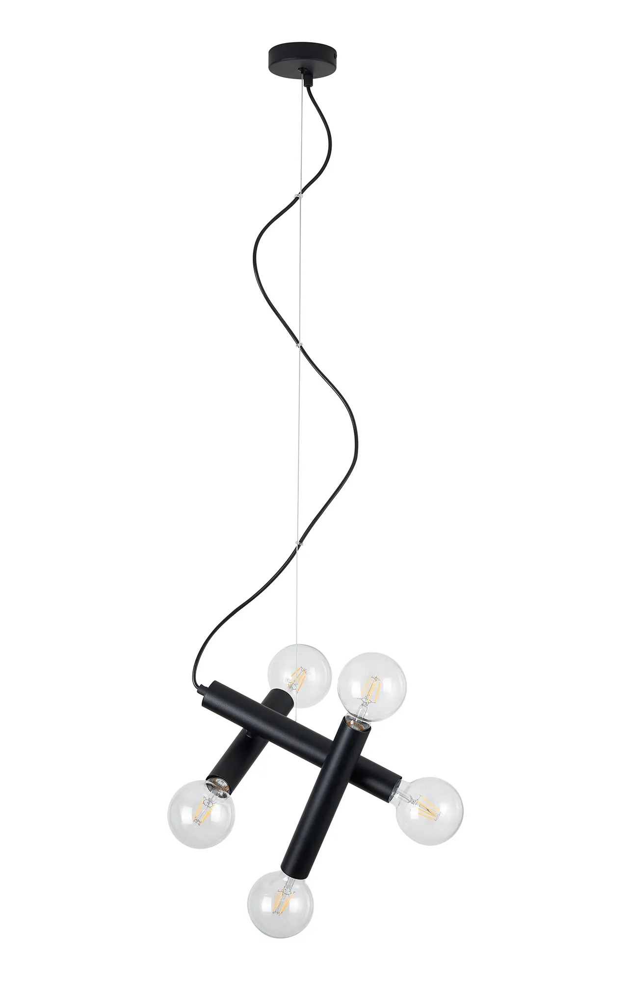 The Moody collection offers a bold, customisable lighting solution, featuring E27 lampholders positioned at both ends of adjustable tubular arms.