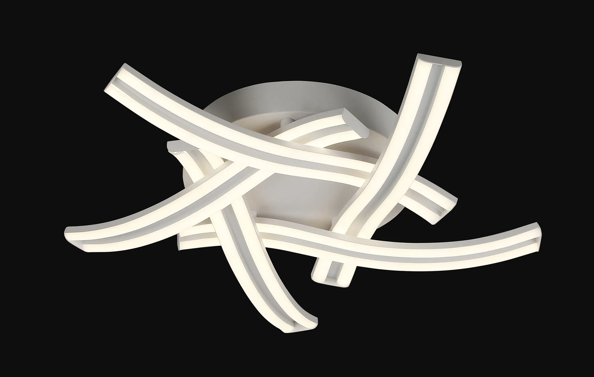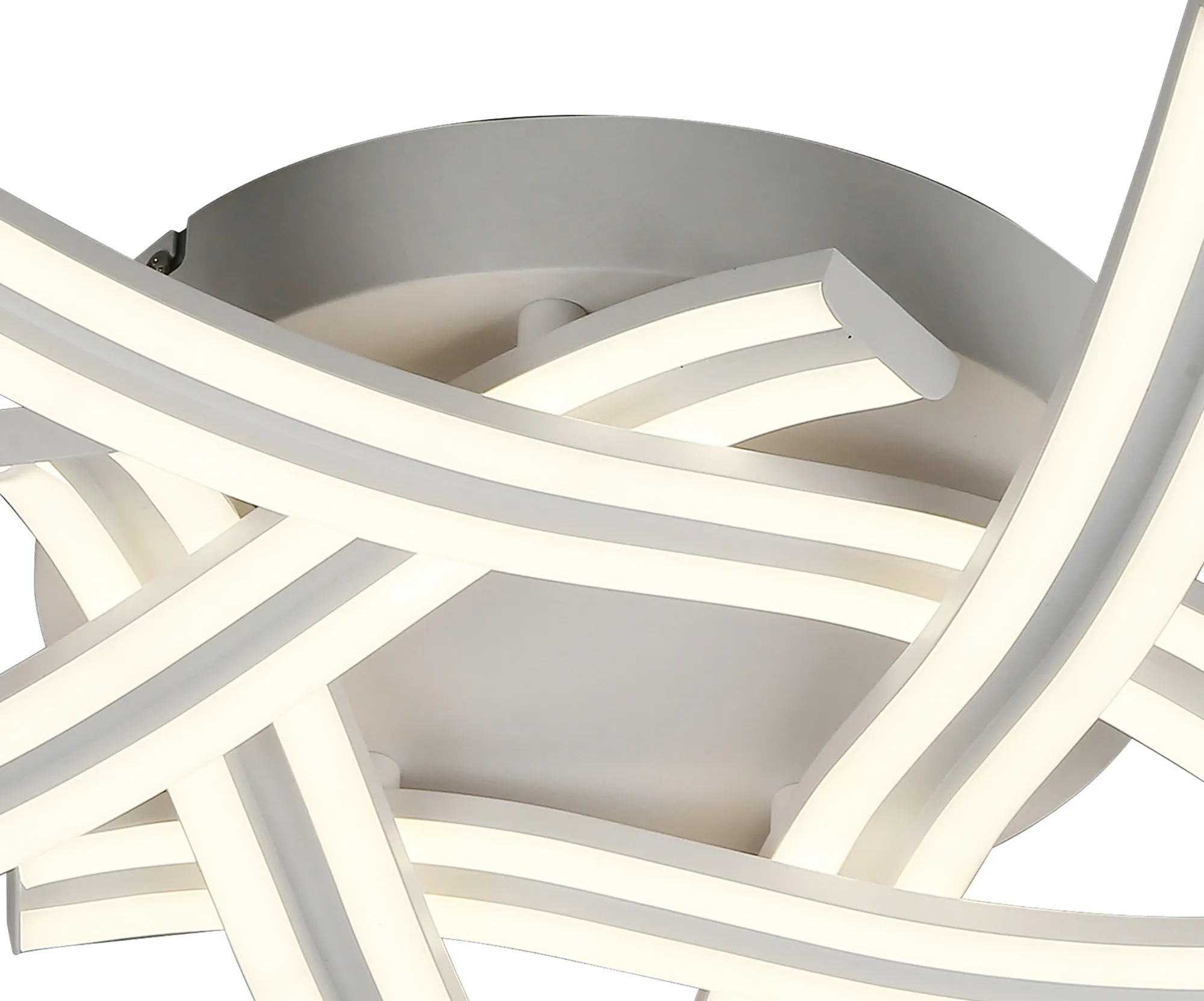 A visually intriguing collection, Collingwood's ceiling fixtures host slim, narrow strips of diffused light. A line of white or satin gold frame running along the middle of each piece creates an aesthetic impact furthering the waved design aspect. A colour temperature of 3500K on the satin gold frame and 4000K on the white frame. The two light ceiling fixture and wall lamp offer a streamlined linear option whereas the three, five and six light overlap the arms to form a more circular pattern with the six light also including a three step dimming function. This collection also includes a matching table and floor lamp.