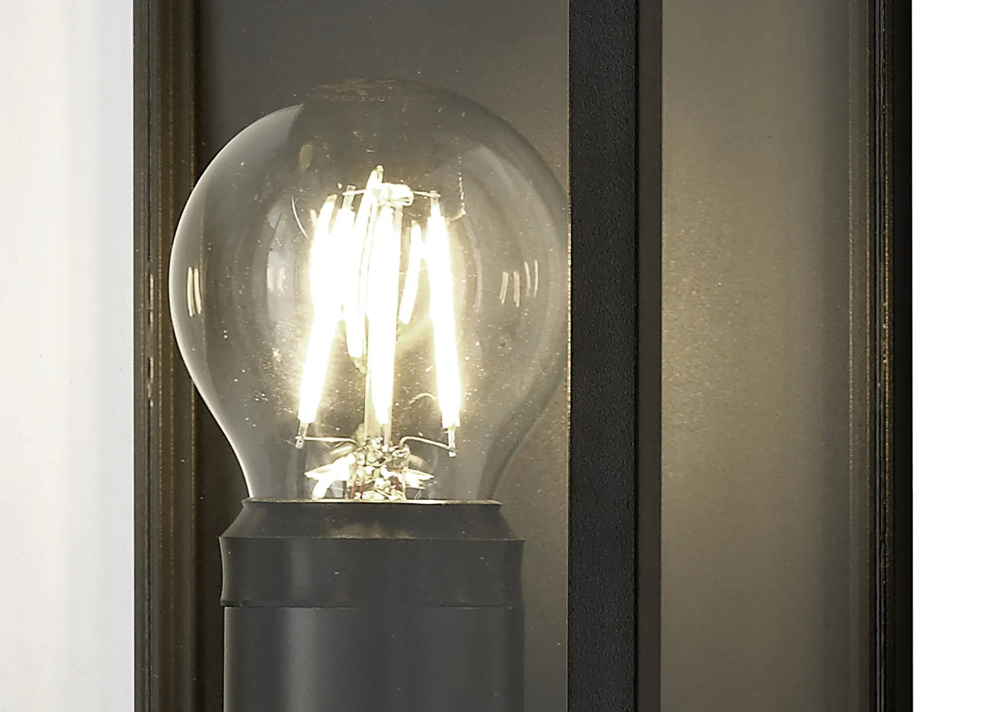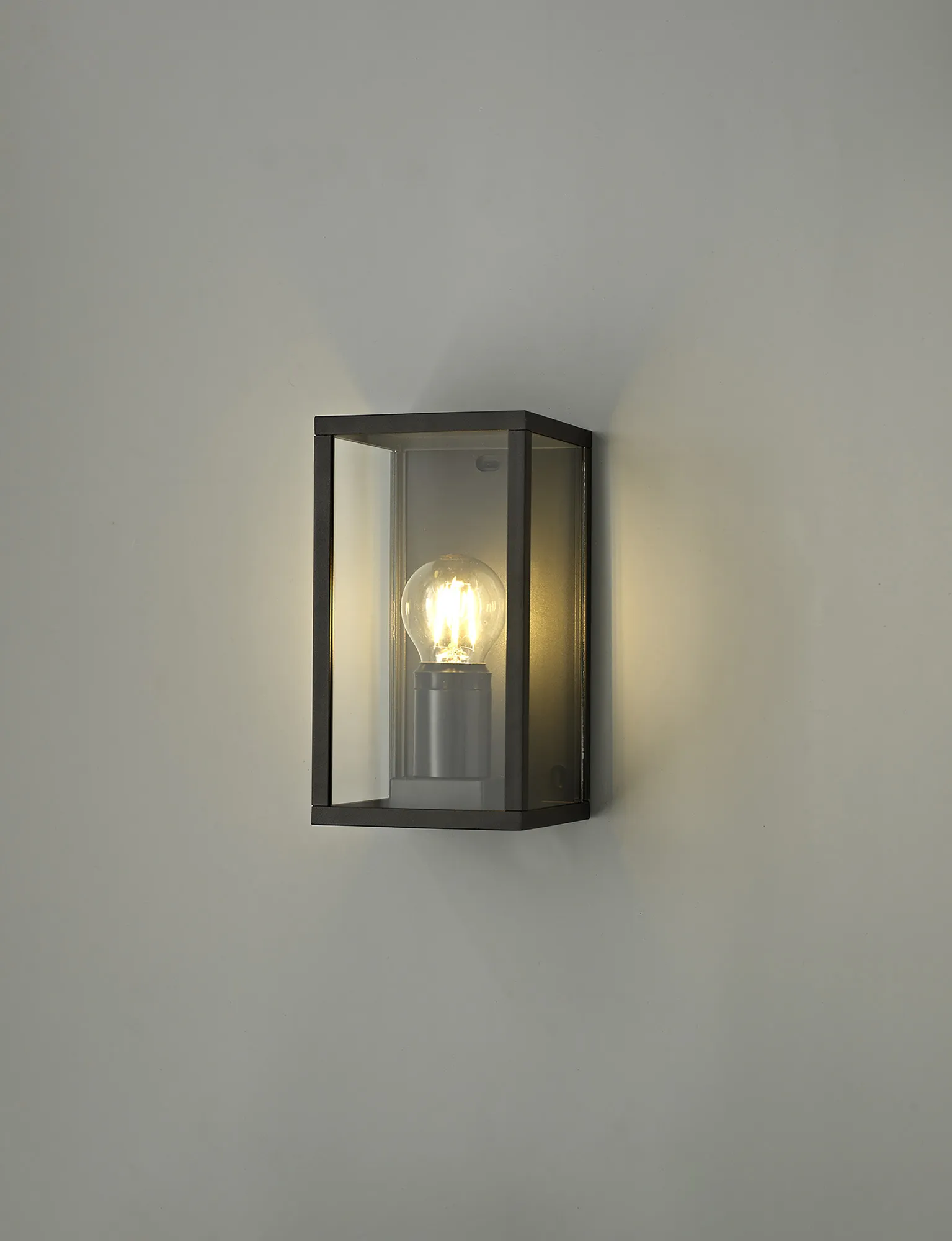 Fairlie provides a classic collection of outdoor lighting solutions. The three dimensional rectangular frames with glass panels on each side reflect an old-fashioned oil lantern which is most prominently featured on the downward wall lamp with its curved hanging arm. A graphite black colour finish was selected during the design process to ensure the collection offers extended durability and longevity against outdoor elements and harsh weather. With a wide selection of lighting fixtures, the Fairlie range is sure to include an option to suit your needs.