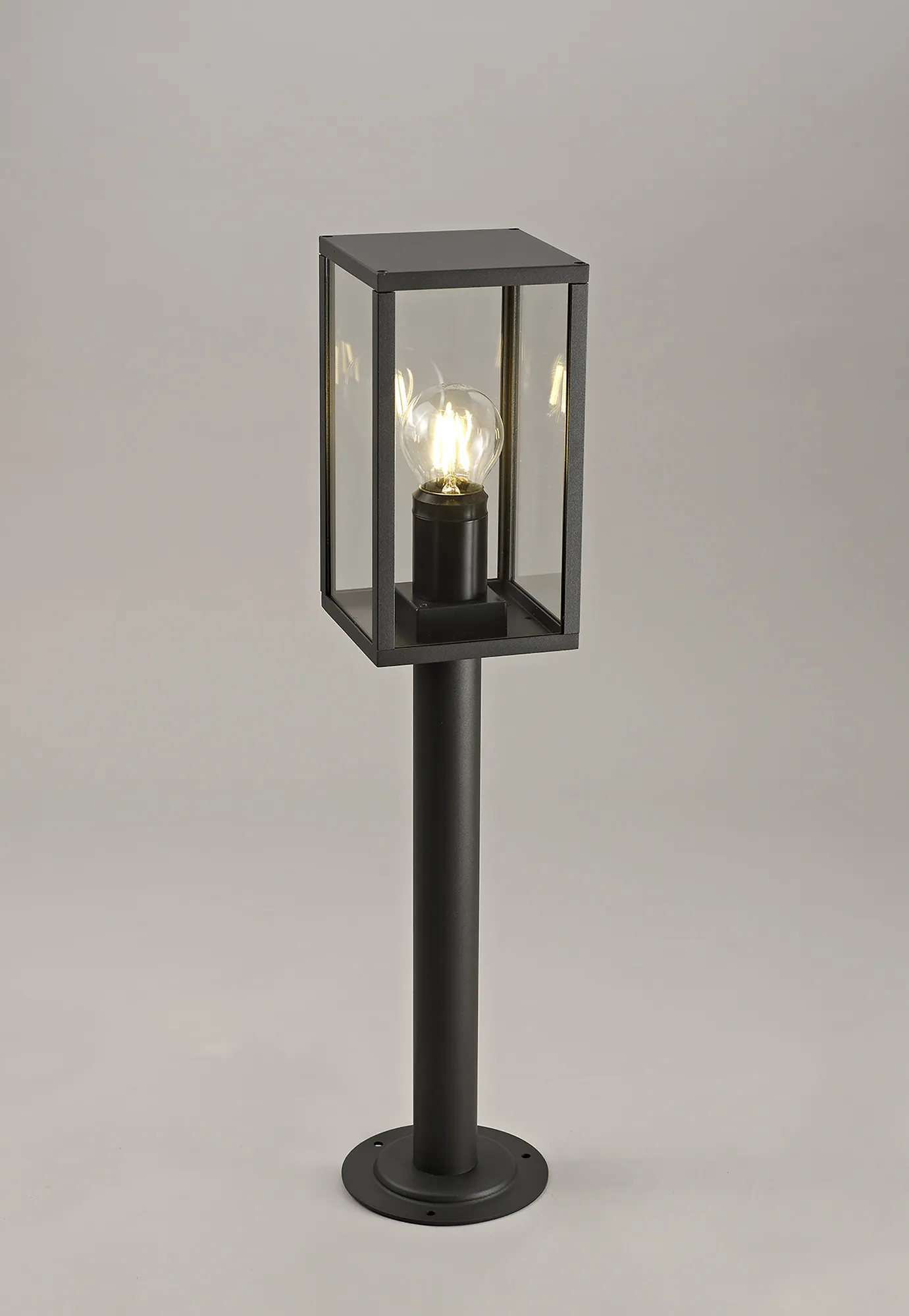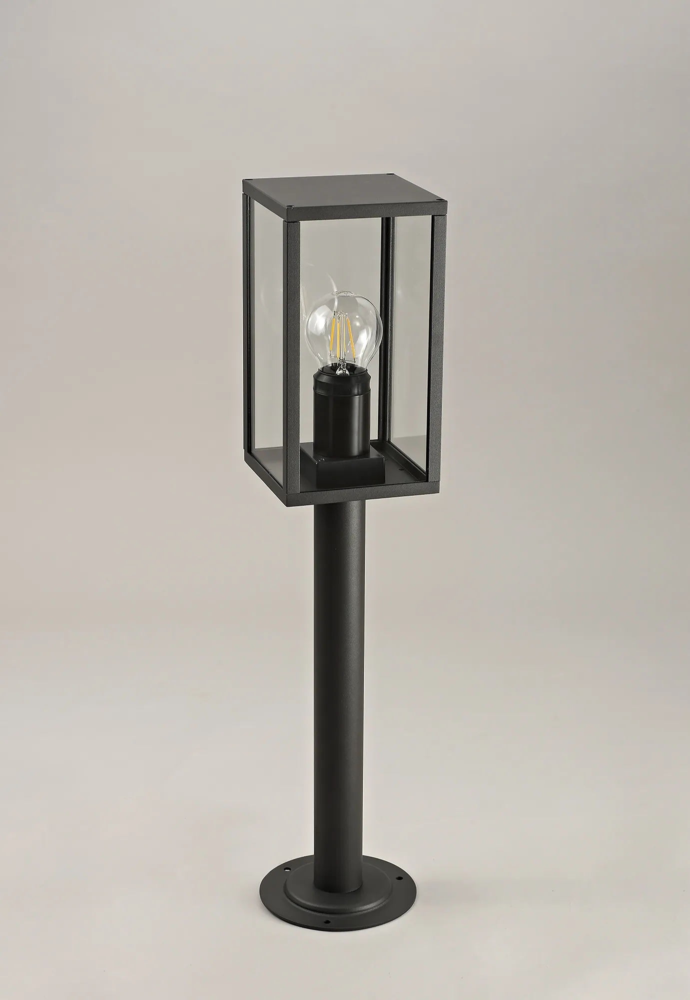Fairlie provides a classic collection of outdoor lighting solutions. The three dimensional rectangular frames with glass panels on each side reflect an old-fashioned oil lantern which is most prominently featured on the downward wall lamp with its curved hanging arm. A graphite black colour finish was selected during the design process to ensure the collection offers extended durability and longevity against outdoor elements and harsh weather. With a wide selection of lighting fixtures, the Fairlie range is sure to include an option to suit your needs.