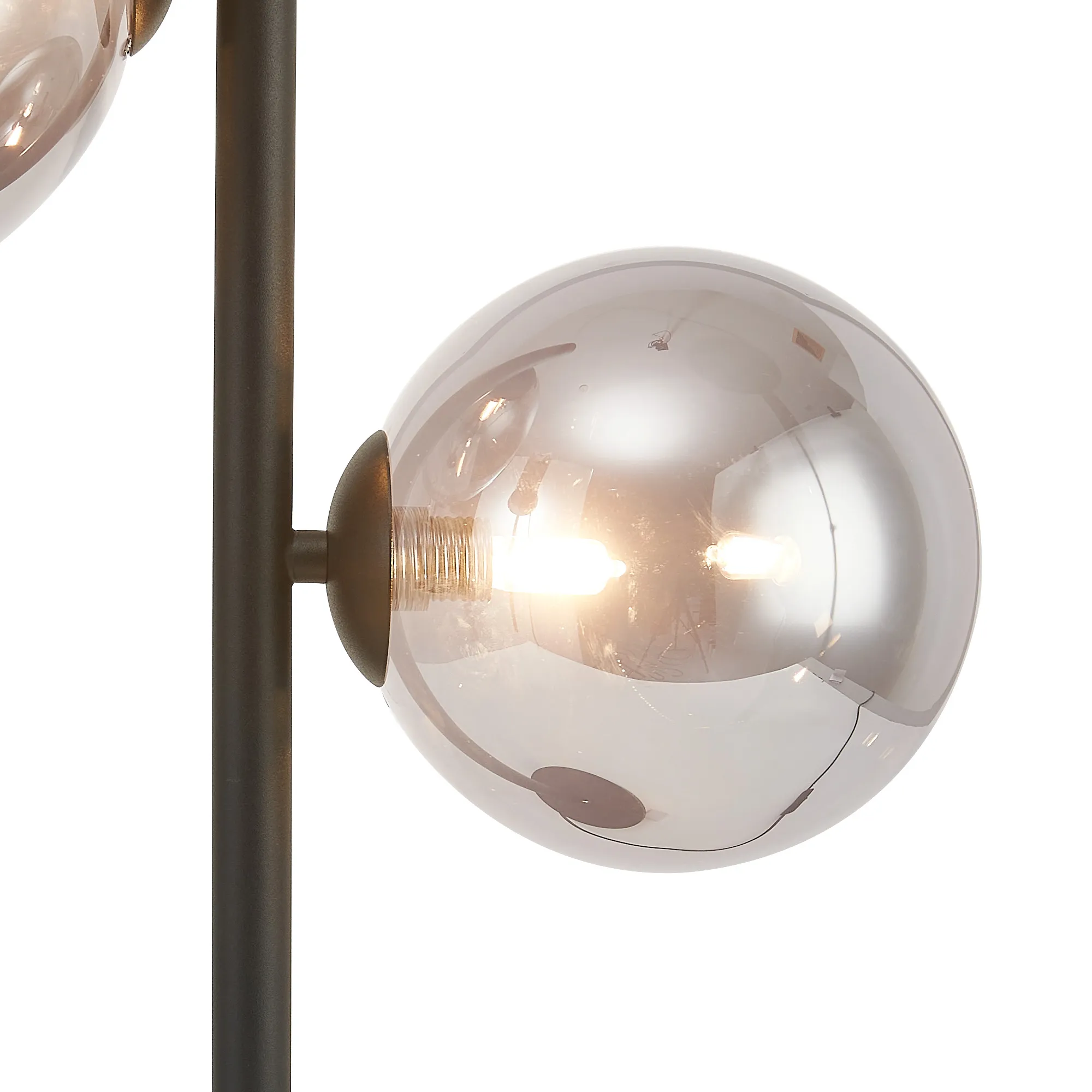 Wayburn Floor Lamp, 3 x G9, Satin Black, Smoke Plated Mixed Size Glass