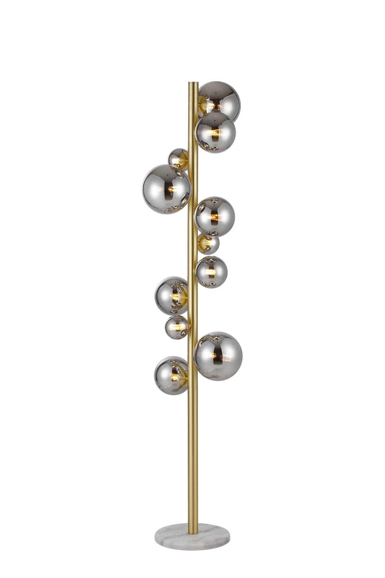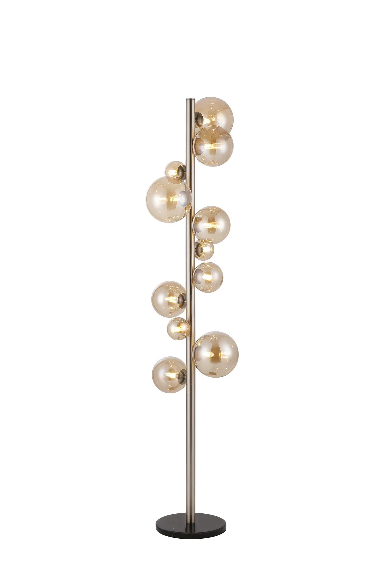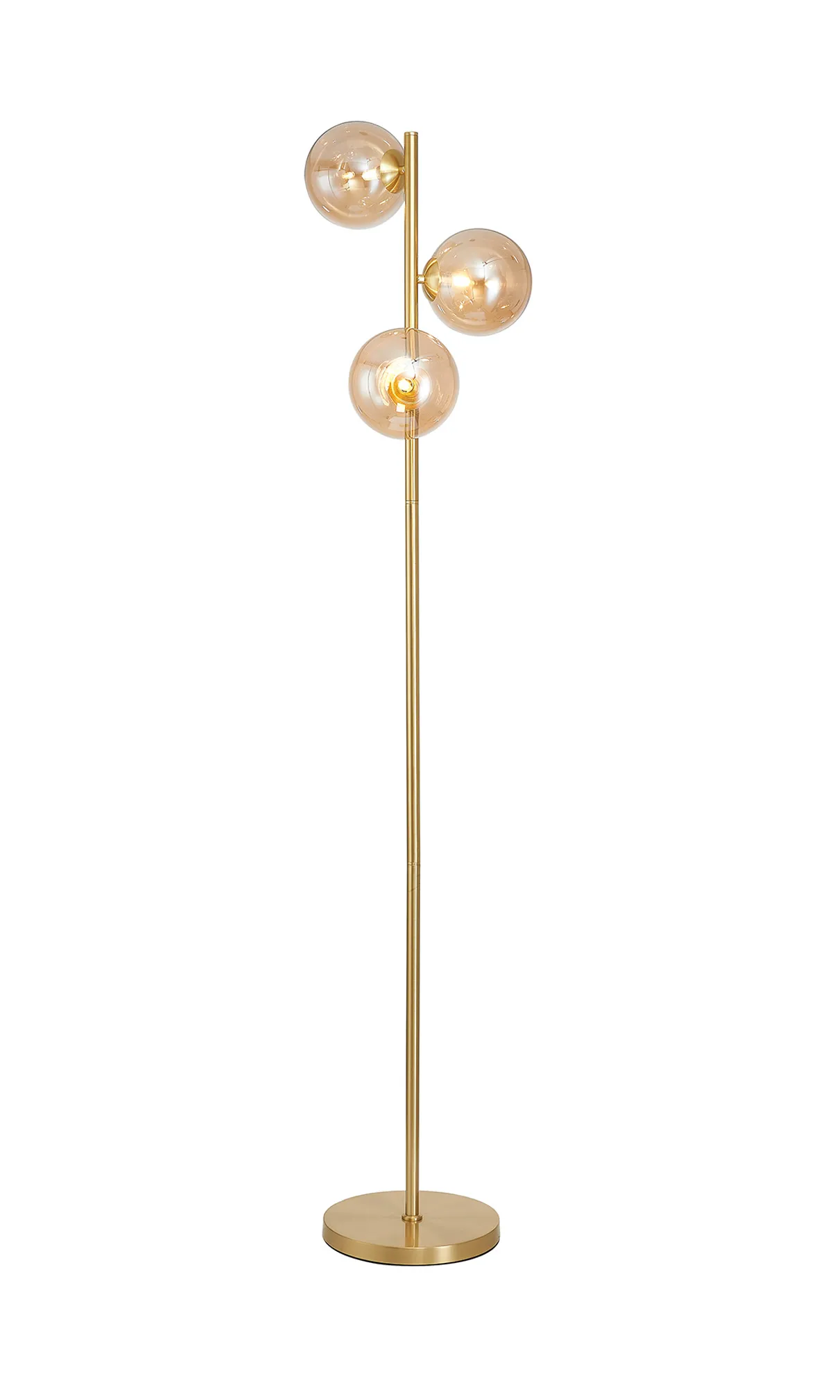 Wayburn Floor Lamp, 3 x G9, Satin Gold, Iridescent Plated Mixed Size Glass