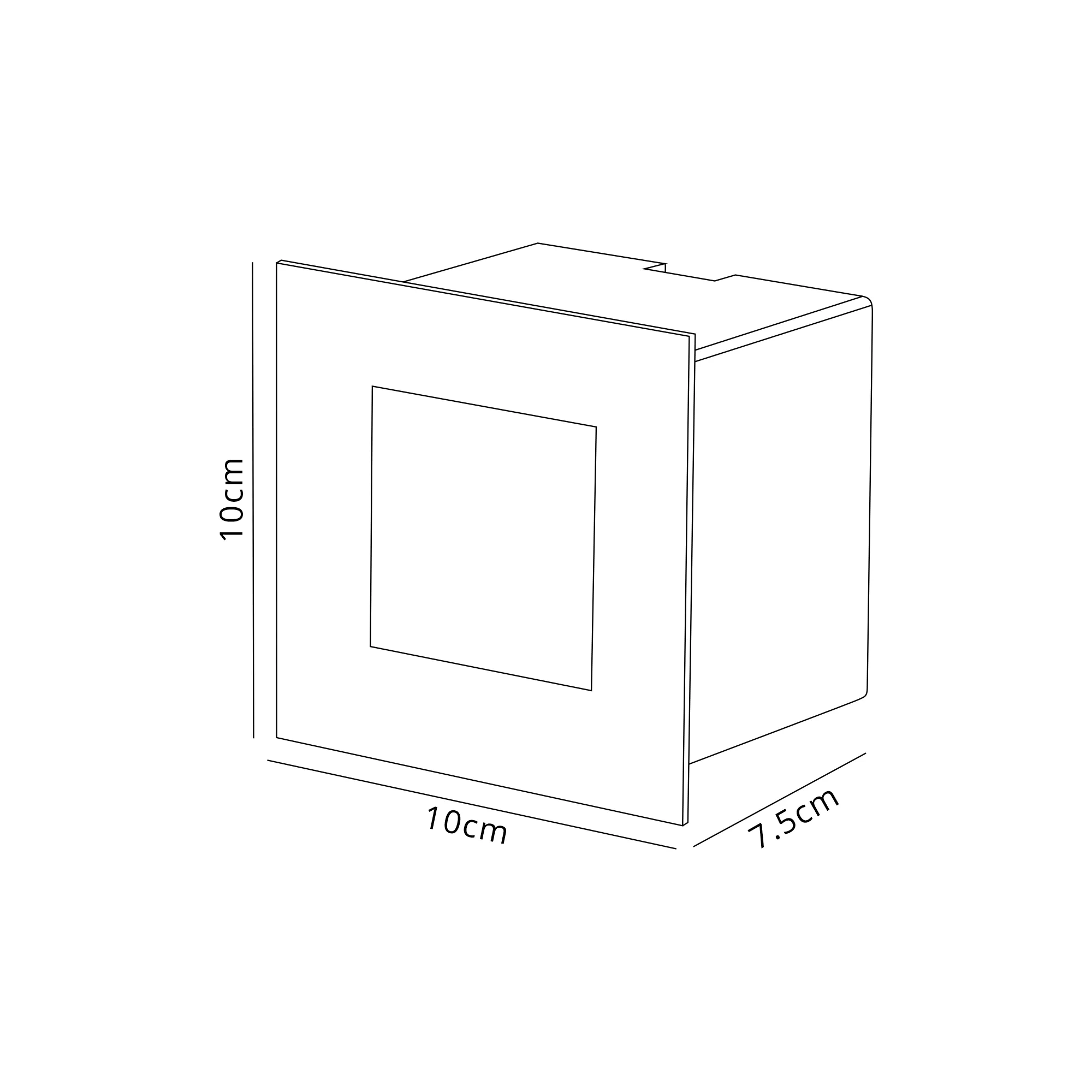 Murchison 100 x 100mm Recessed Glass Fronted Wall Lamp, 3W LED, 3000K, 200lm, IP65, White