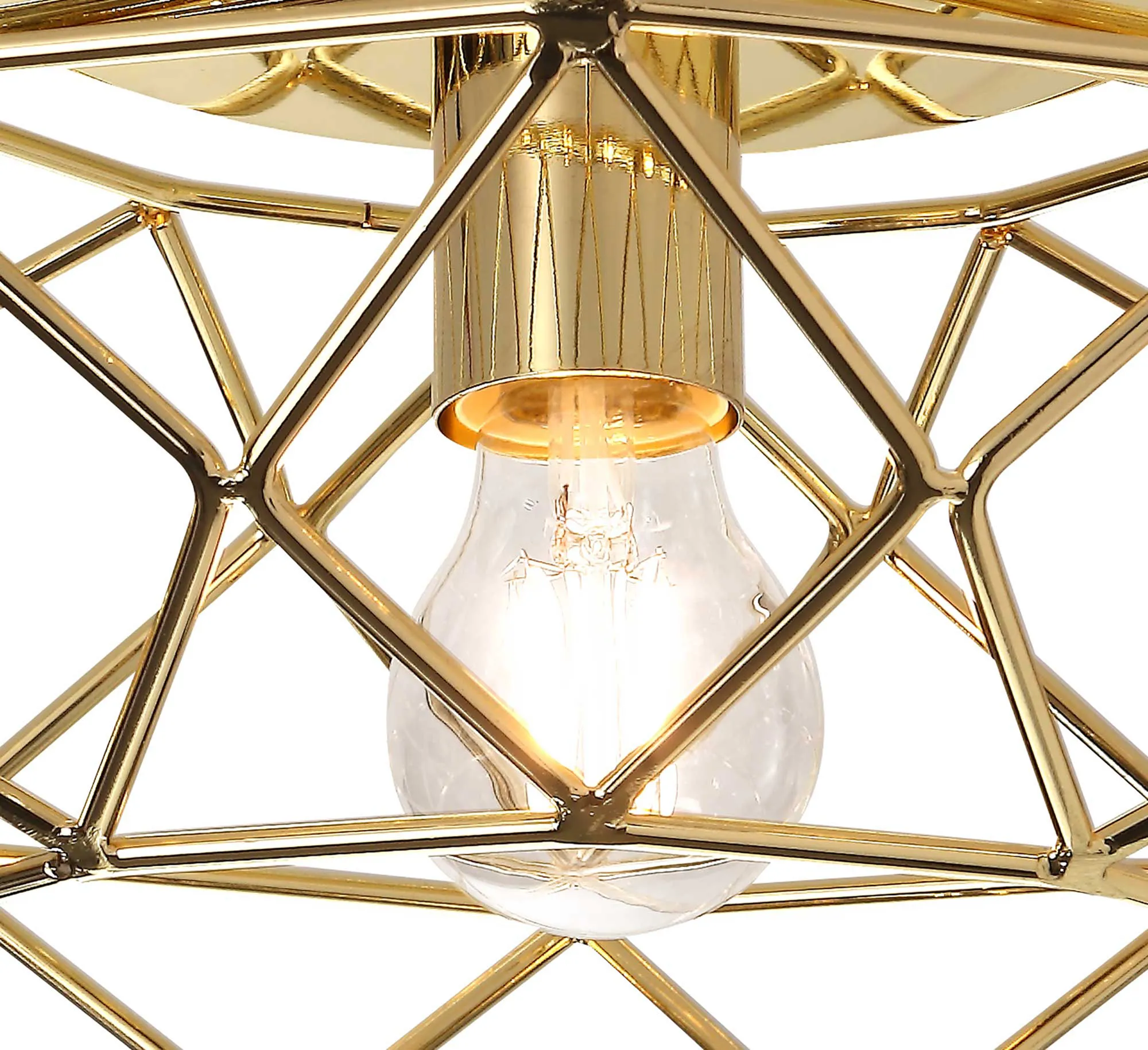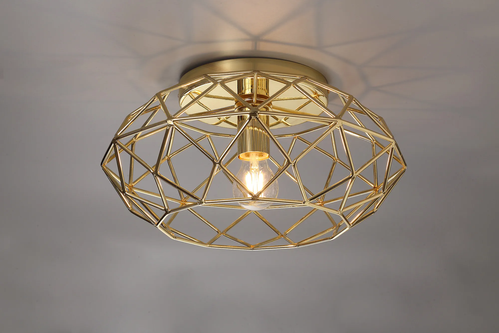 The Helensville collection is comprised of a trio of traditional lights, two pendants and one flush ceiling, each with their own unique shape. A body of open triangular and diamond shapes are tiled together to create a prismatic optical illusion around the singular E27 lamp holders. A traditional polished brass finish ensures Helensville can be used to enhance the character and eye-catching design of a rustic of contemporary setting with optimum illumination.