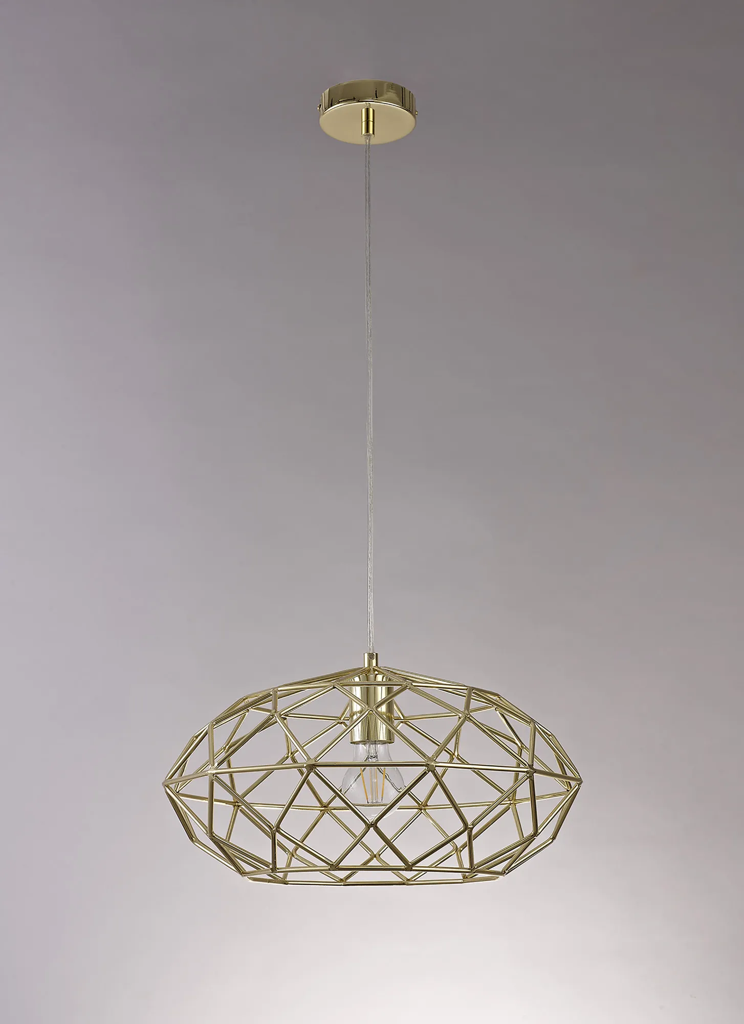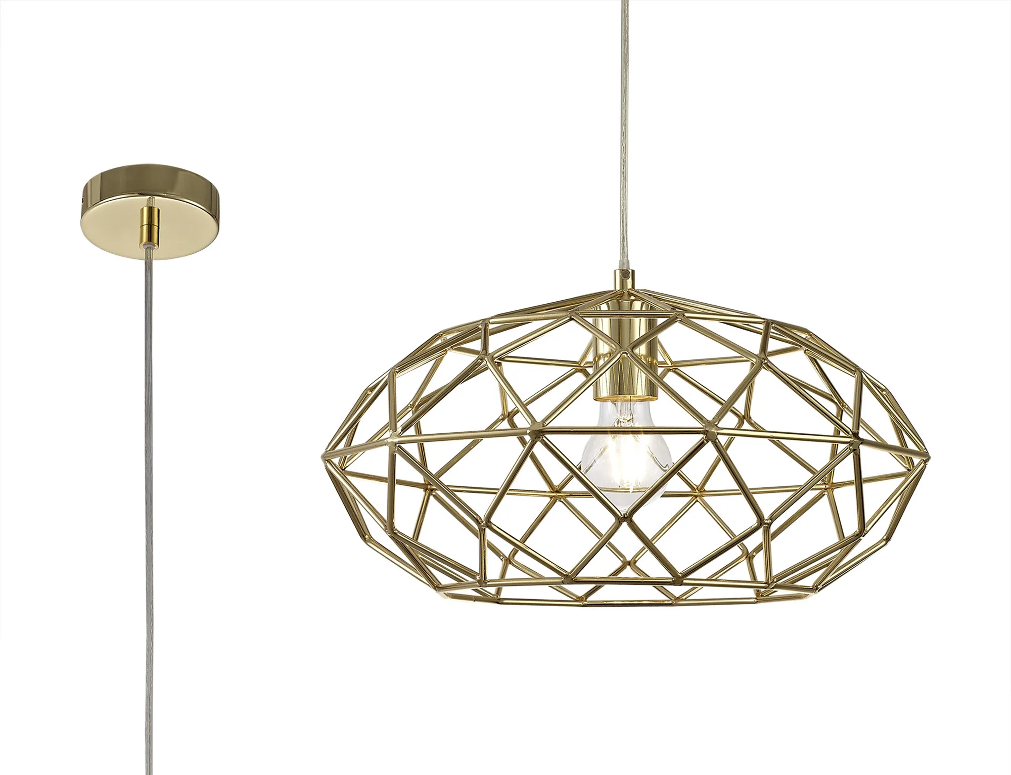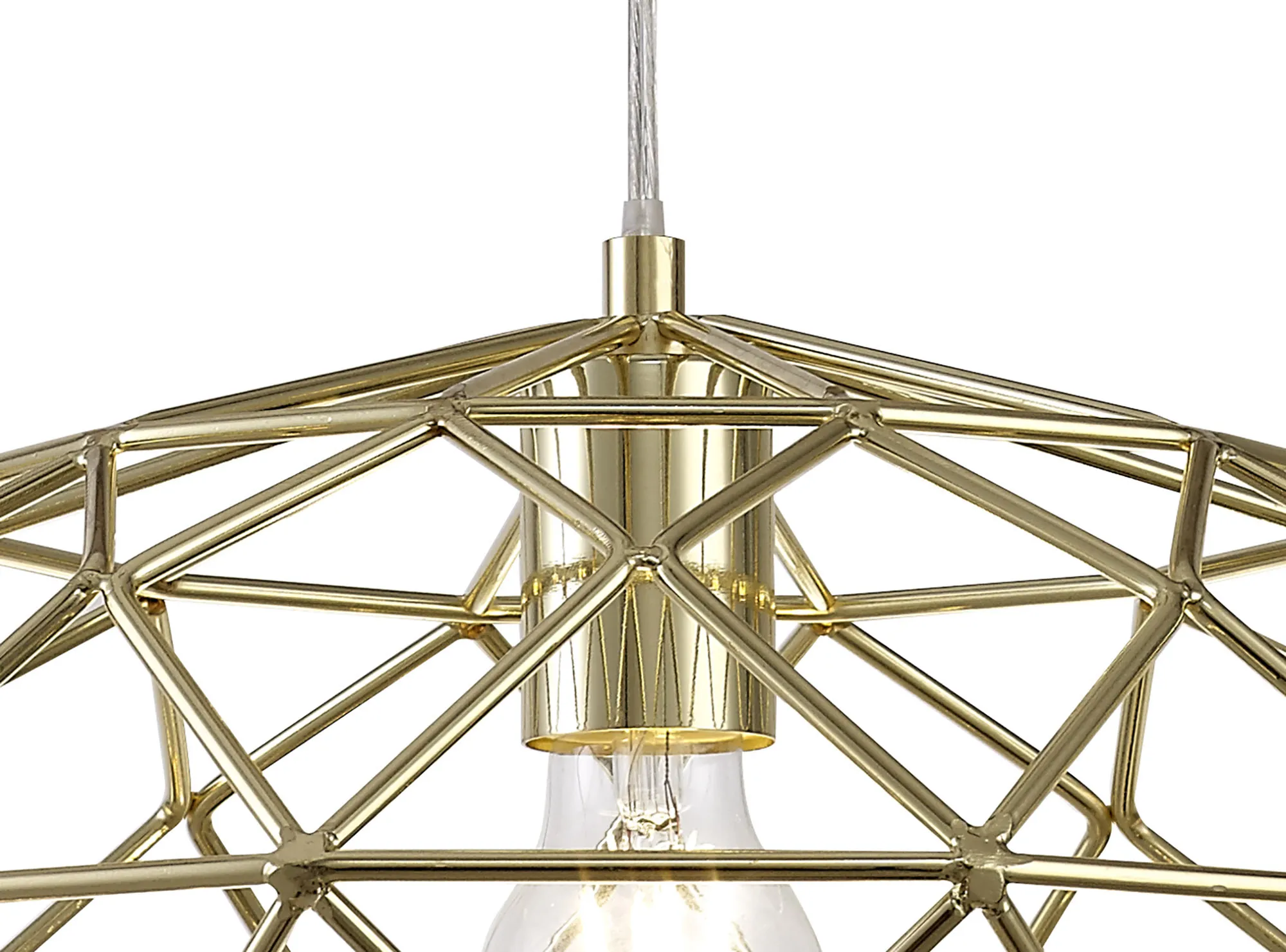 The Helensville collection is comprised of a trio of traditional lights, two pendants and one flush ceiling, each with their own unique shape. A body of open triangular and diamond shapes are tiled together to create a prismatic optical illusion around the singular E27 lamp holders. A traditional polished brass finish ensures Helensville can be used to enhance the character and eye-catching design of a rustic of contemporary setting with optimum illumination.