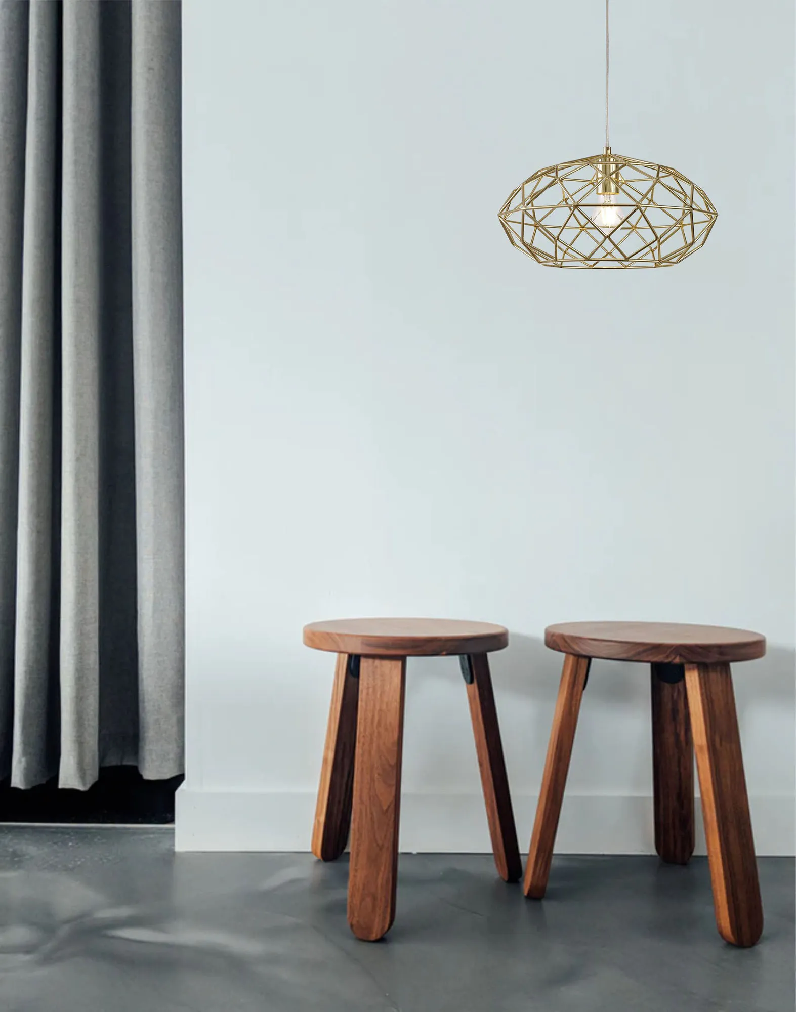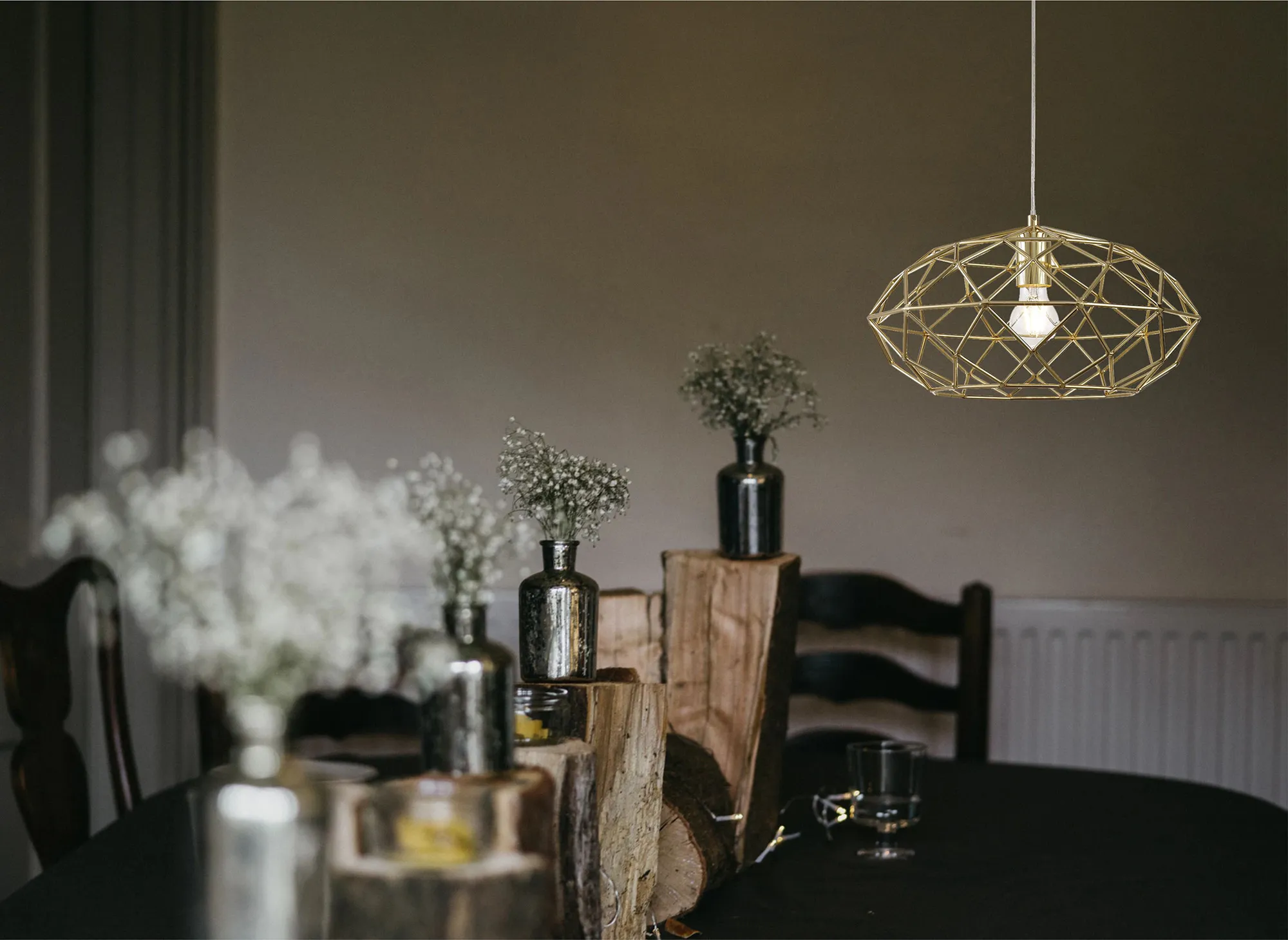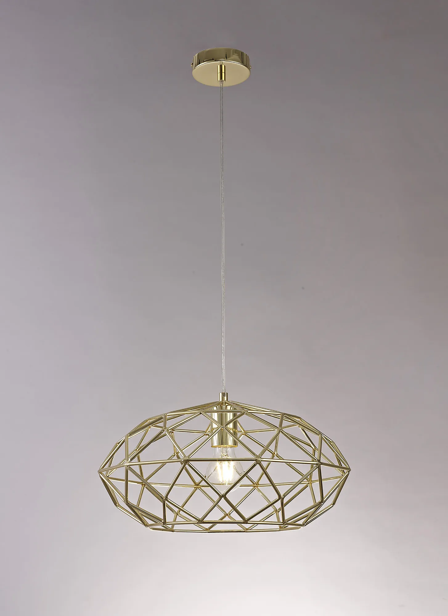 The Helensville collection is comprised of a trio of traditional lights, two pendants and one flush ceiling, each with their own unique shape. A body of open triangular and diamond shapes are tiled together to create a prismatic optical illusion around the singular E27 lamp holders. A traditional polished brass finish ensures Helensville can be used to enhance the character and eye-catching design of a rustic of contemporary setting with optimum illumination.