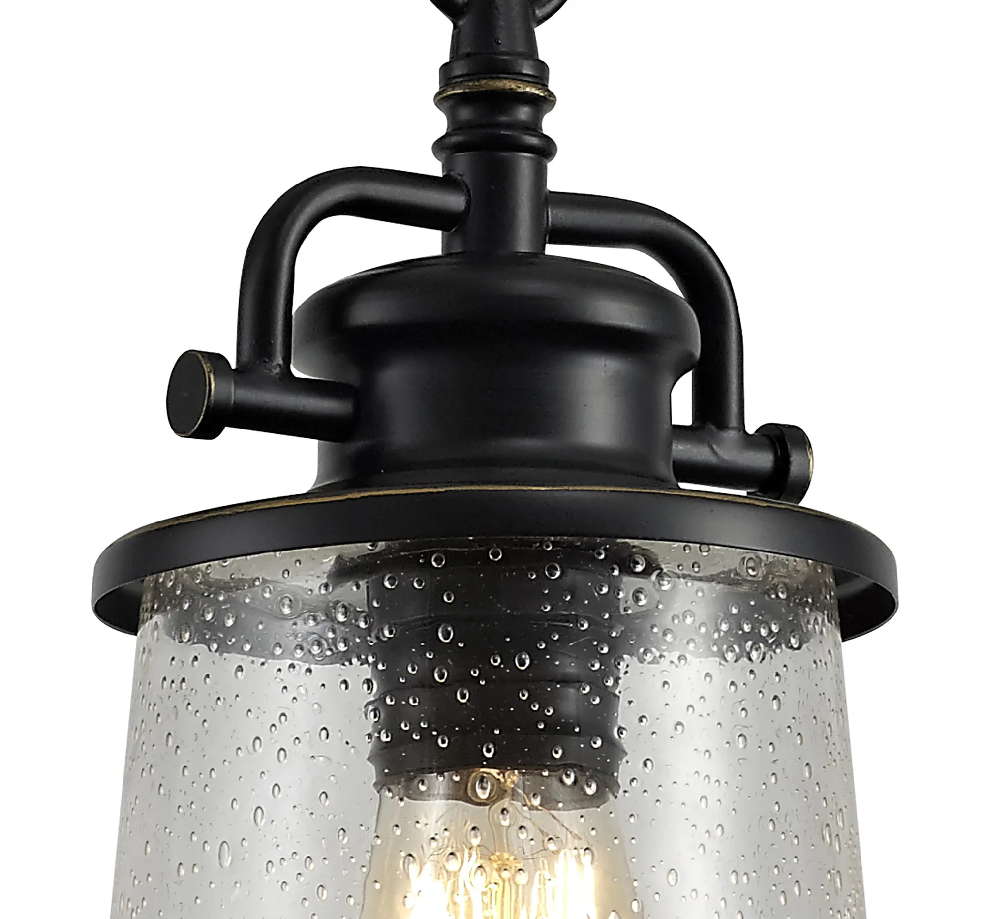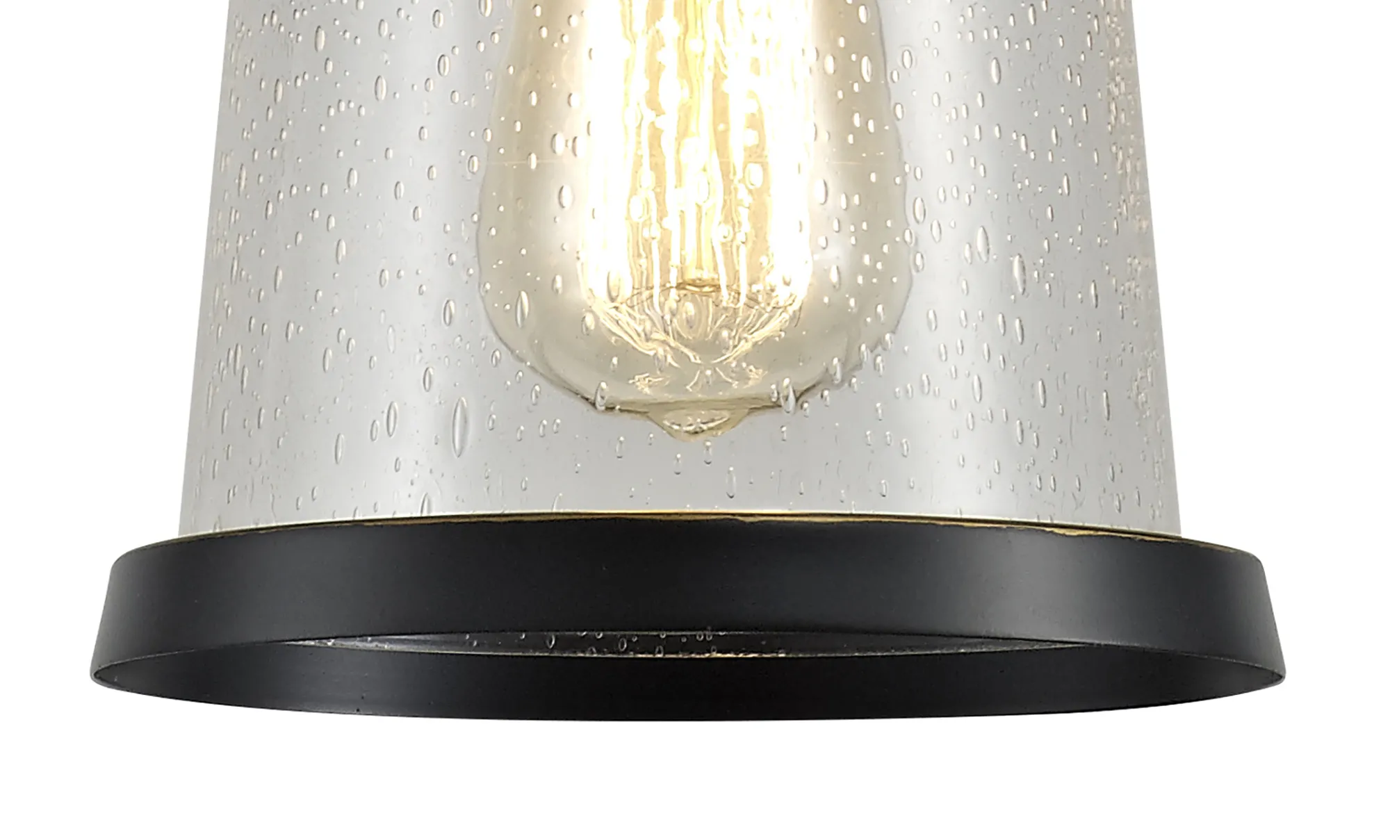 Manurewa Wall Lamp, 1 x E27, Black/Gold With Seeded Clear Glass, IP54, 2yrs Warranty