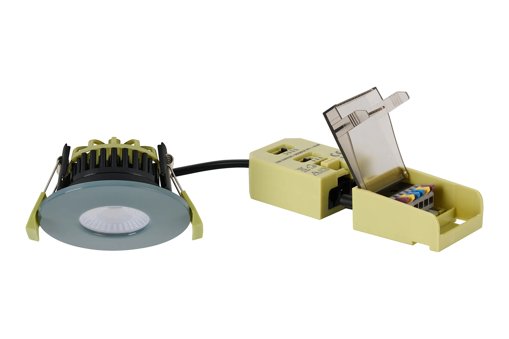 Troon 4/6/8W, Triac Dimmable 4CCT LED Fire Rated Downlight, With Chrome Fascia, Cut Out: 70mm, 400/600/800lm, 60° Deg, IP65 DRIVER INC., 5yrs Wrnty