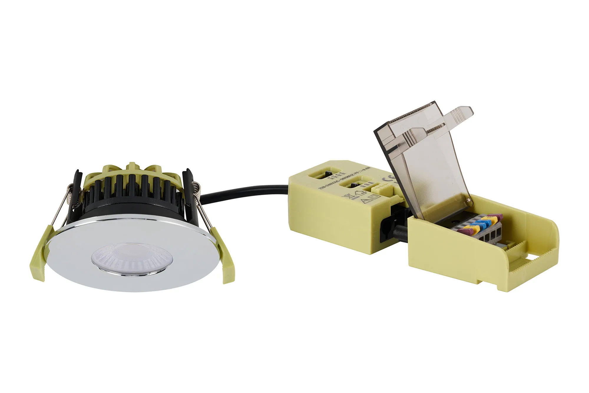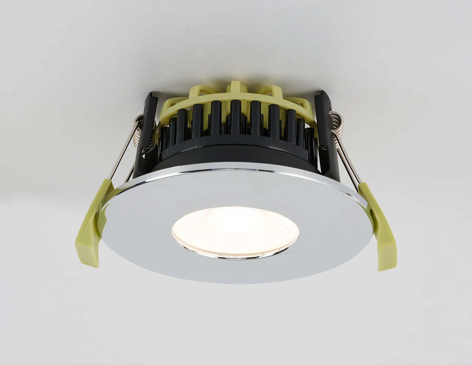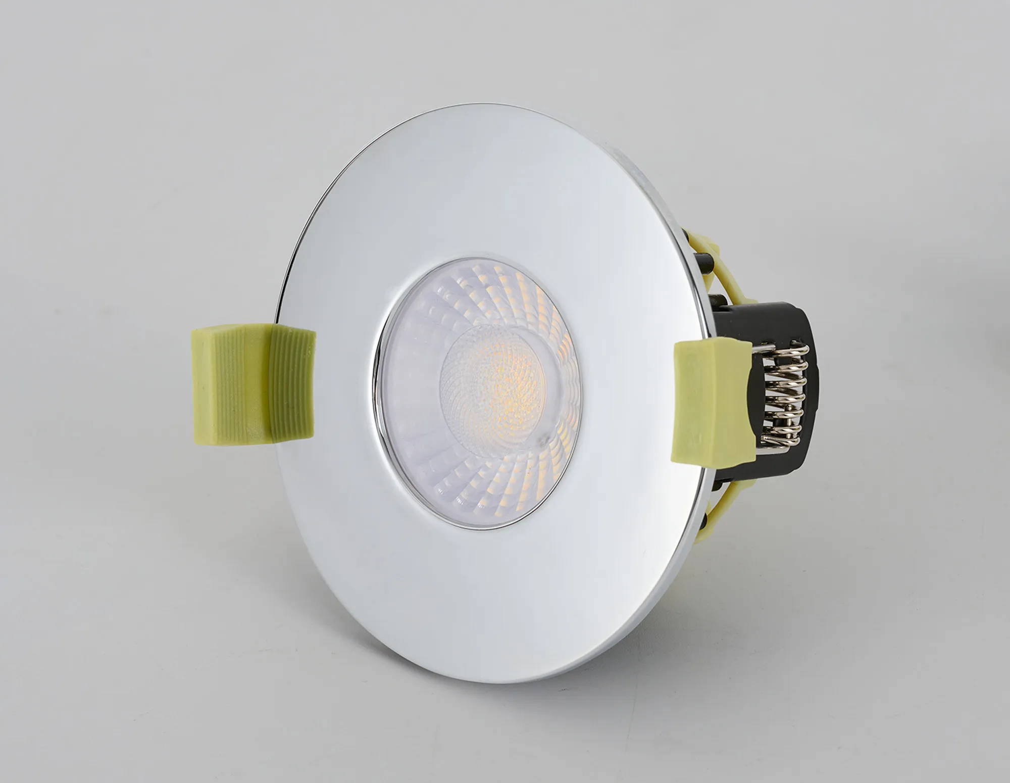 Troon 4/6/8W, Triac Dimmable 4CCT LED Fire Rated Downlight, With Black Chrome, Cut Out: 70mm, 400-800lm, IP65 DRIVER INC., 5yrs Wrnty