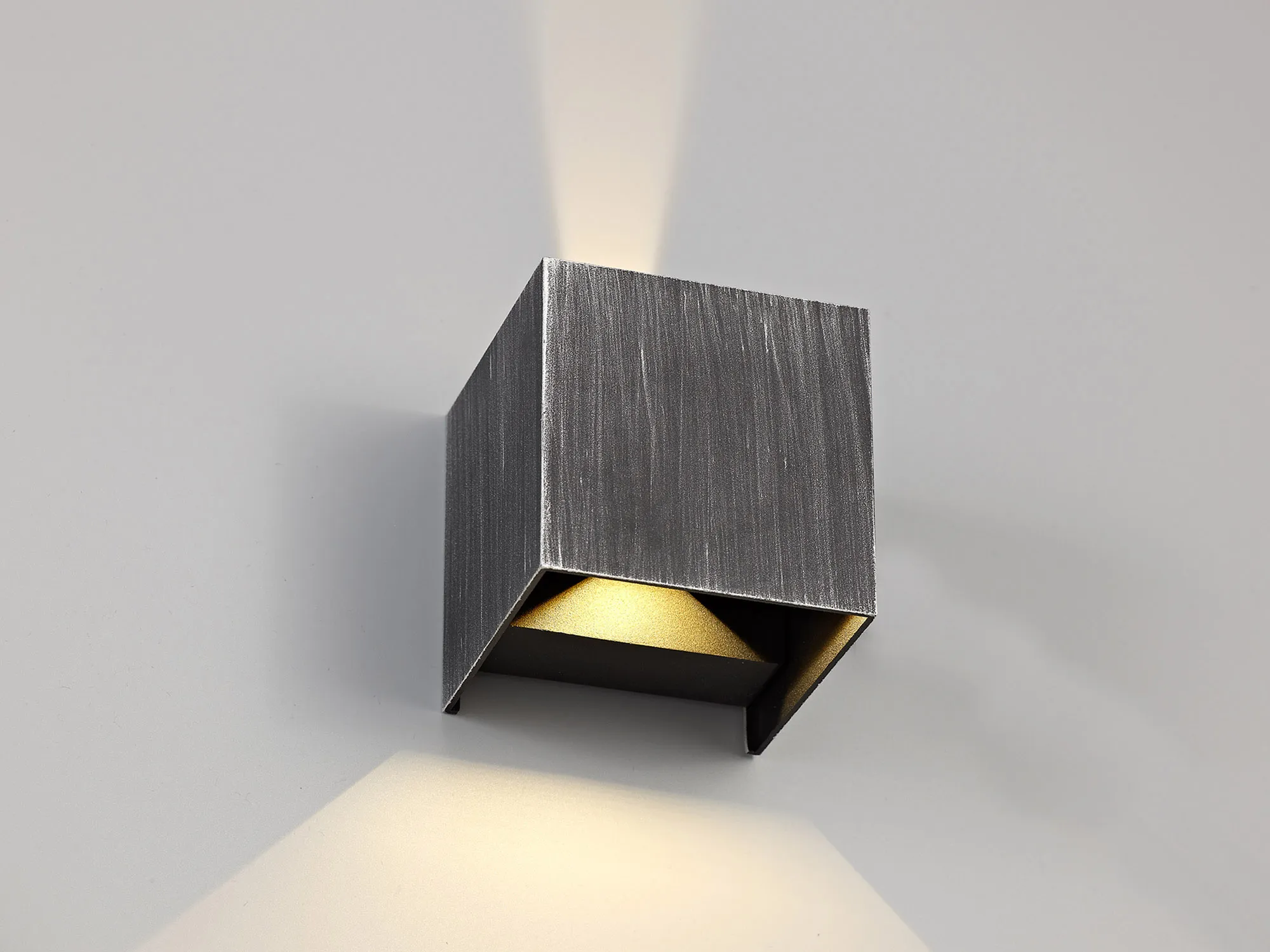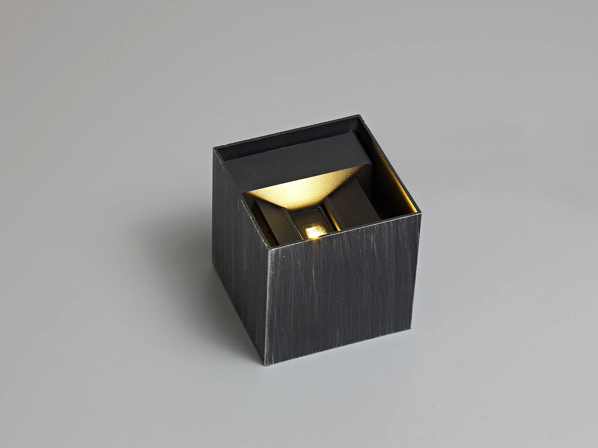 Richmond's unique finish effectively reimagines a chalkboard imitation with the brushed black and silver layered to mimic white chalk swept across the dark backdrop. This worn, raw quality would be the perfect outdoor lighting solution where an urban, industrial atmosphere is being created. With the integral LEDs projected in two directions the functionality of the wall lamp is just as idyllic for outdoor use as its design.