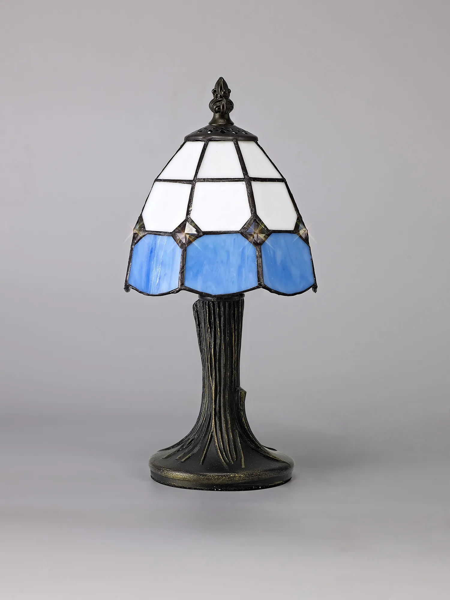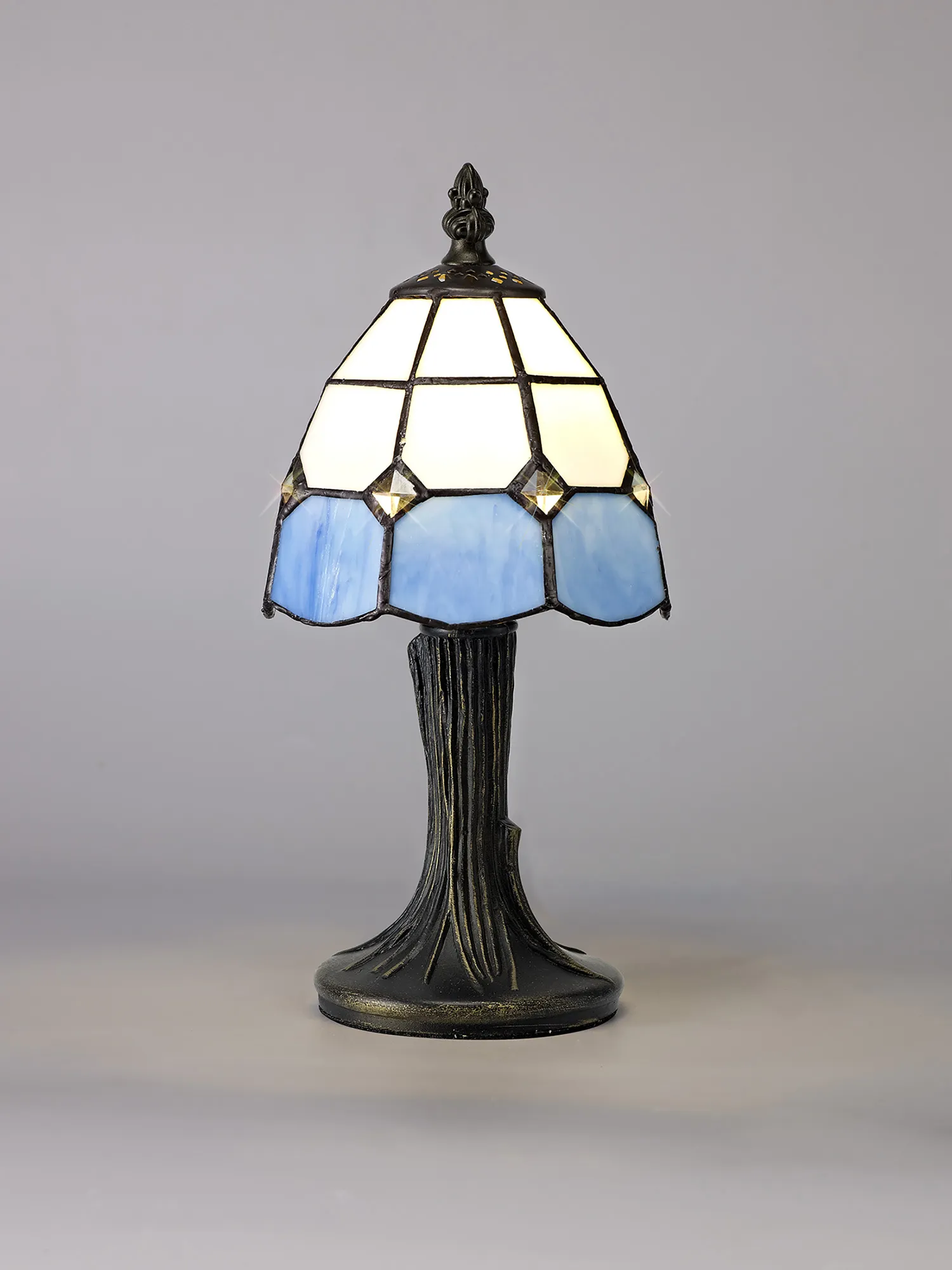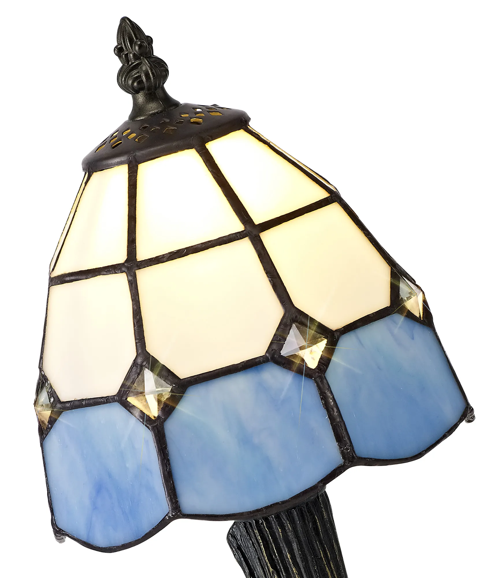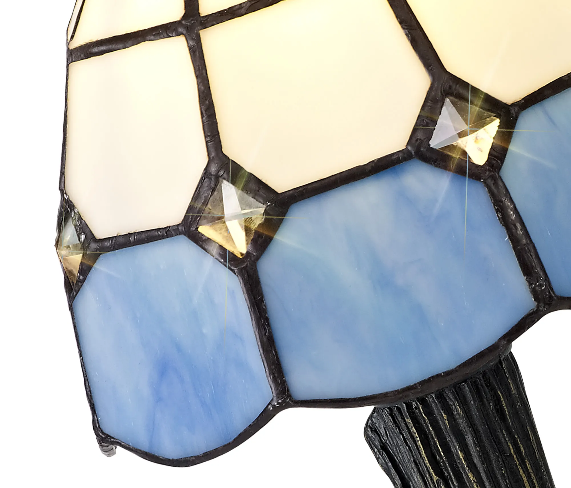 Lowburn Tiffany Table Lamp, 1 x E14, White/Blue/Clear Crystal Shade