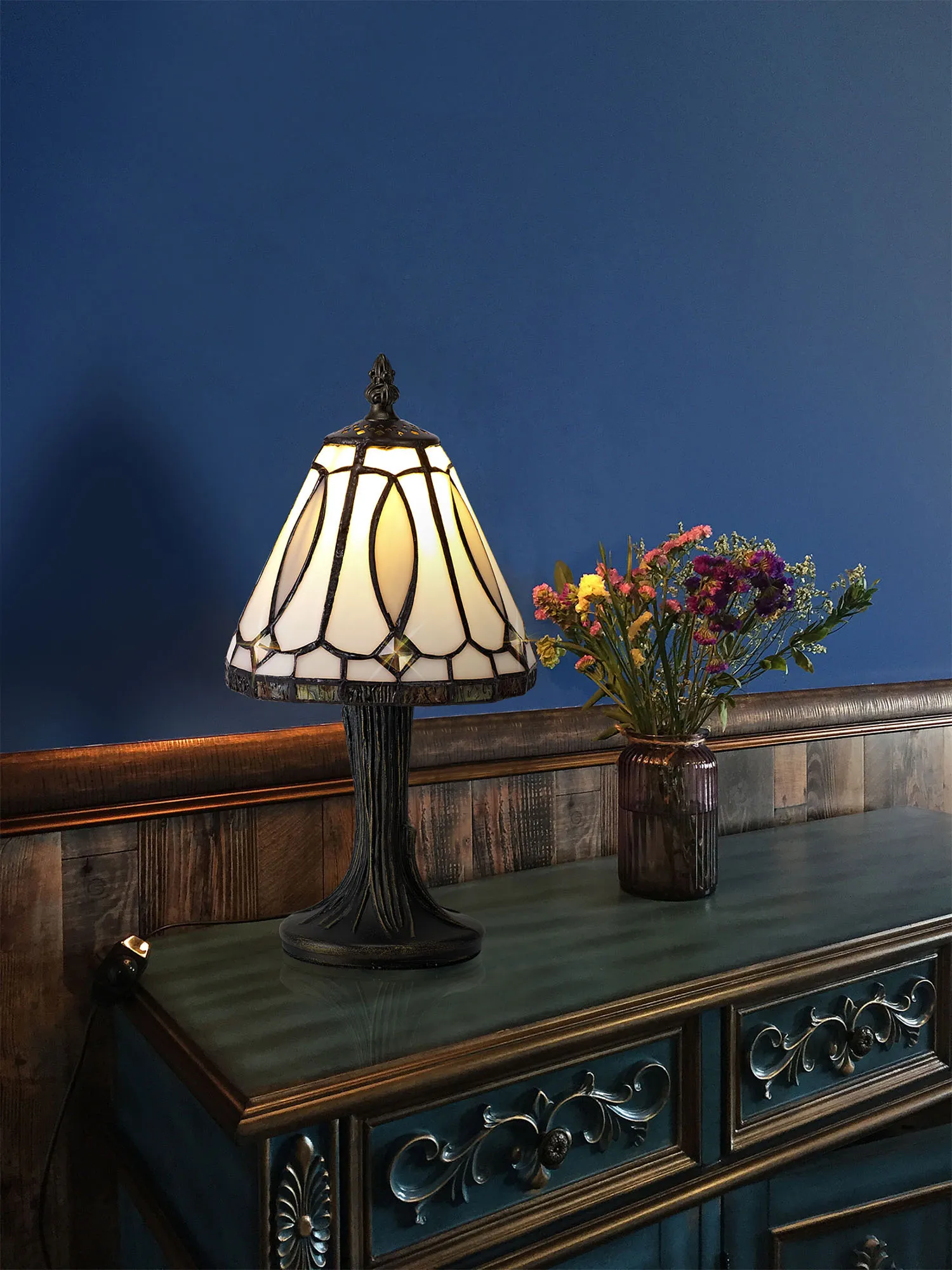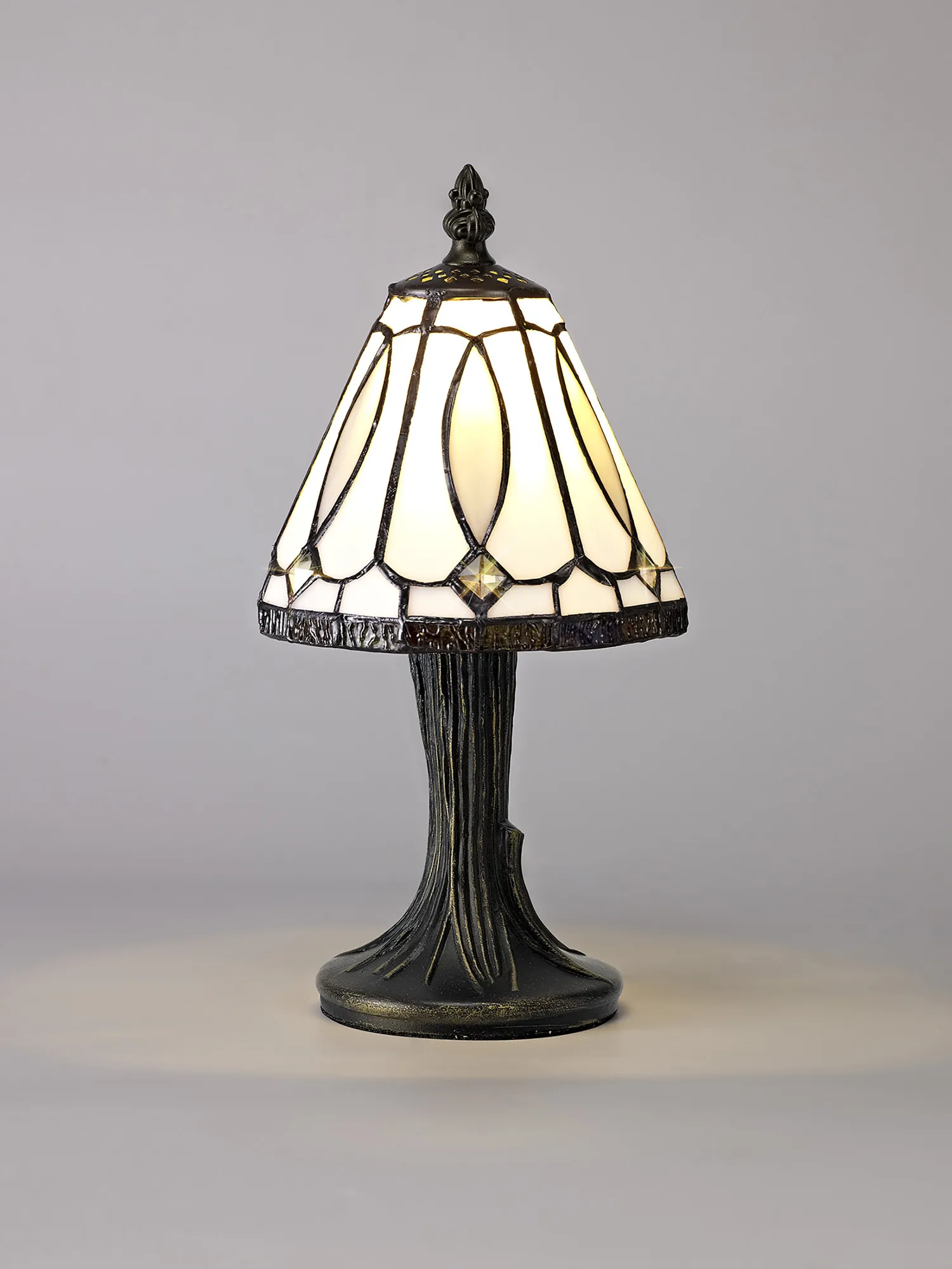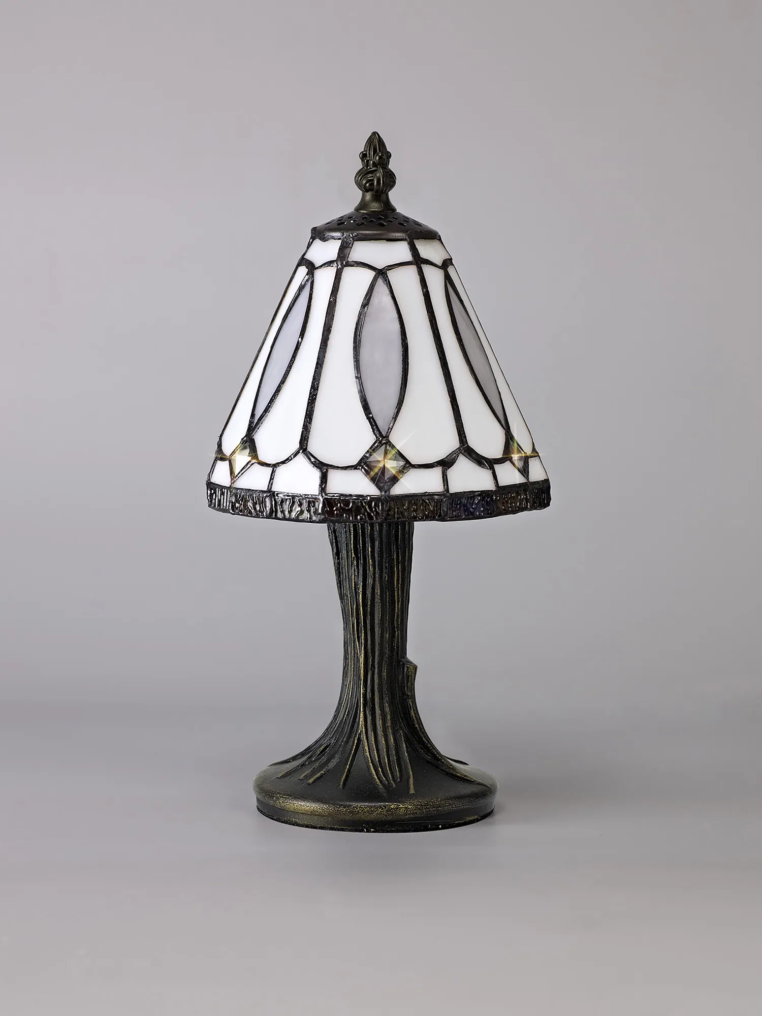 Parnell Tiffany Table Lamp, 1 x E14, White/Grey/Clear Crystal Shade