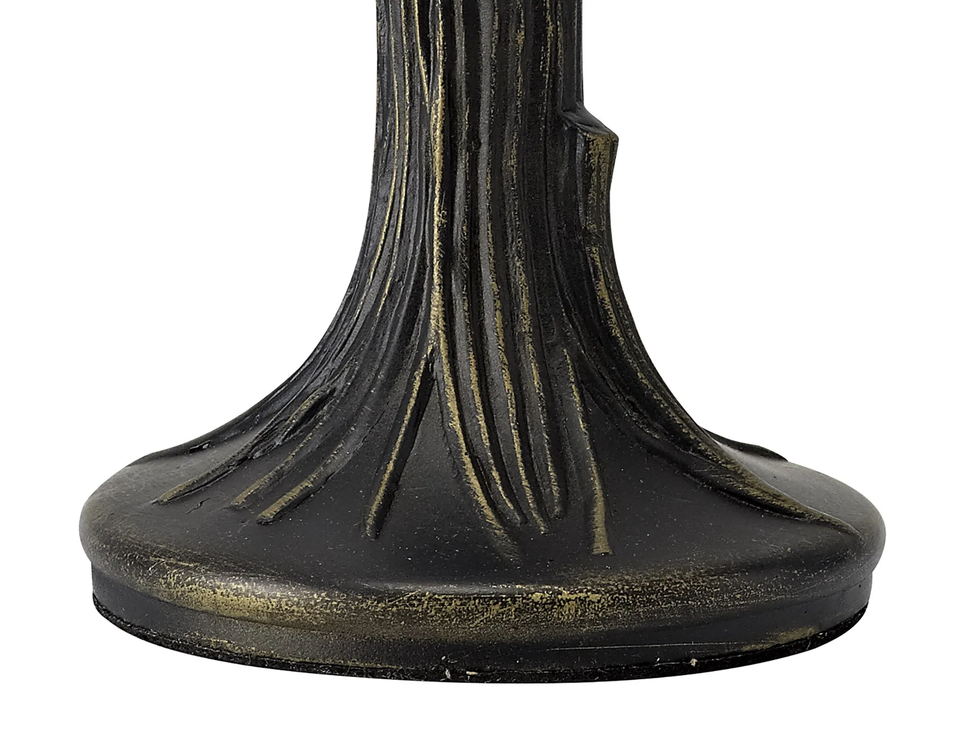 The rim of the Parnell Tiffany shade is coated in the same textured black finish as the table lamp itself, ensuring the shade design flows seamlessly into the base effect. The black outlines of the alternating white and grey glass forms an intriguing pattern around the prism shade. Clear crystal embedded along the edges has been used in place of the usual glass beads to produce prismatic reflections when illuminated.