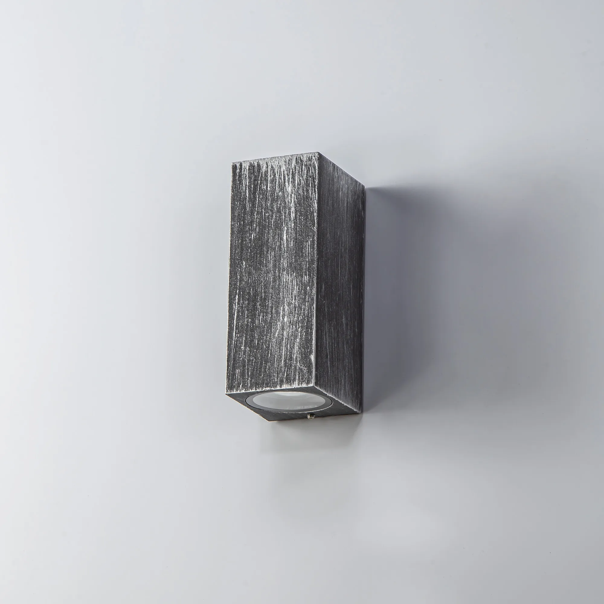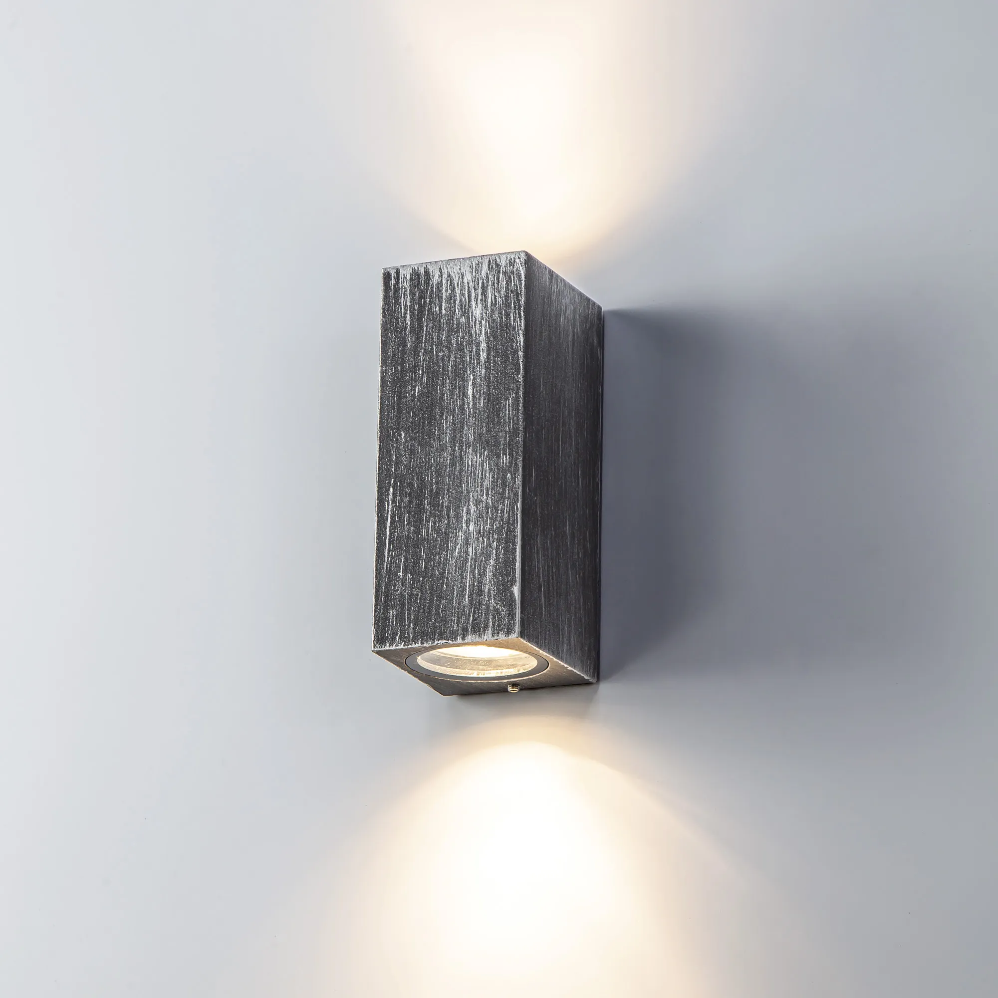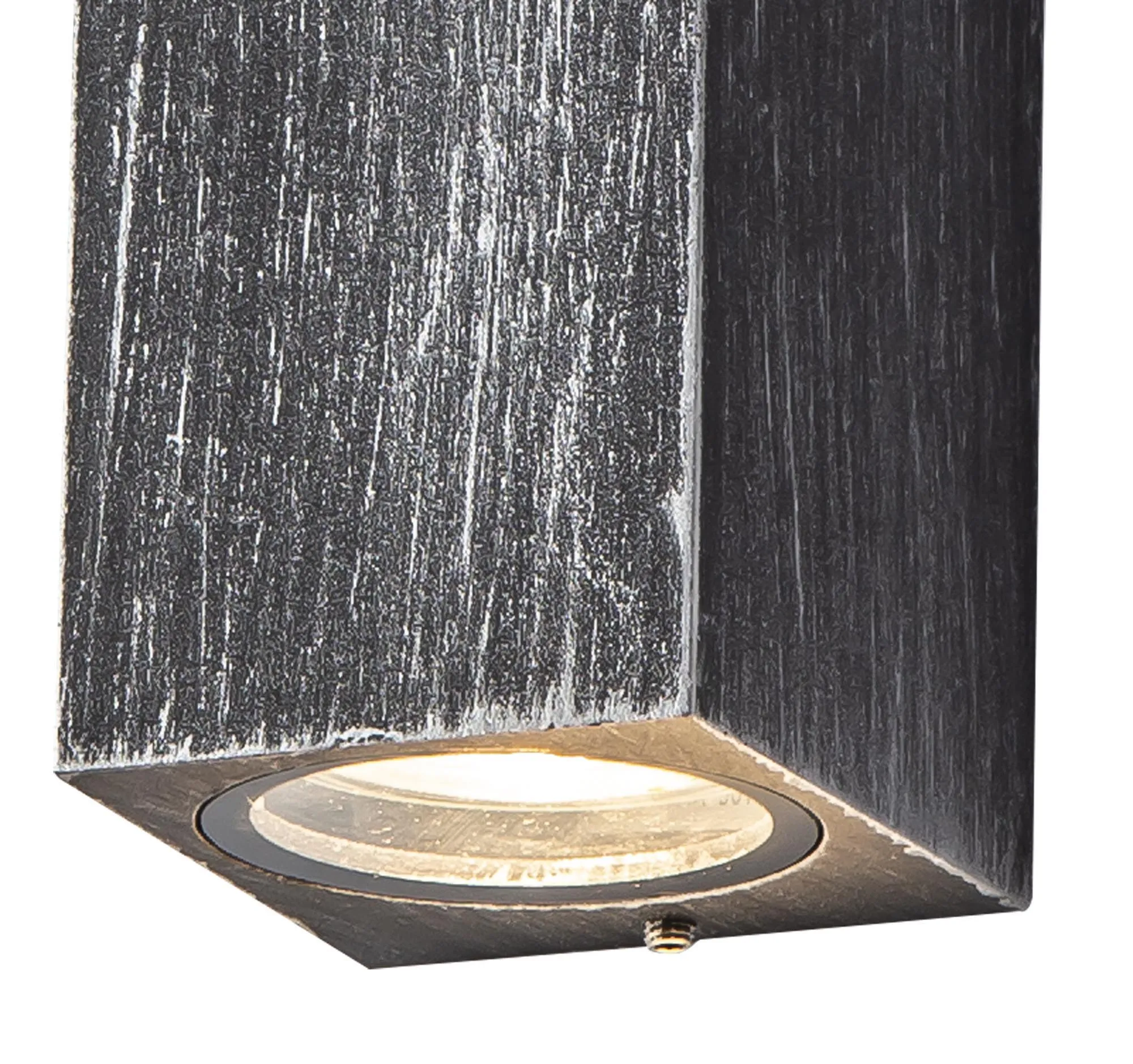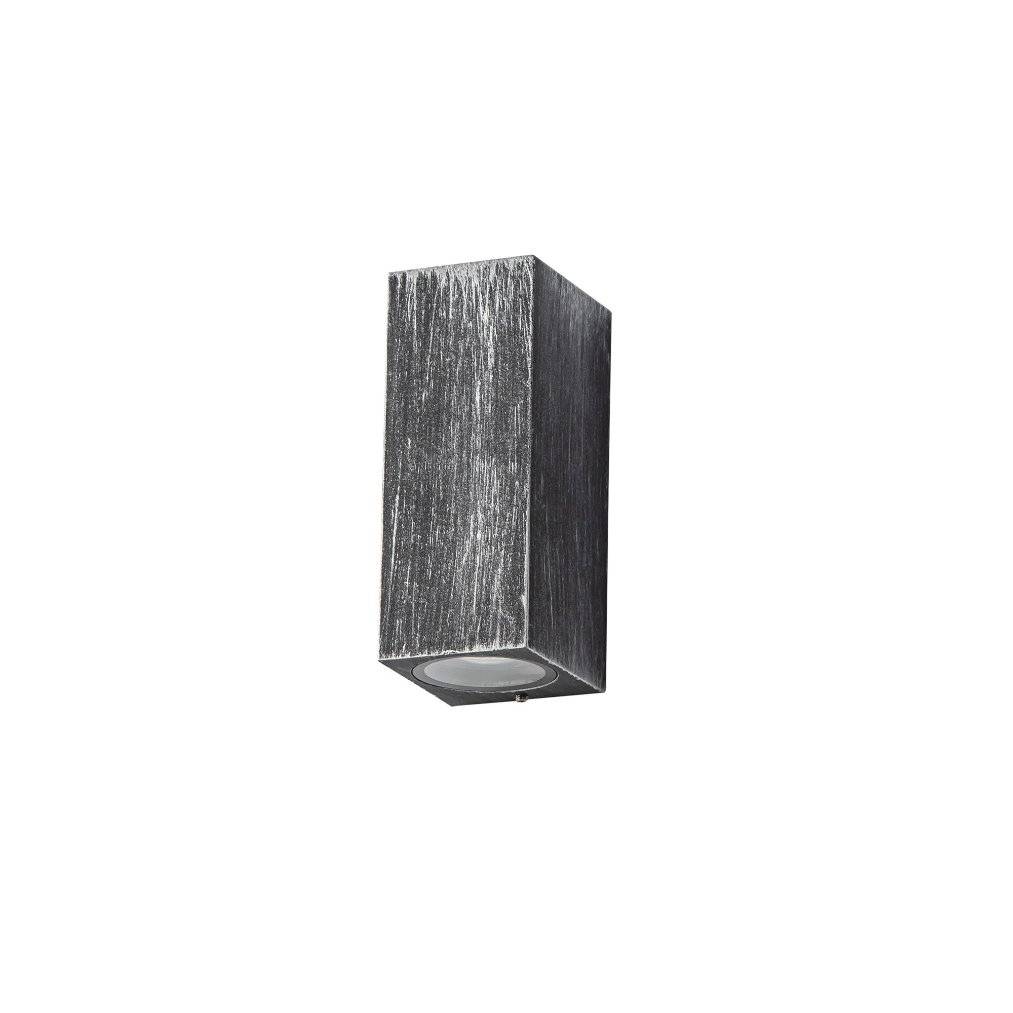 These outdoor IP54 rated wall lamps emulate a rustic urban atmosphere with their weathered colour finishes. The curved wall lamps use a black base with brushed flecks of gold whilst the rectangular version uses strokes of black and silver. This effect diminishes any impact from outdoor elements ensuring a reliable longevity of use.