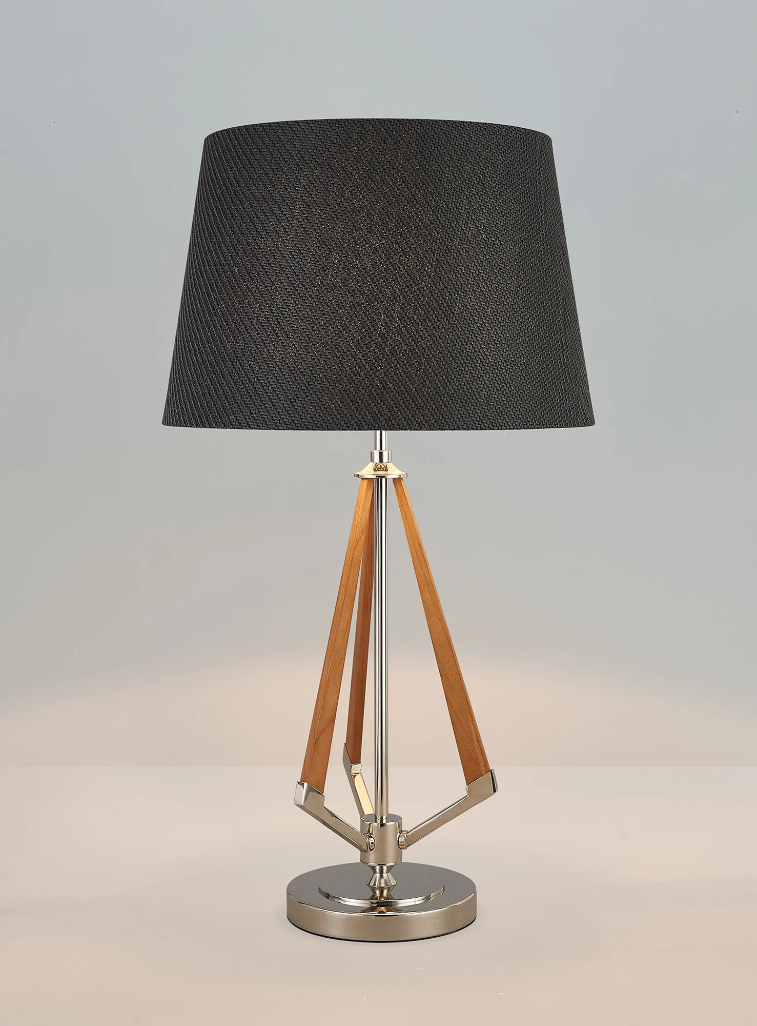 Avant Table Lamp, 1 Light E27, Polished Nickel/Taupe Wood/Sage Green/Prosecco 40x22cm Velvet Shade