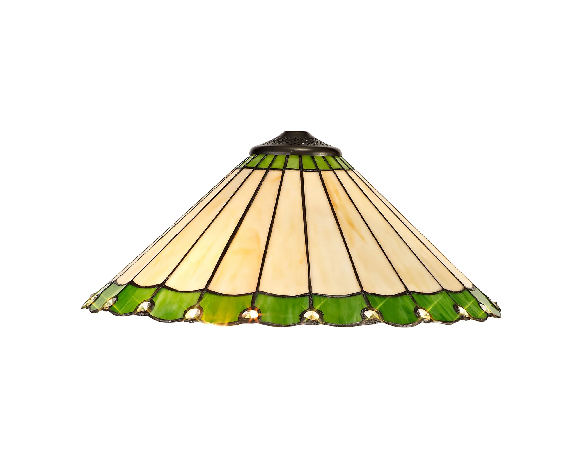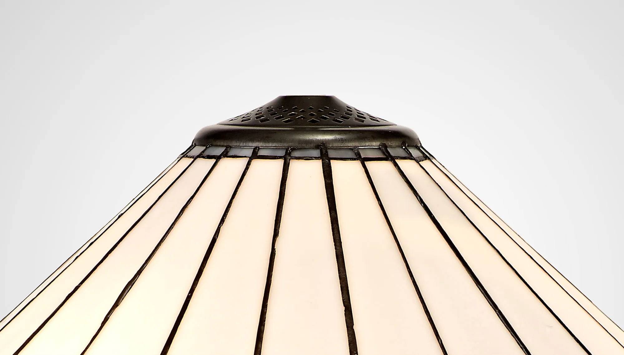 Farquhar uses a traditional Tiffany shade but with a modern twist. The fanned feather shapes forming the umbrella glass is mostly cream coloured with the curved tips of each point available in either green, brown, red, blue or grey. The modern component takes the form of small clear crystal pieces fixed on alternating points of the shades rim furthering the ranges regal appeal. The range of colours gives this products such a large range of settings with the table lamps, floor lamps, pendants and semi ceiling pendants