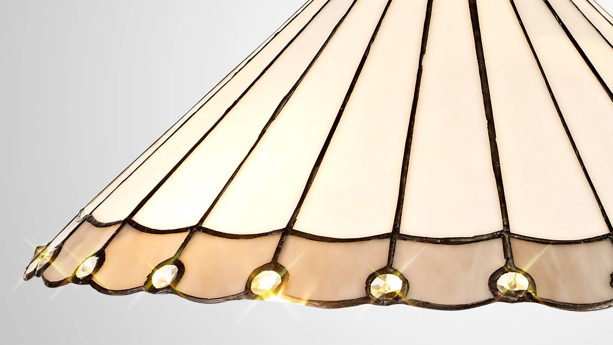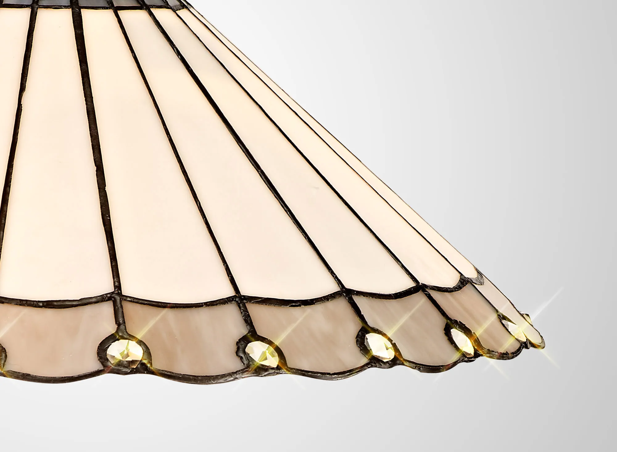 Farquhar 40.5cm 1 Light Downlighter Pendant E27 With 40cm Tiffany Shade, Grey/Cream/Crystal/Aged Antique Brass