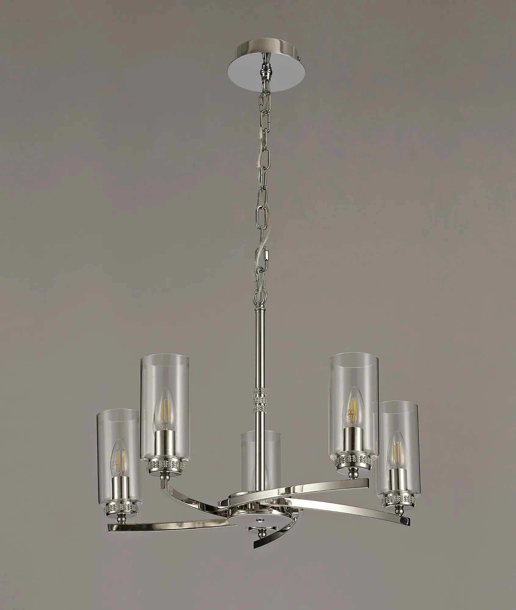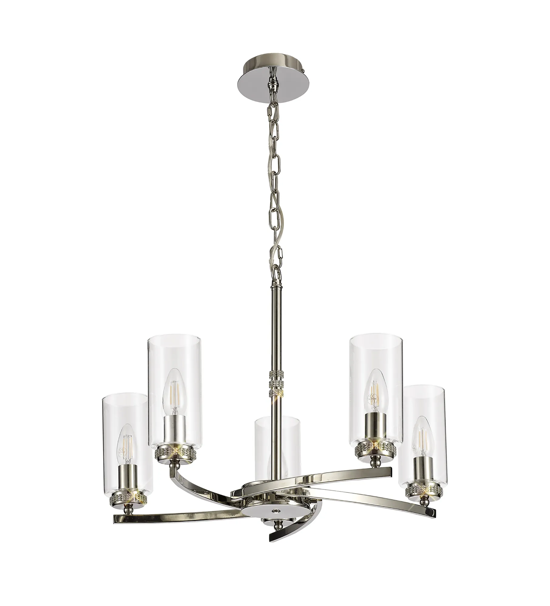 Sunnyvale's traditional lighting style subtly uses slight intriguing components to glamourize its unassuming frame. An open cylindrical clear glass around each lamp holder creates a serene reflective glow from the E14 lamp chosen. Their most modern trait includes the stunning bands of square crystal diamantes beneath each glass and smaller bands around the slim central rod, converting a commonly plain component of a lighting fixture into a prominent attraction. Available in three colour options, this collection of pendants, wall, table and floor lamps offers an ideal finish to accompany a number a decorative themes.