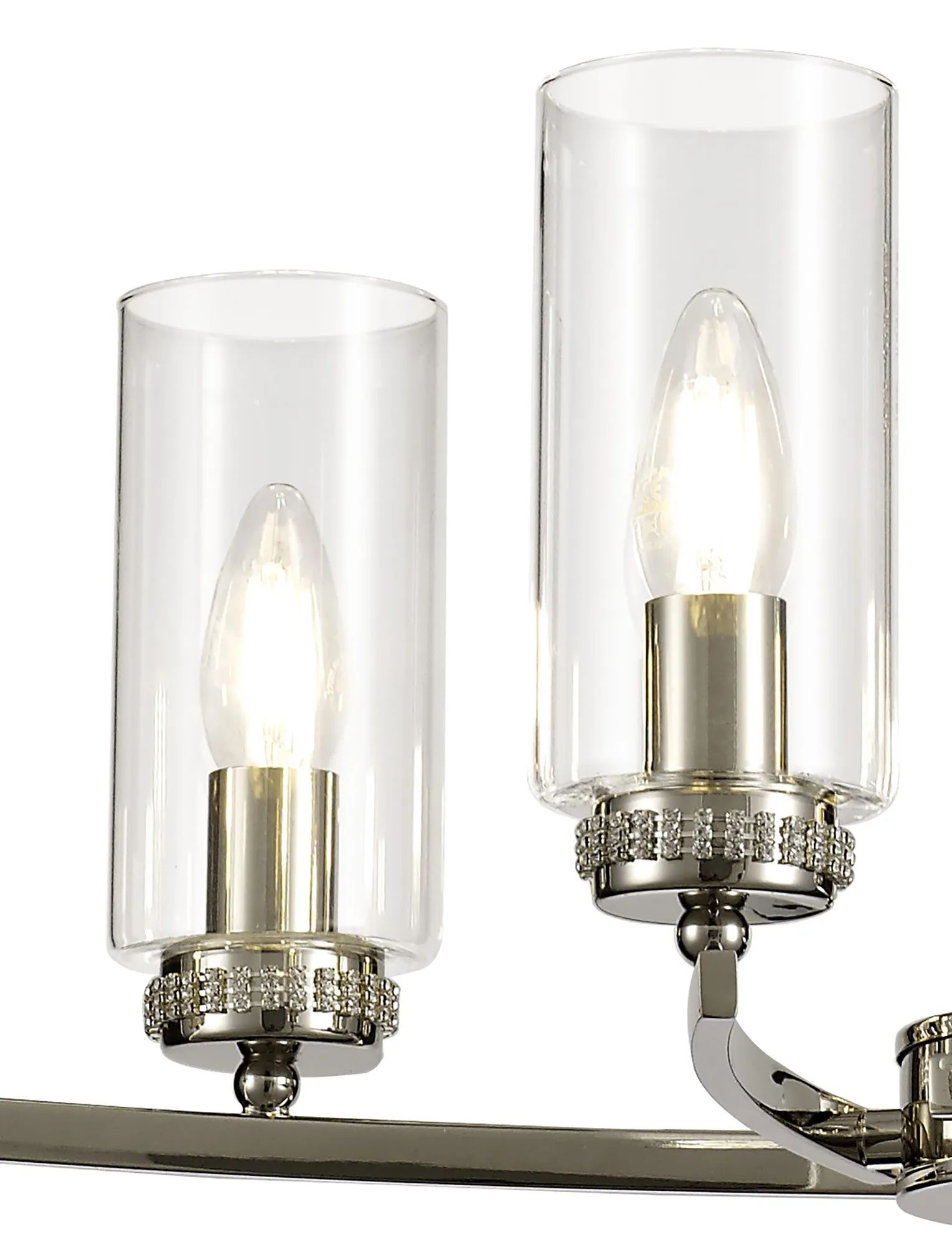 Sunnyvale's traditional lighting style subtly uses slight intriguing components to glamourize its unassuming frame. An open cylindrical clear glass around each lamp holder creates a serene reflective glow from the E14 lamp chosen. Their most modern trait includes the stunning bands of square crystal diamantes beneath each glass and smaller bands around the slim central rod, converting a commonly plain component of a lighting fixture into a prominent attraction. Available in three colour options, this collection of pendants, wall, table and floor lamps offers an ideal finish to accompany a number a decorative themes.