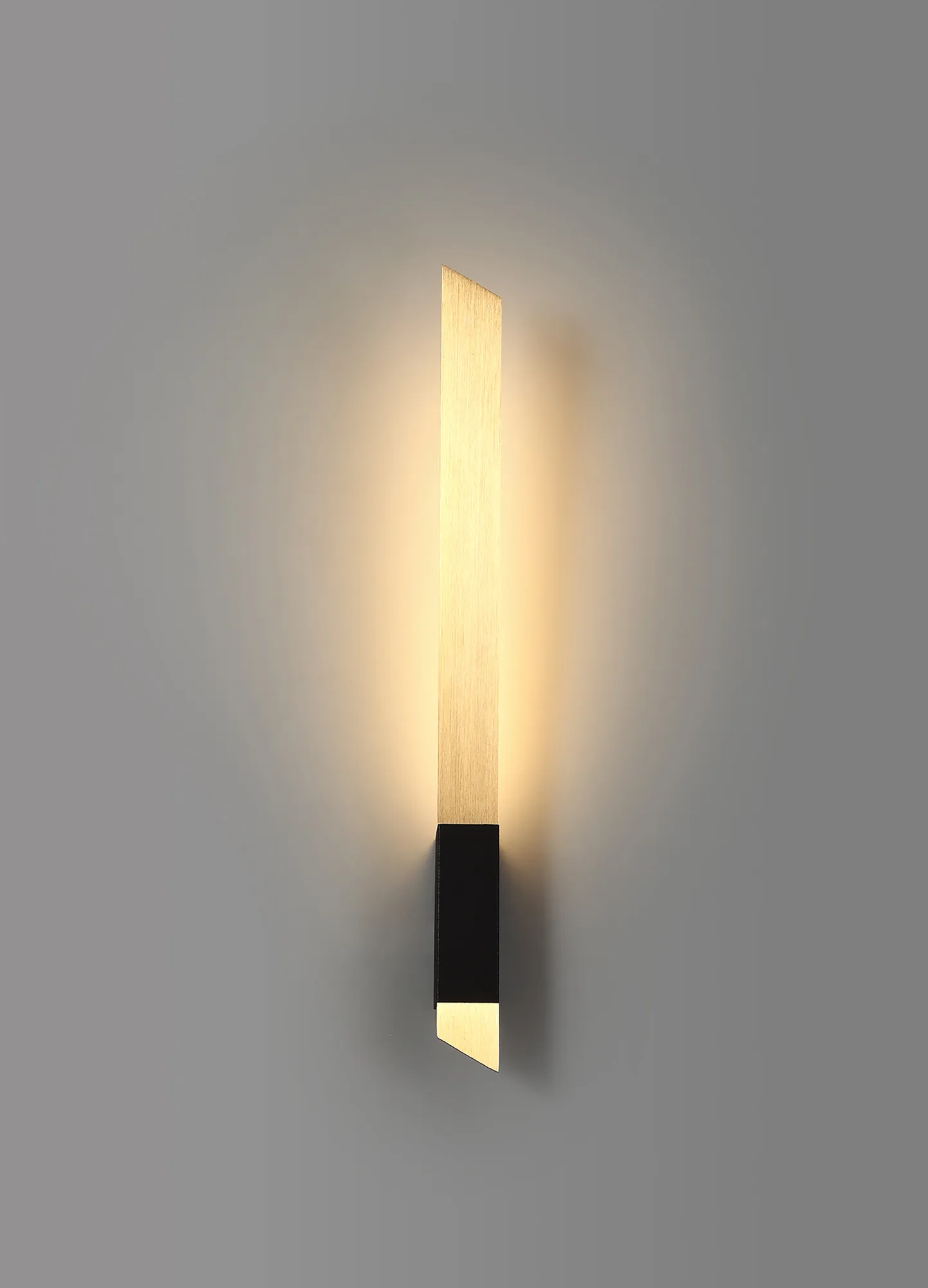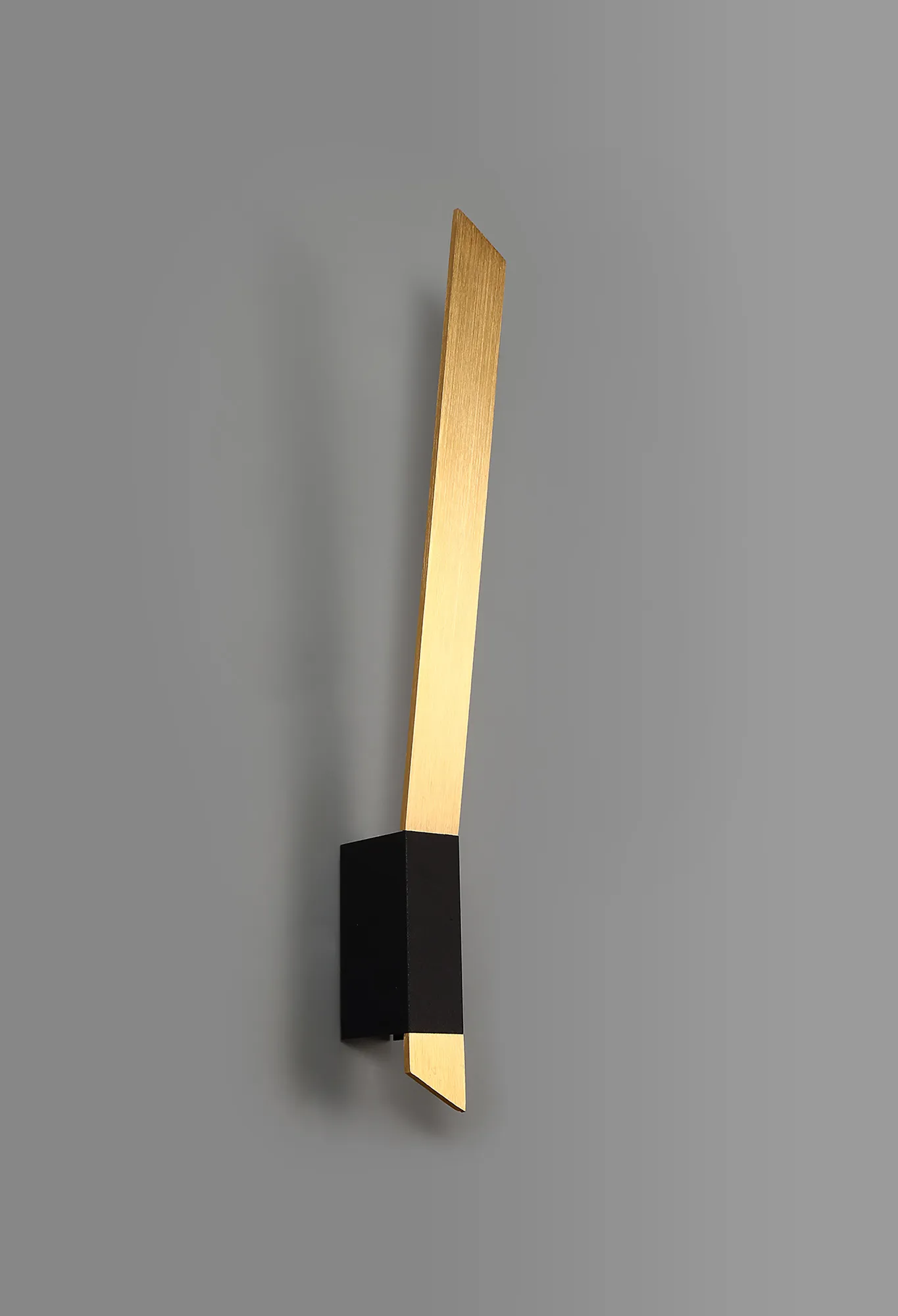 The long panel form of the Orini wall lamp angles slightly away from the wall to further project the light into a larger dispersal beam along the surface wall. The integral 3000K LEDs are built into the frame and concealed behind the long opal diffuser which sits flush against the arm to ensure its presence is not obvious or obstructive. Available in three colour finishes; sand black with satin chrome, sand white with polished chrome or satin gold with sand black, this wall lamp range provides a choice suitable for a wide variation of room settings.