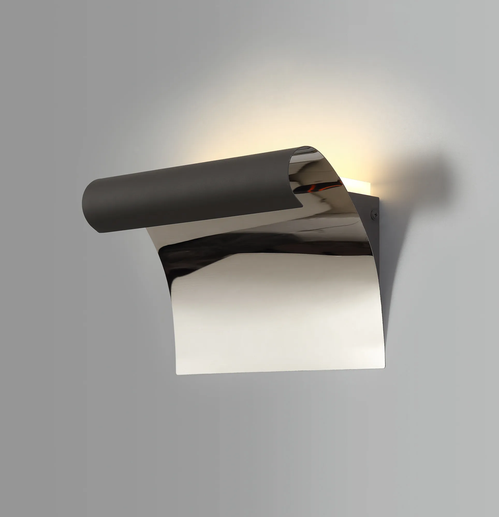 The rolling wave construct of these modern wall lamps, finished with either polished chrome or sand anthracite or polished chrome and sand white, could be used as a stand-alone decorative feature. Glenfield's unique form casts the light from the integral 3000K LEDs along the wall surface in an upward directionality. Each of the two sizes boast an impressive lumen output for wall lights of their size.