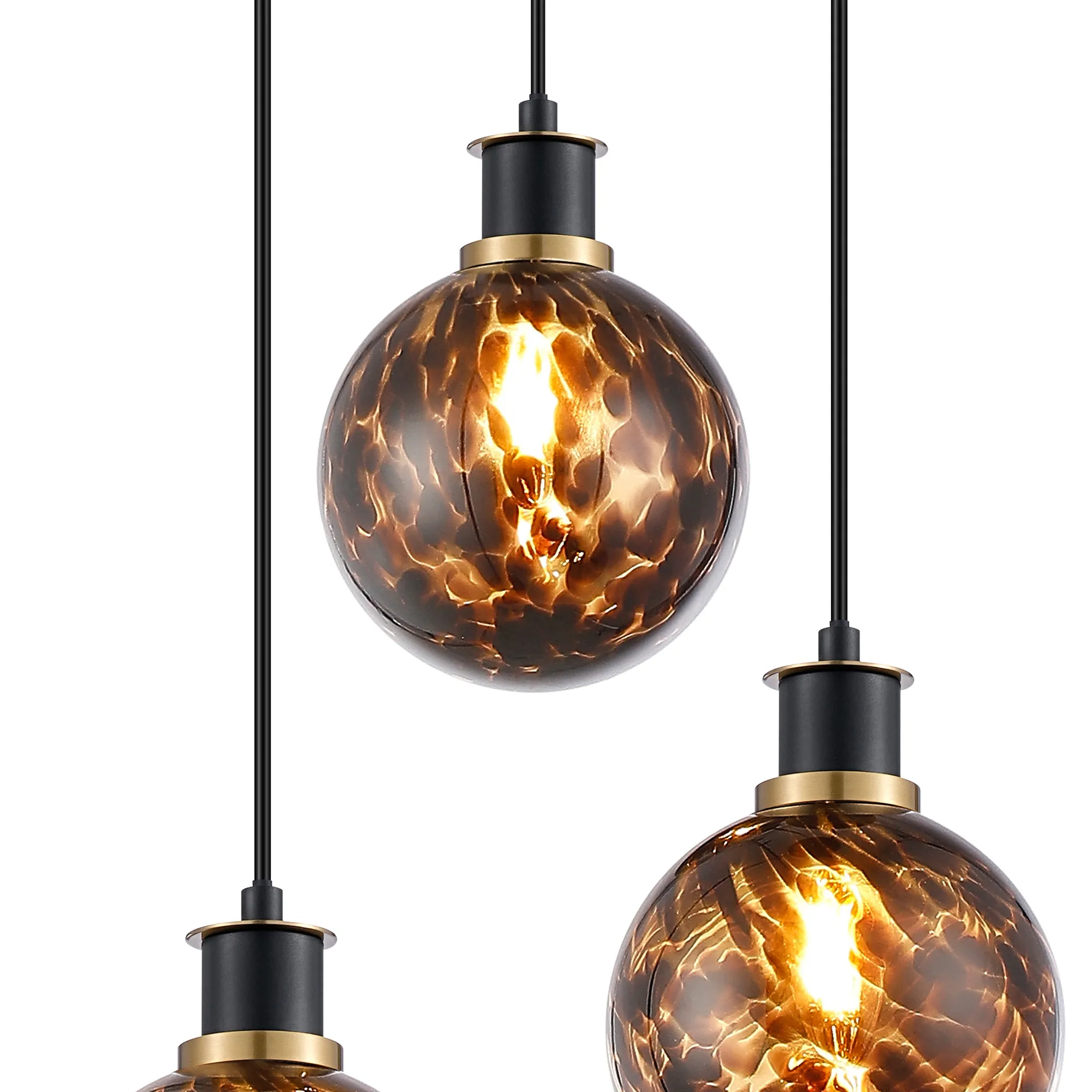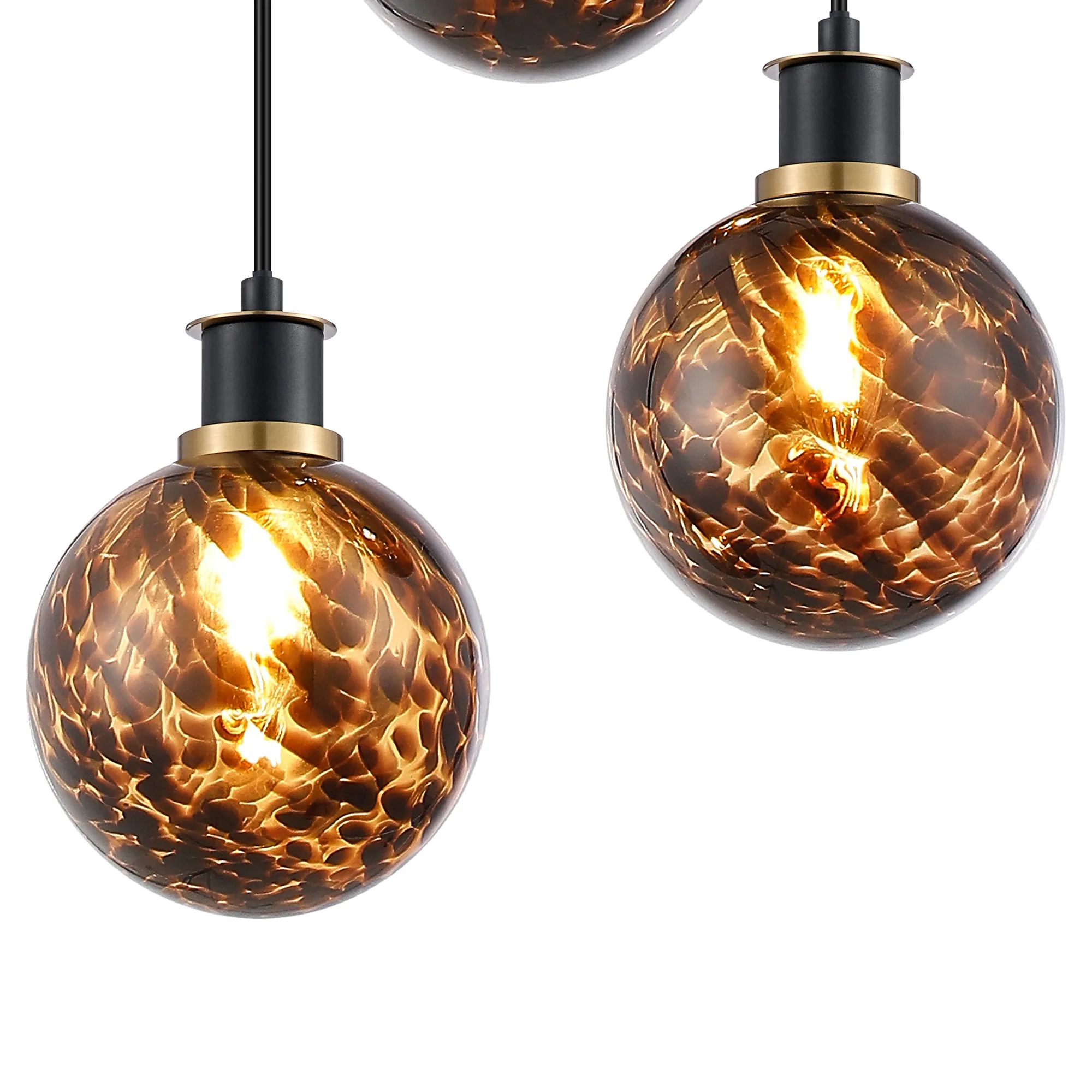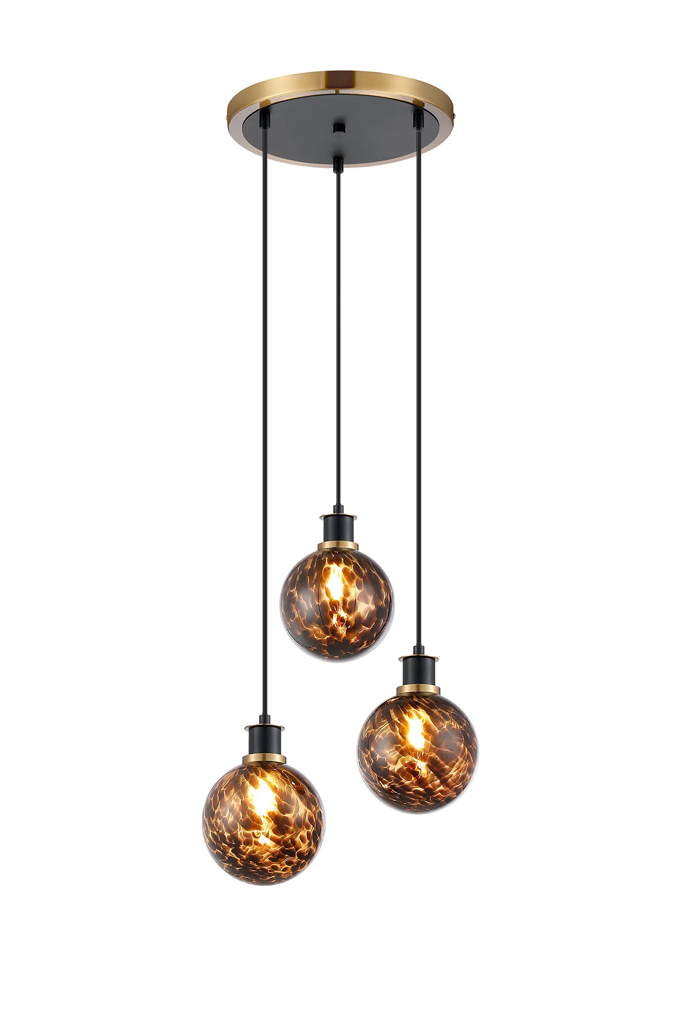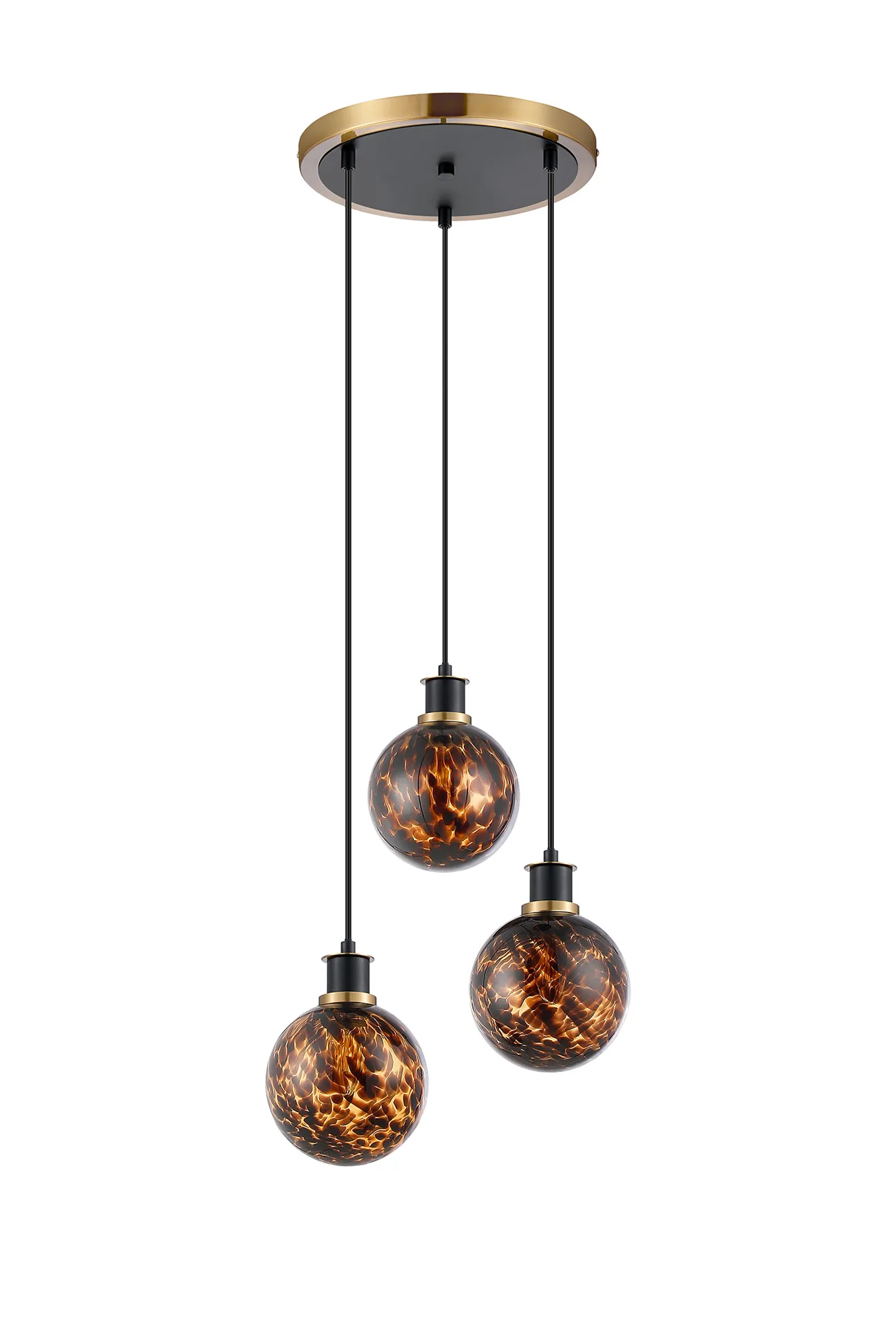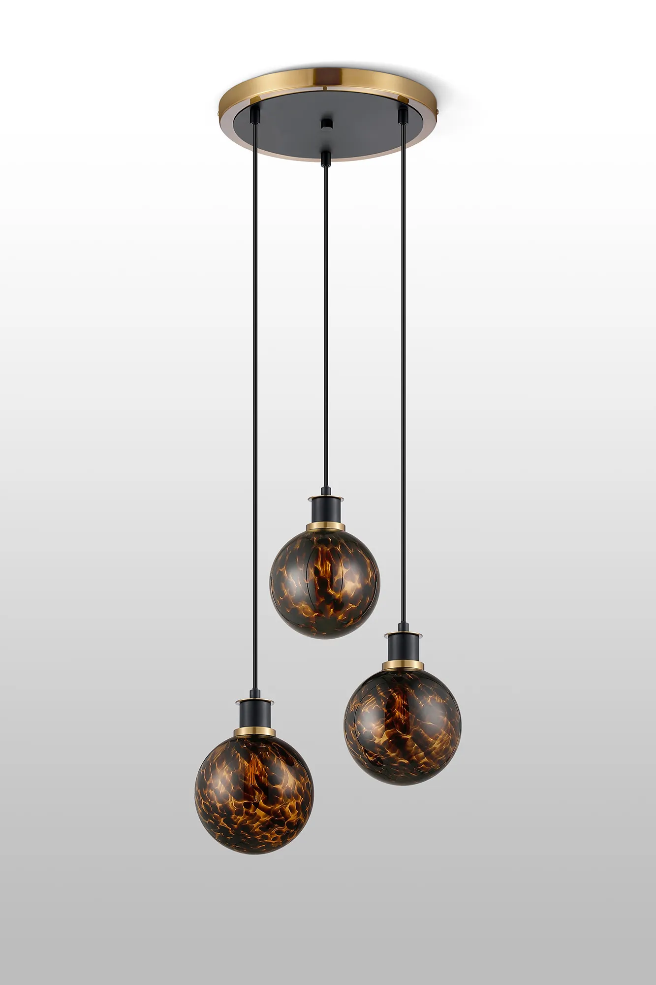 Fernie Table Lamp Touch Switch, 3 Light E14, With 15cm Round Brown & Amber Tortoise Shell Glass Shade, Brass & Satin Black