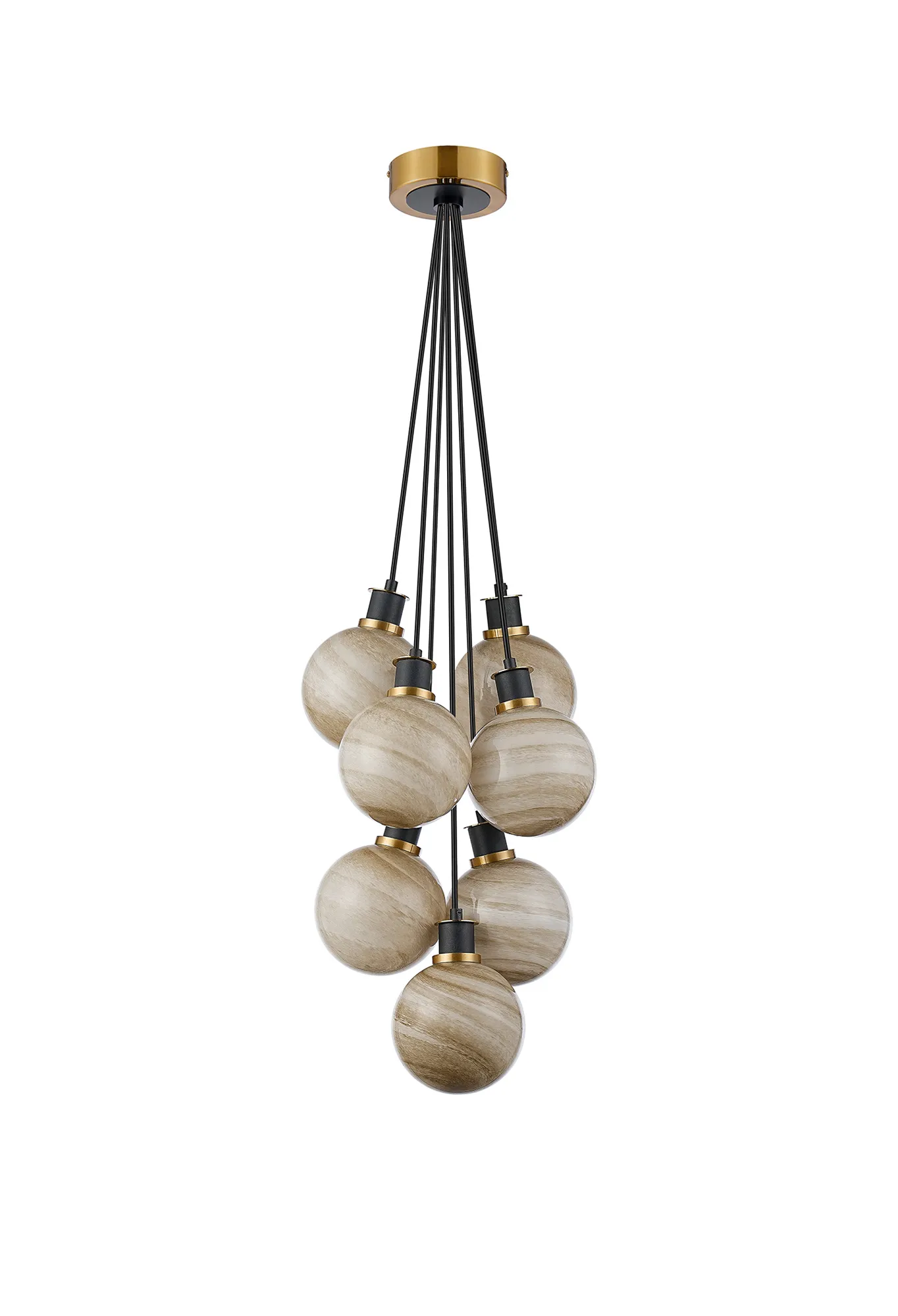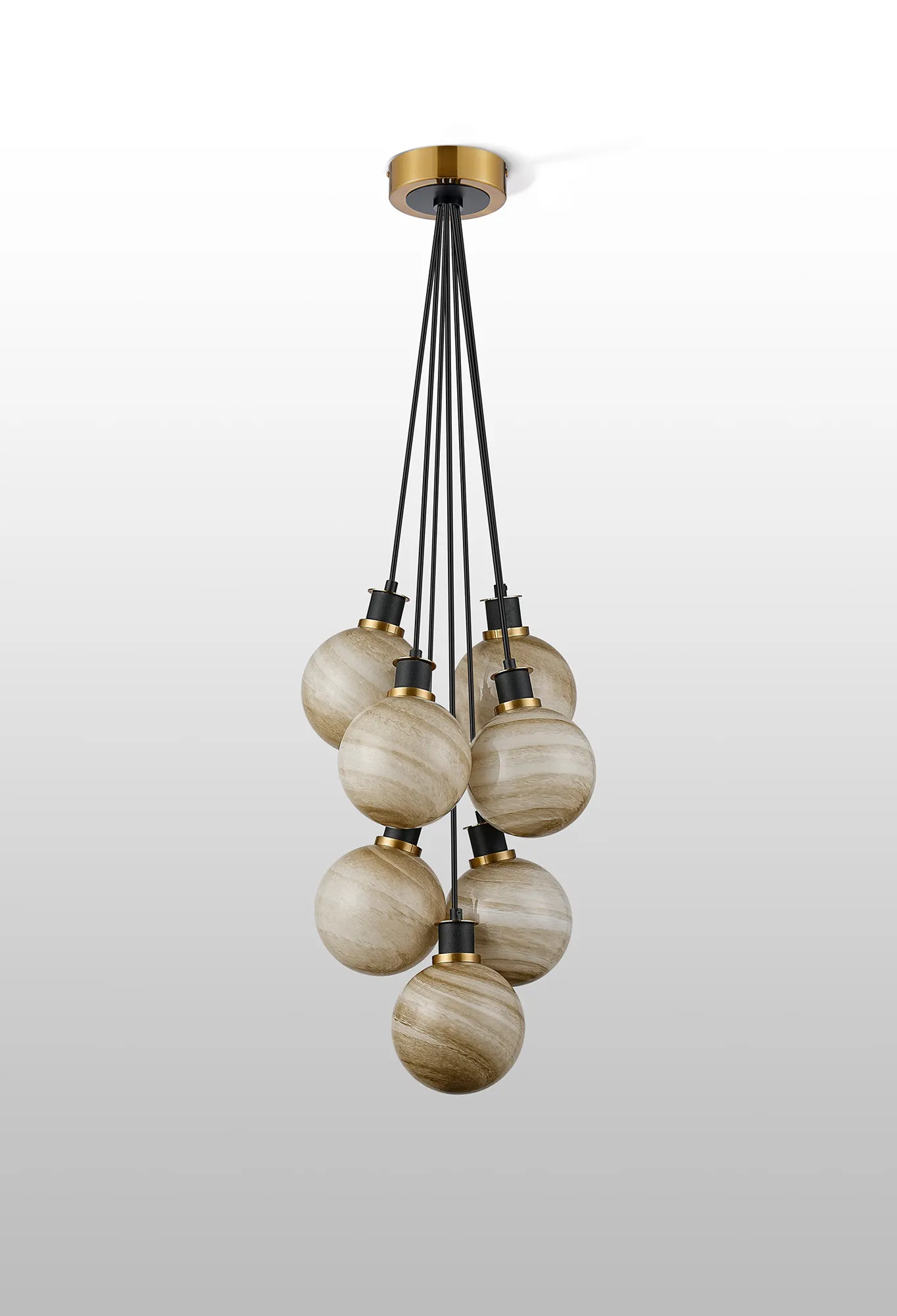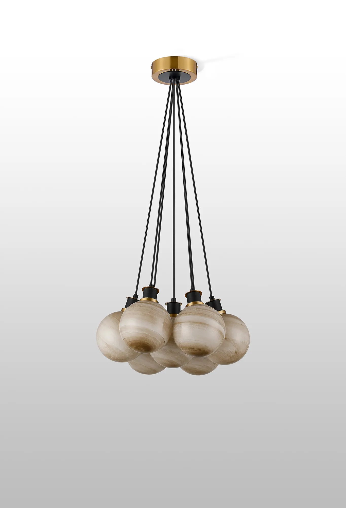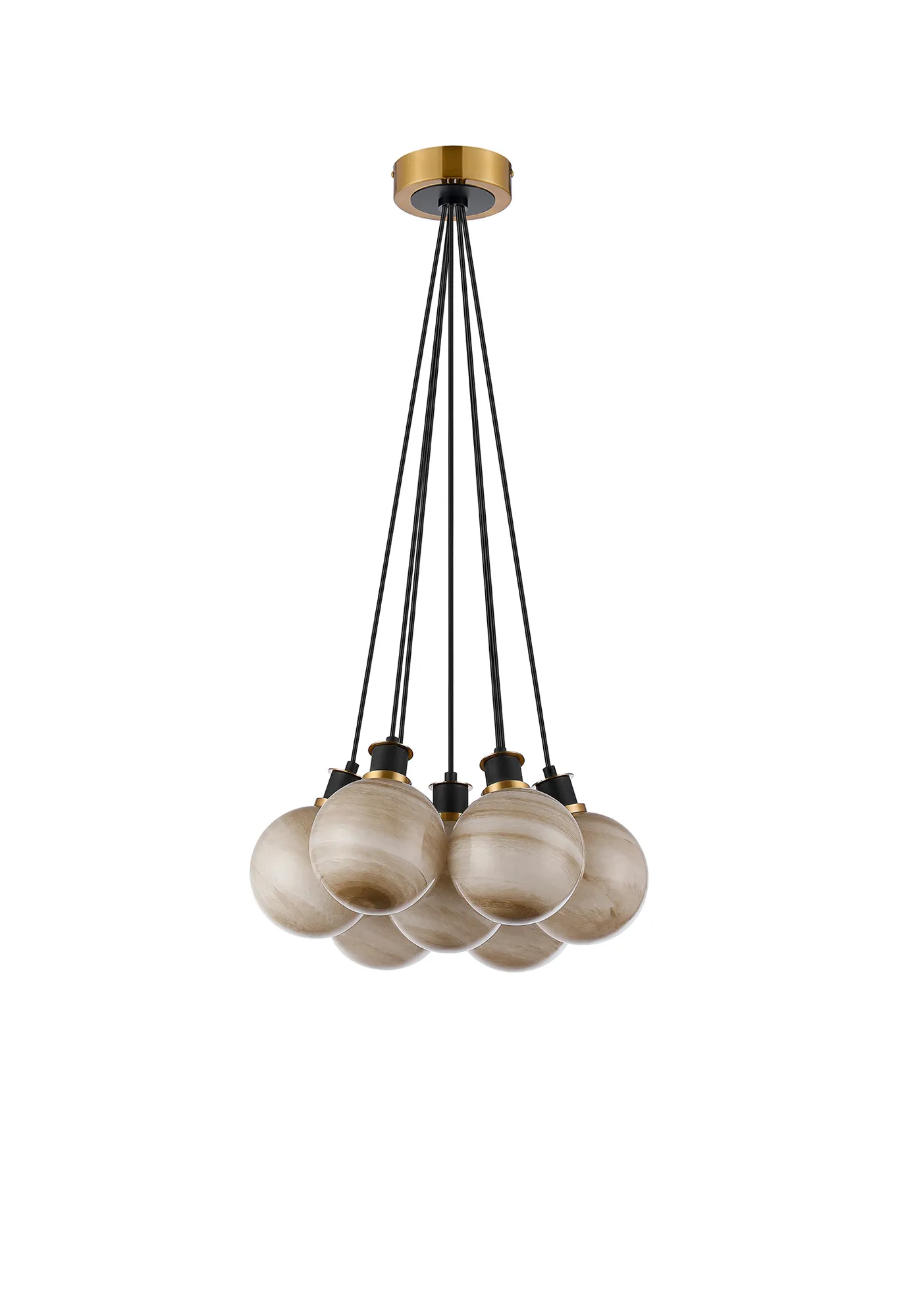 Fernie Switched Wall Light, 1 Light E14 With 15cm Round Dark Beige Marble Effect Glass Shade, Brass & Satin Black Framework