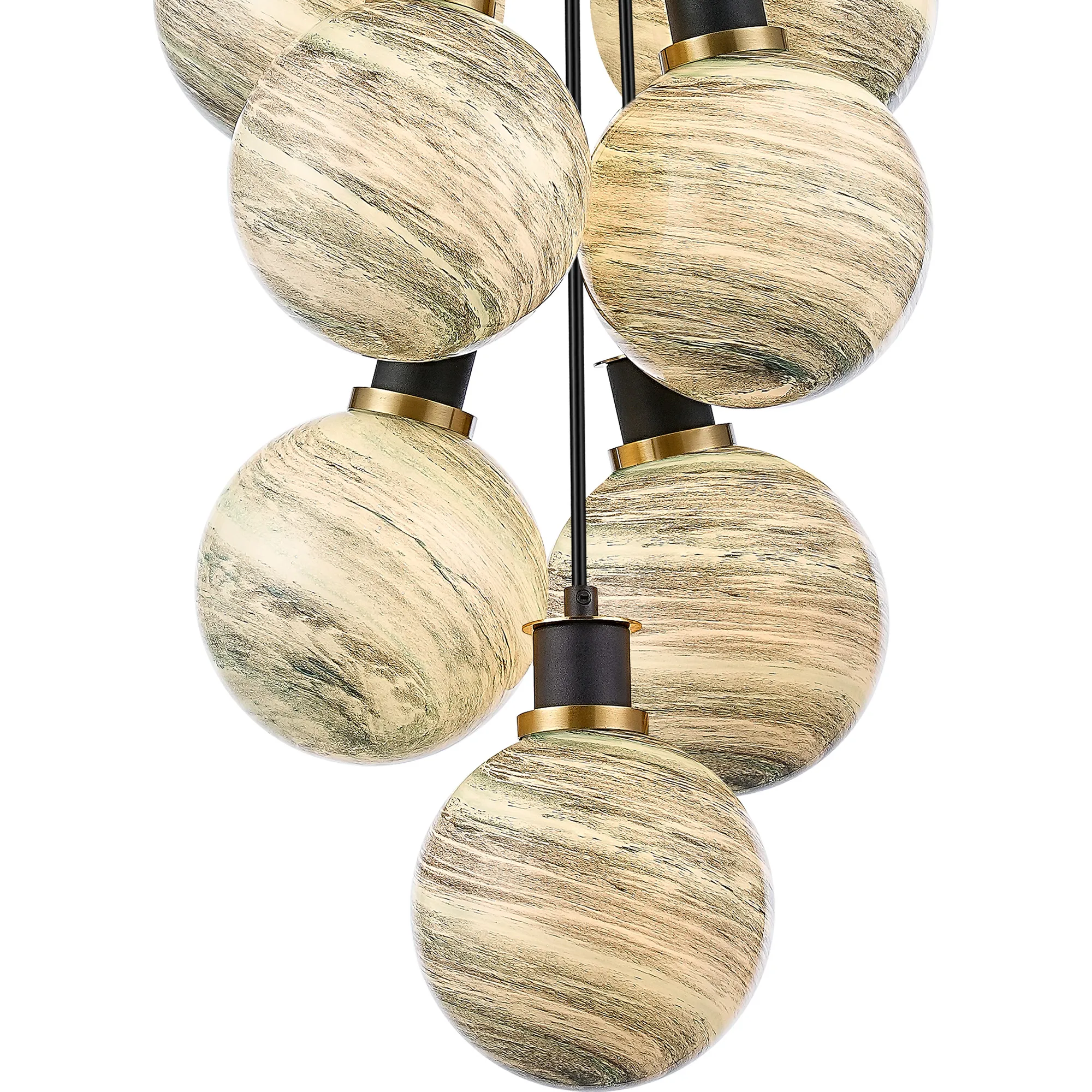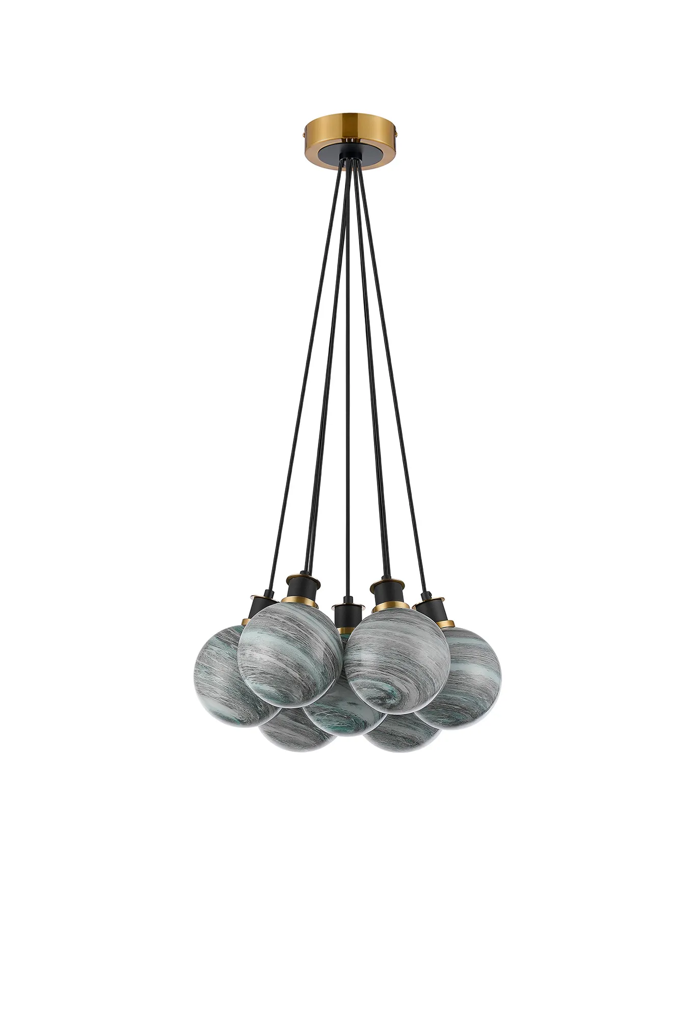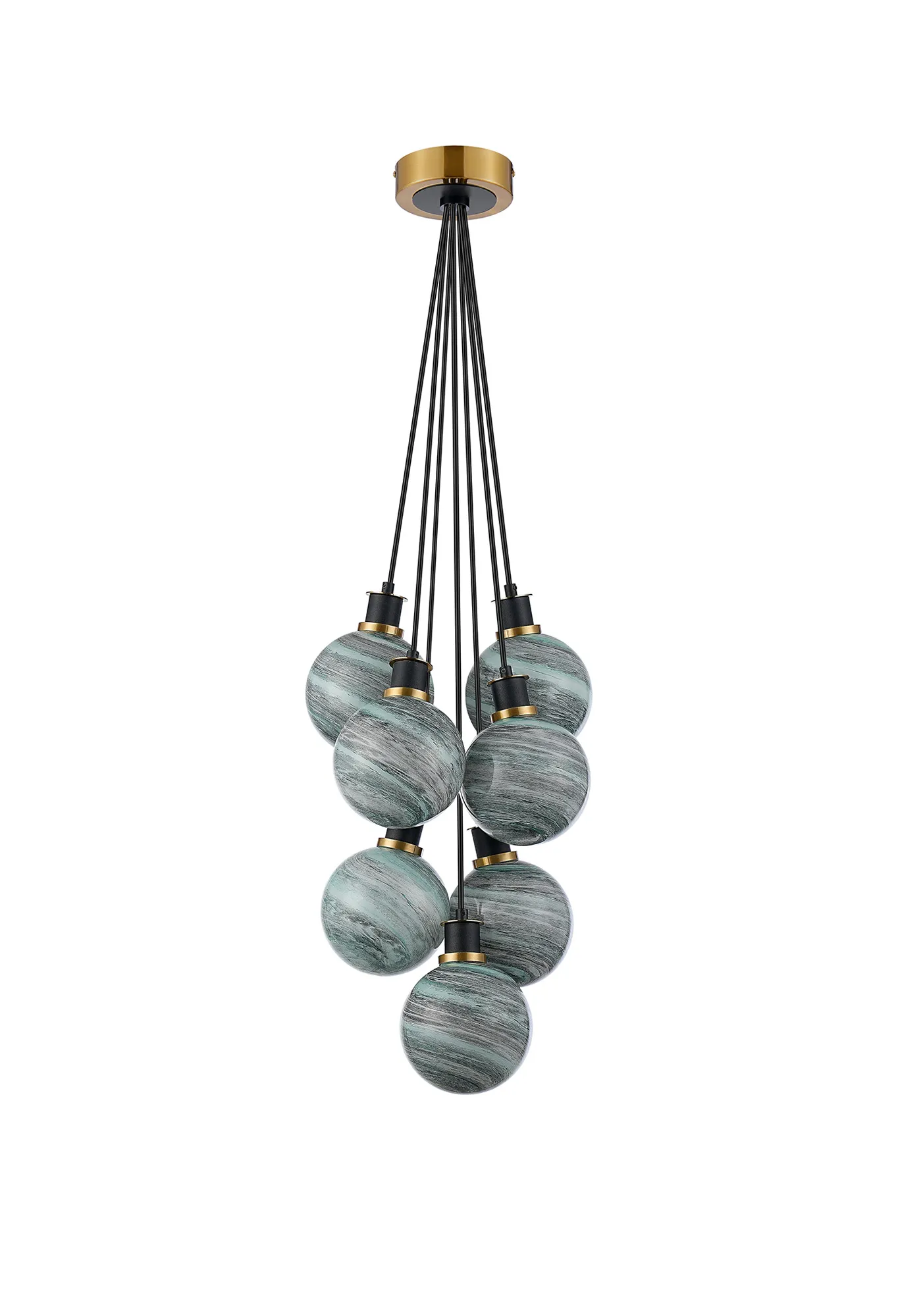 Fernie Switched Wall Light, 1 Light E14 With 15cm Round Dark Green Marble Effect Glass Shade, Brass & Satin Black Framework