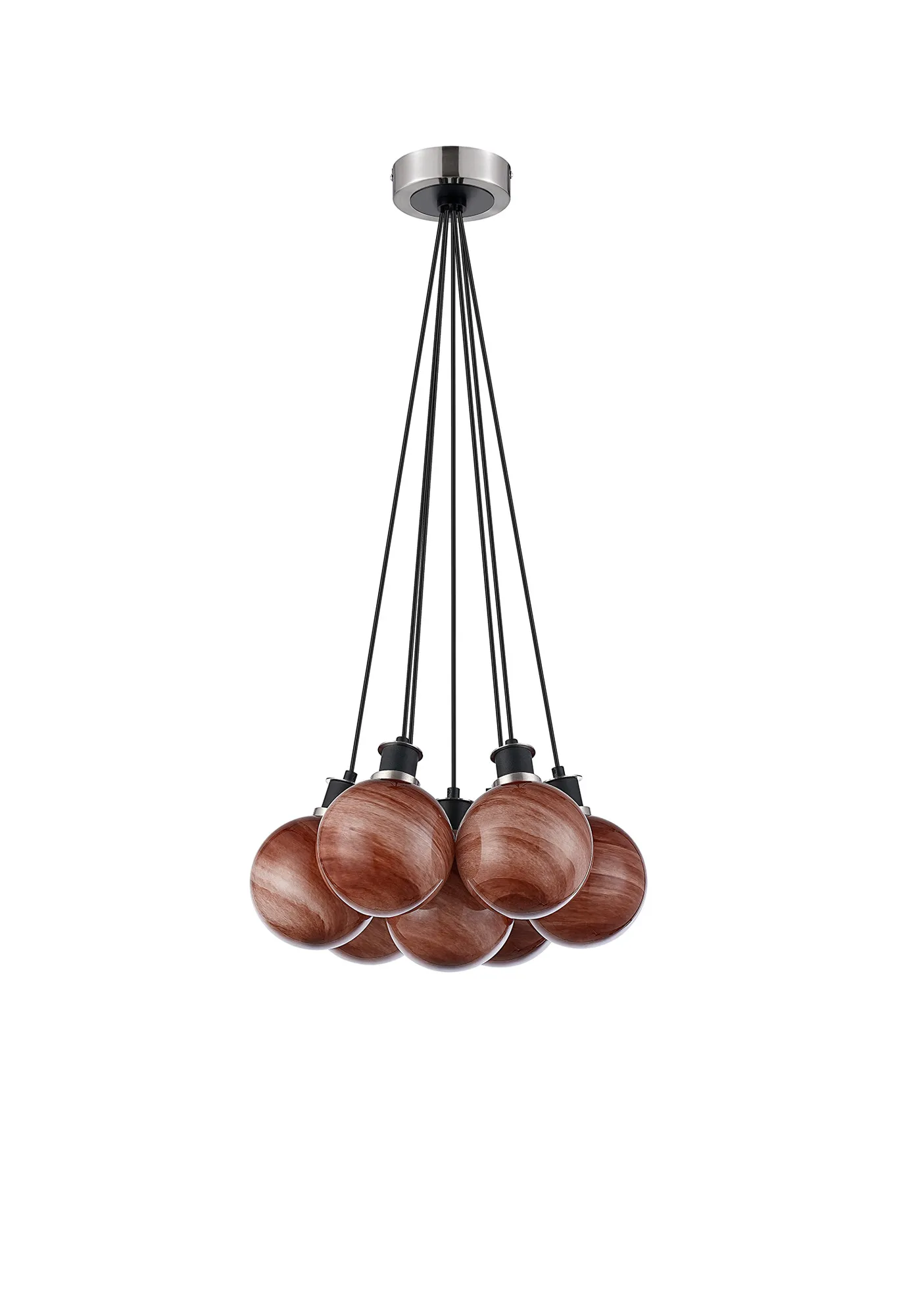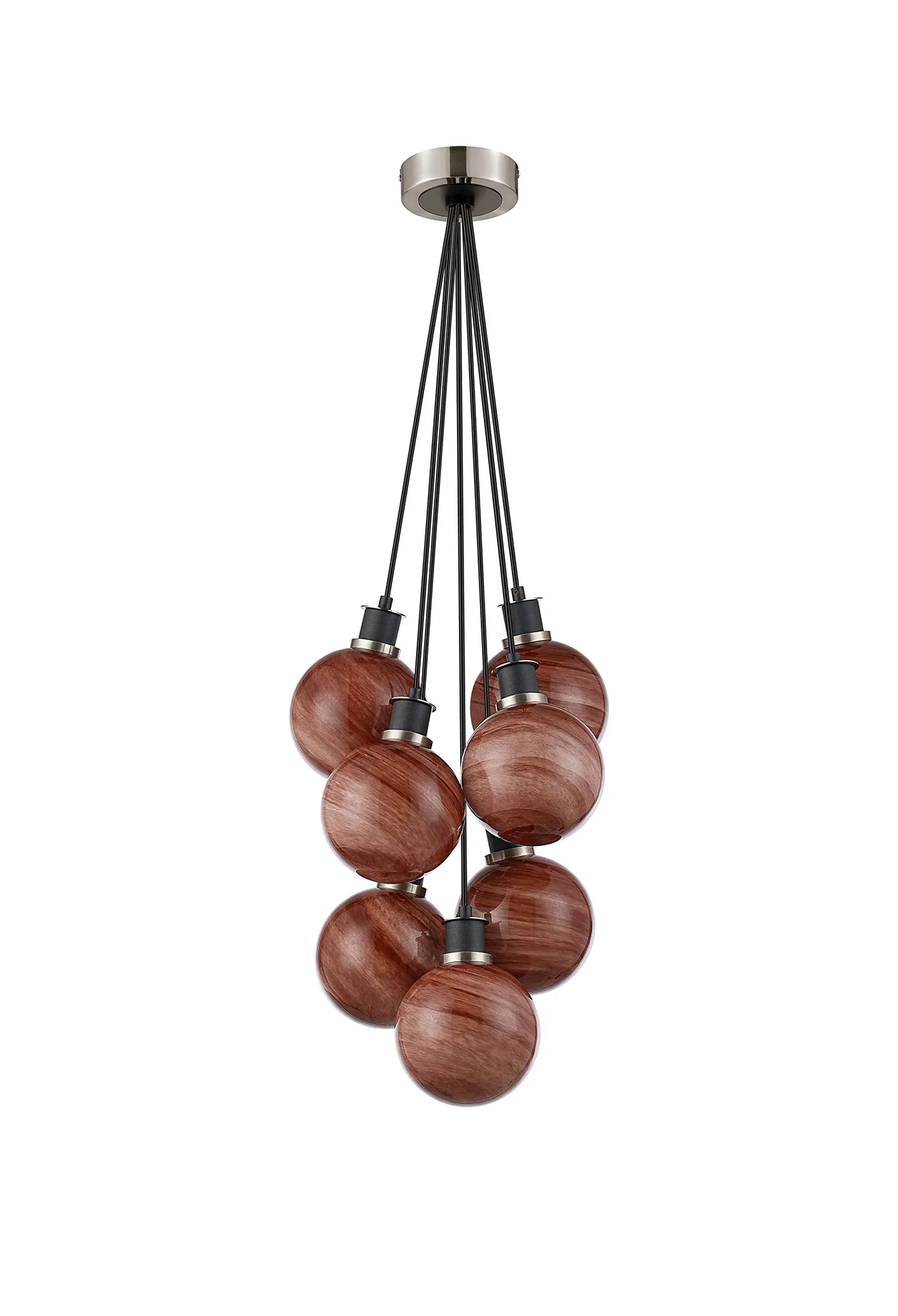 Fernie Switched Wall Light, 1 Light E14 With 15cm Round Dark Pink Marble Effect Glass Shade, Satin Nickel & Satin Black Framework