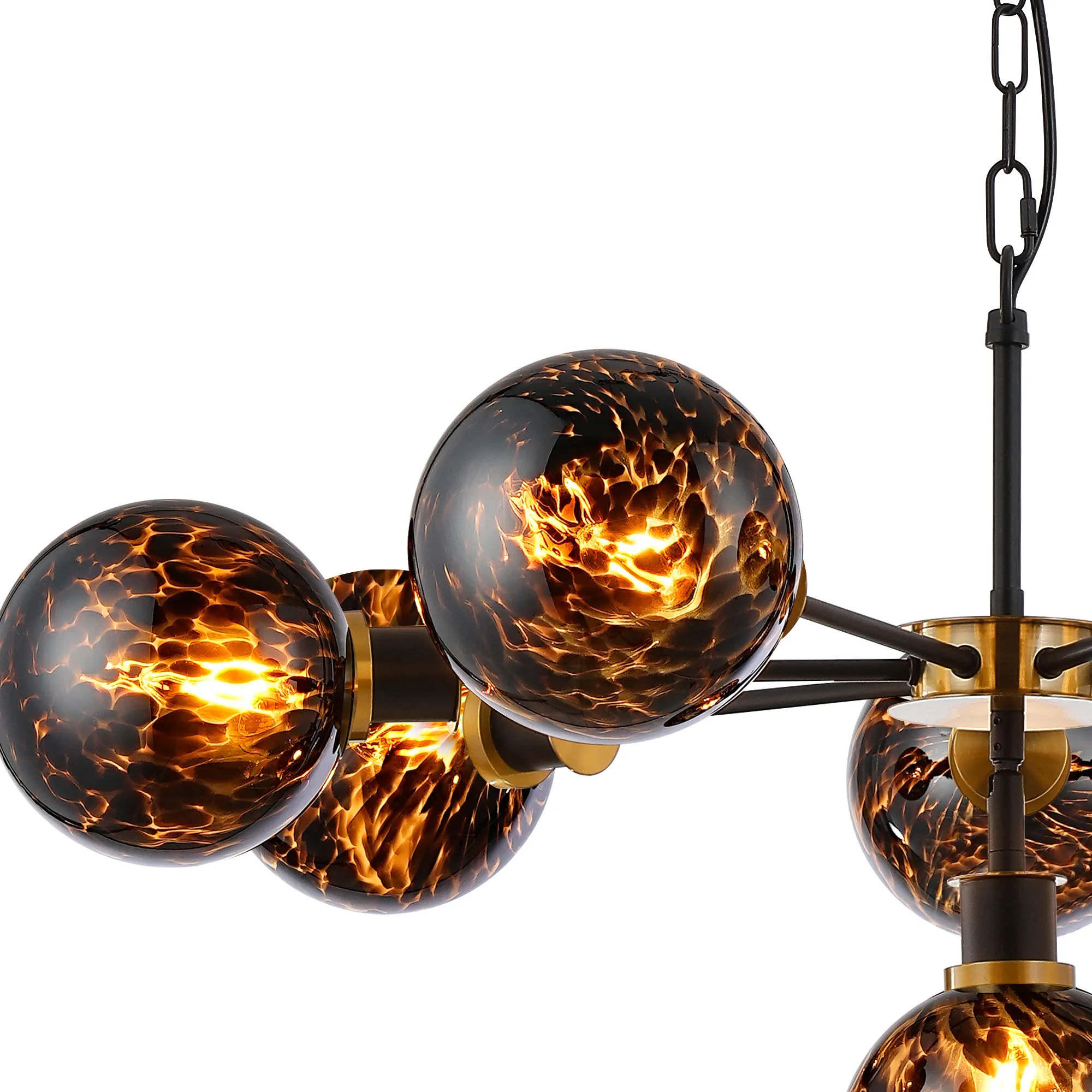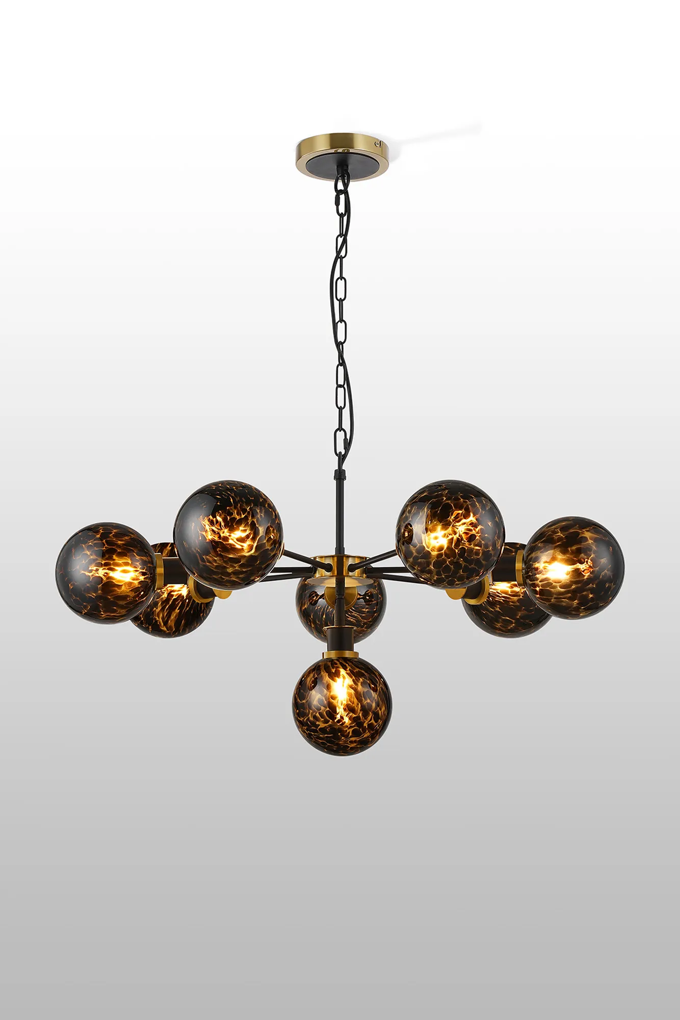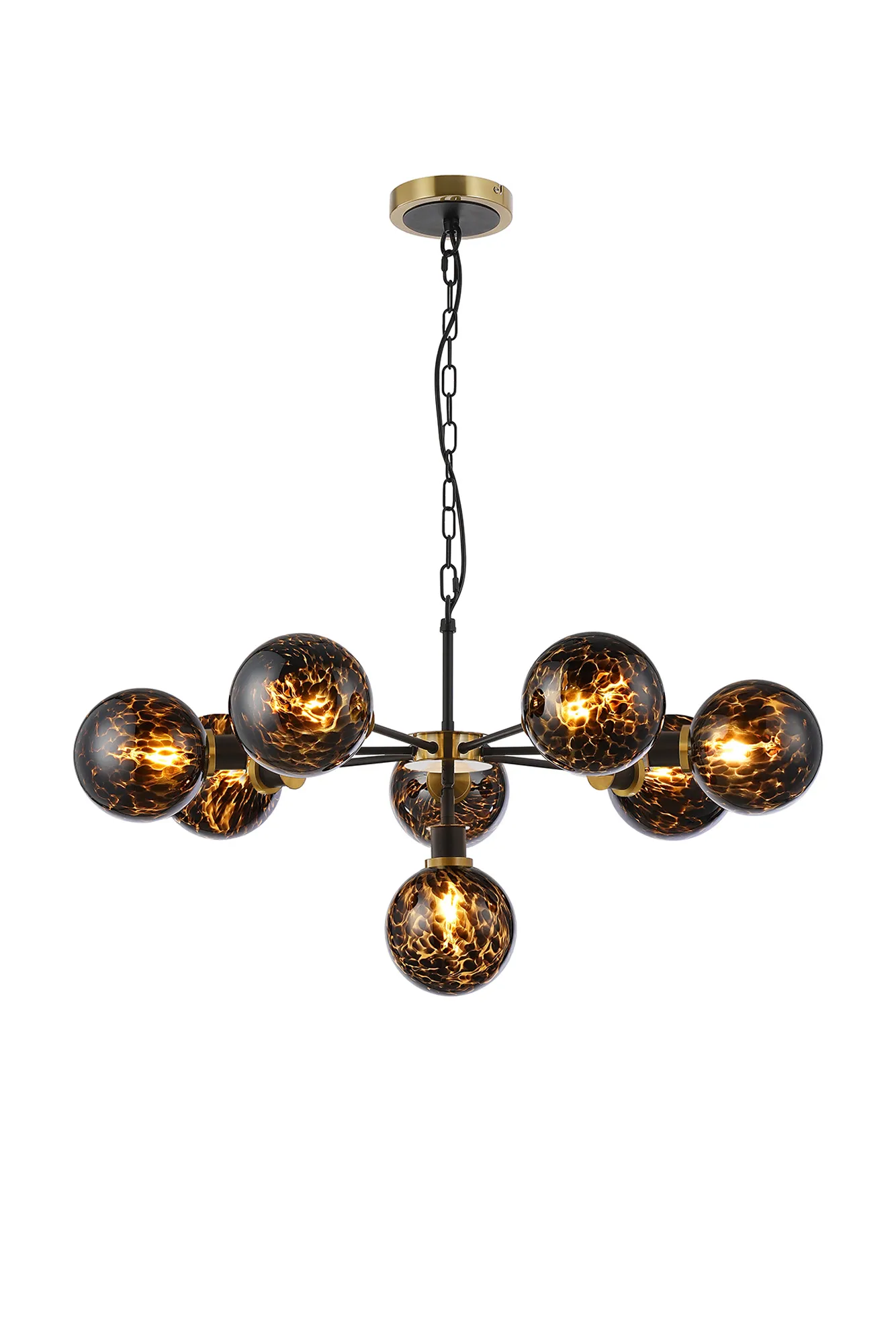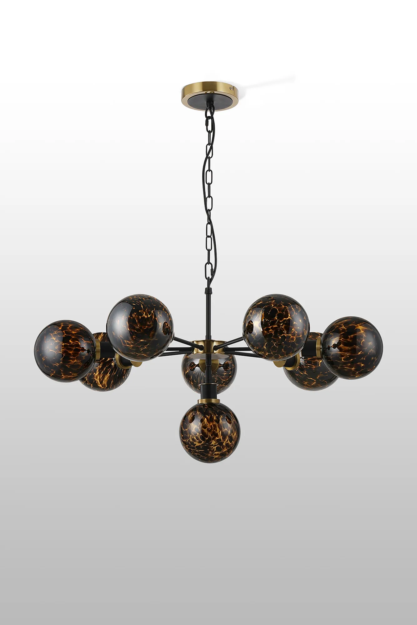 OTHER Fernie 84cm Pendant, 8 Light E14 With 15cm Round Brown & Amber Tortoise Shell Glass Shade, Brass & Satin Black