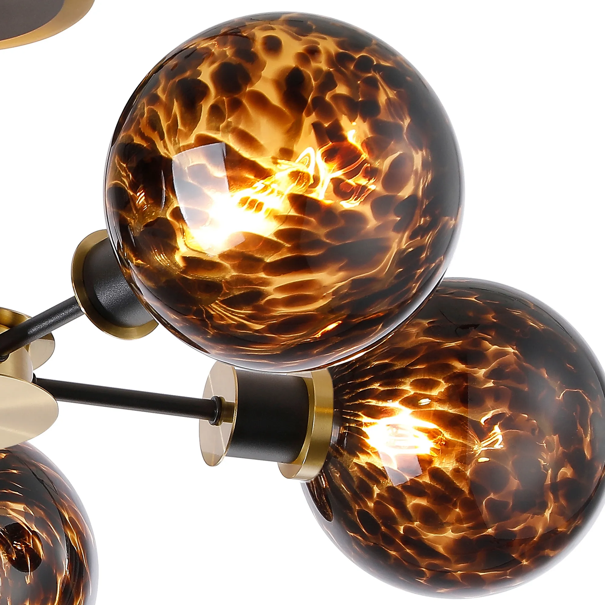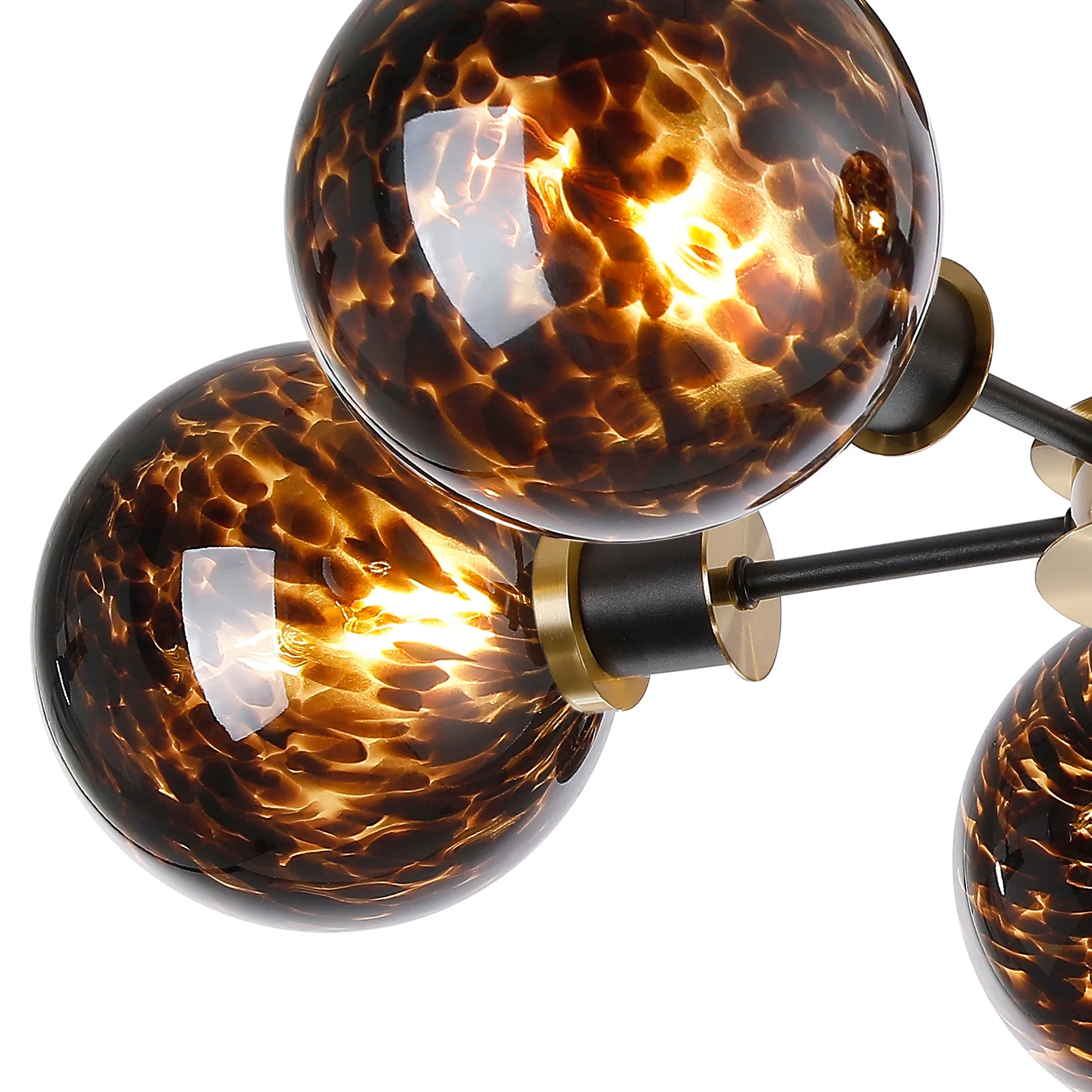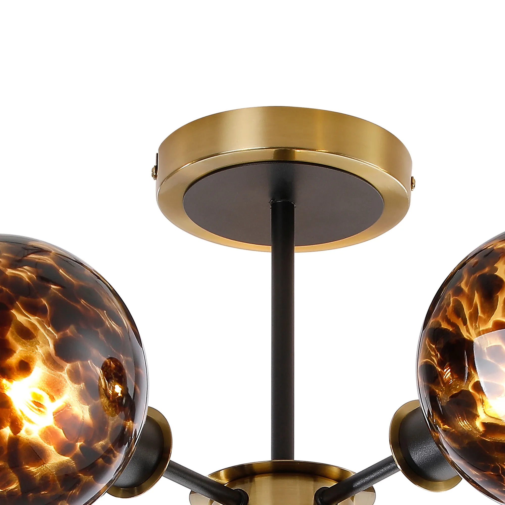 OTHER Fernie 52cm Semi Ceiling, 5 Light E14 With 15cm Round Brown & Amber Tortoise Shell Glass Shade, Brass & Satin Black