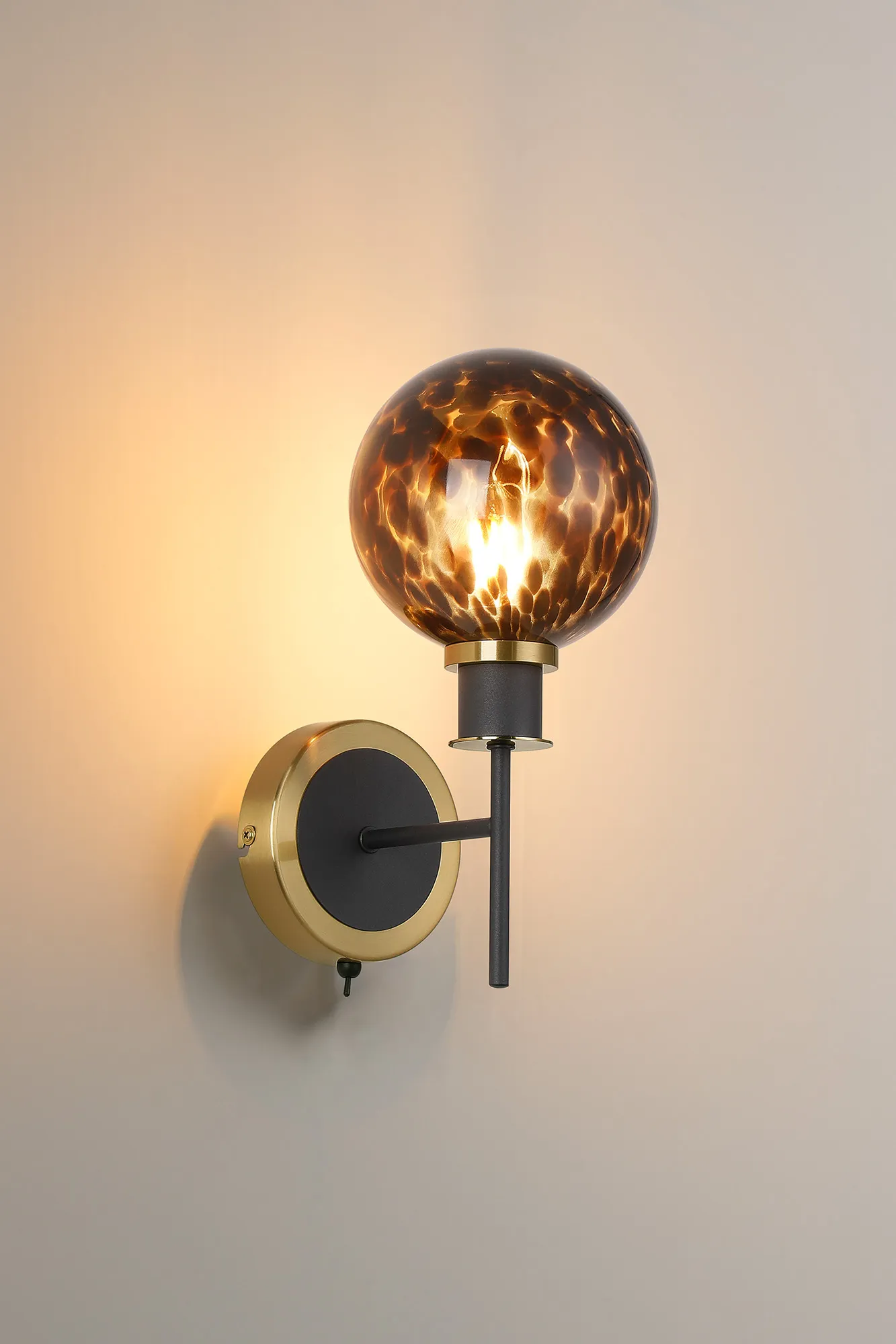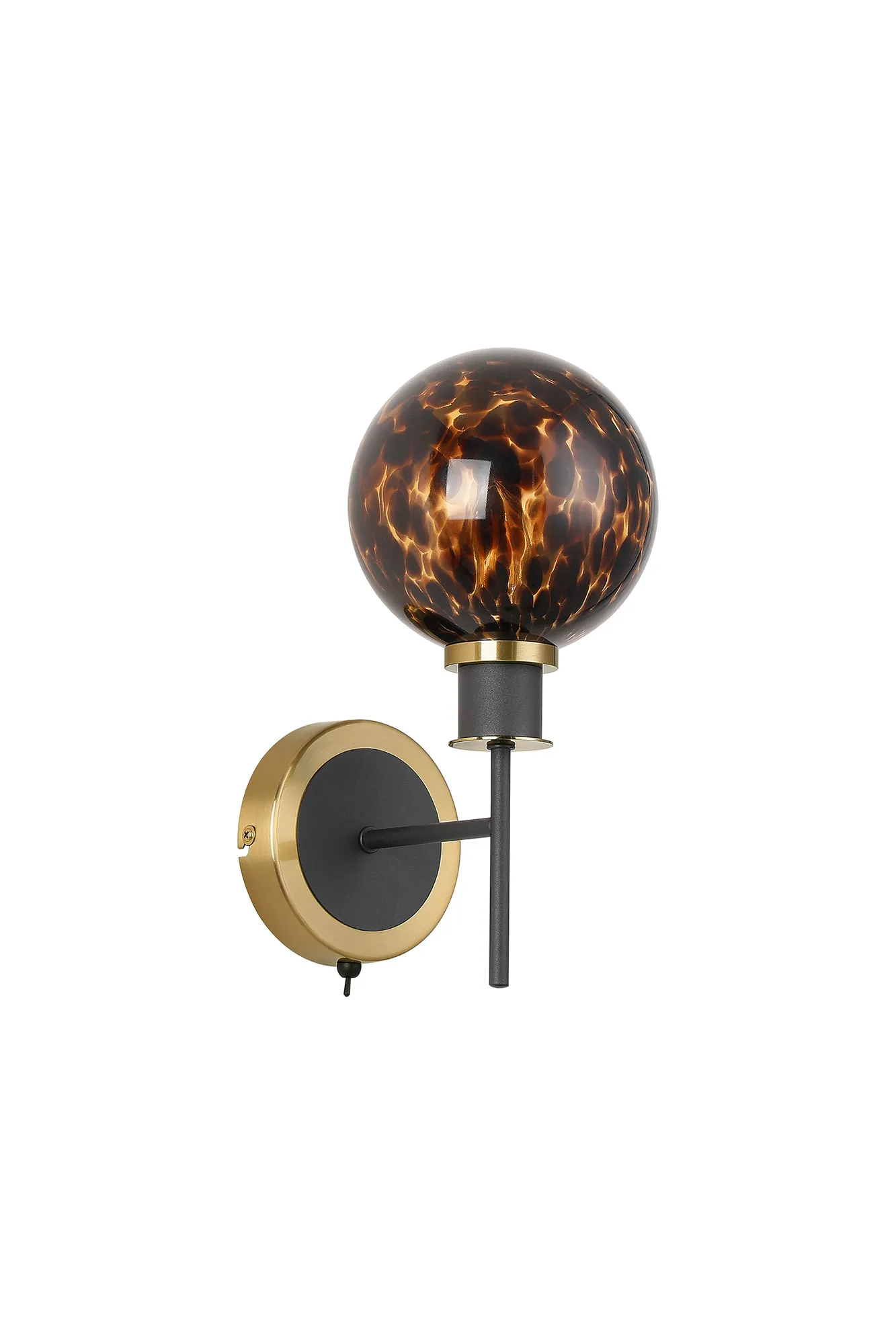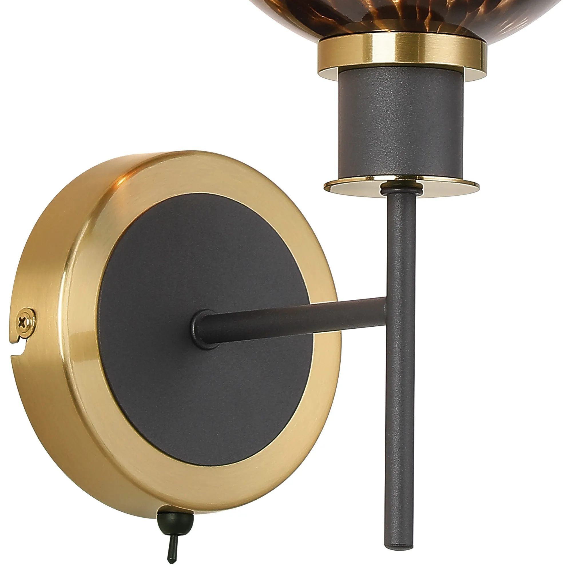 OTHER Fernie Switched Wall Light, 1 Light E14 With 15cm Round Brown & Amber Tortoise Shell Glass Shade, Brass & Satin Black