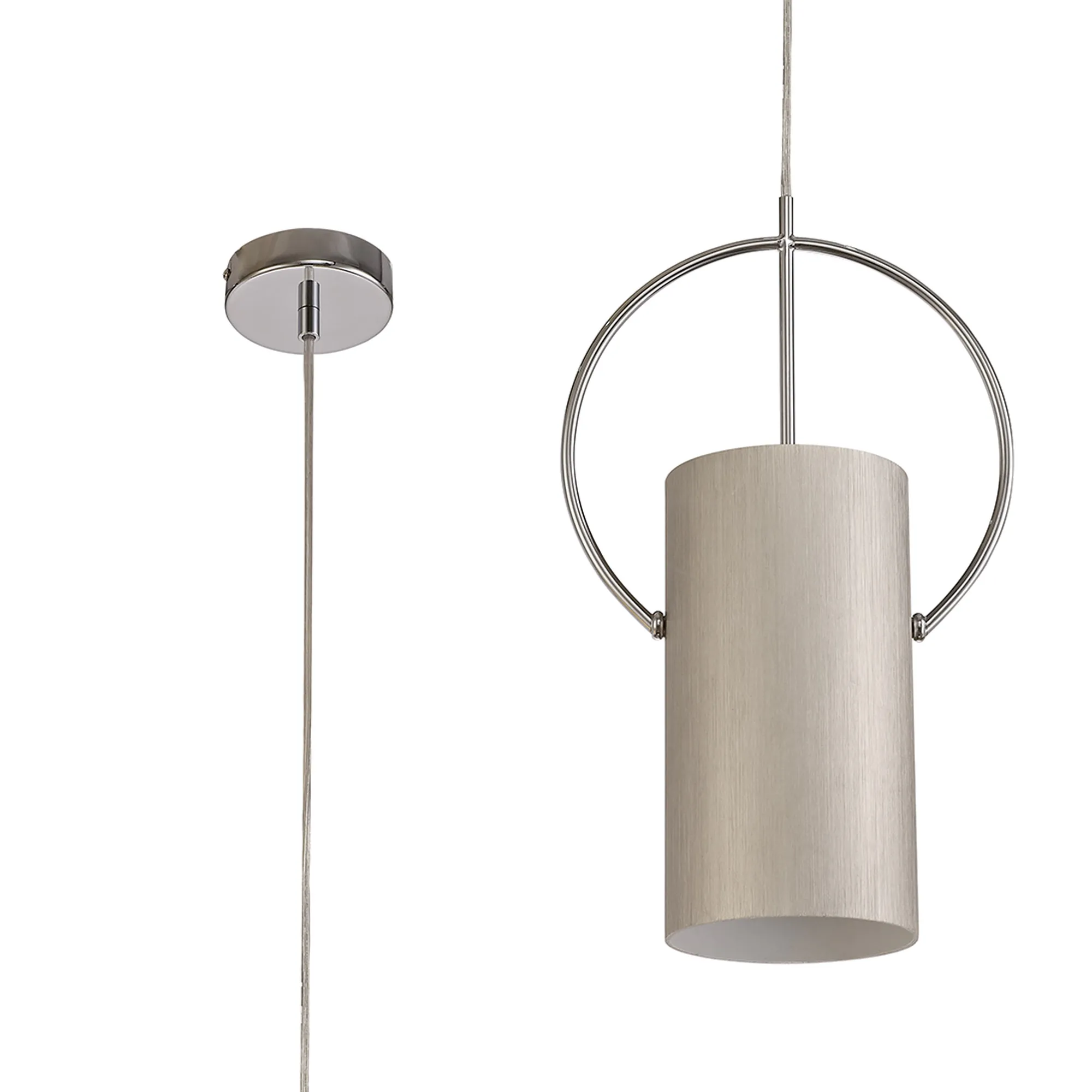 The polished chrome ring featured on the Glover single pendants creates a halo effect above the top of the narrow cylindrical shade which is stylish when the light is not in use yet projects the light from the E27 lamp holder when illuminated. Glover is available in four shade colour finishes; coffee, gold, satin nickel and black giving a suitable option to complement most décor.