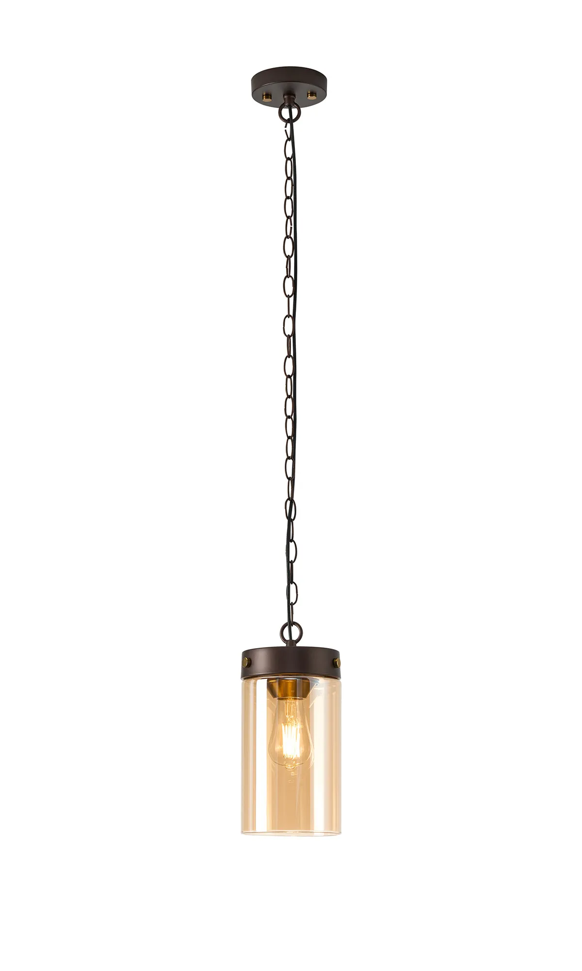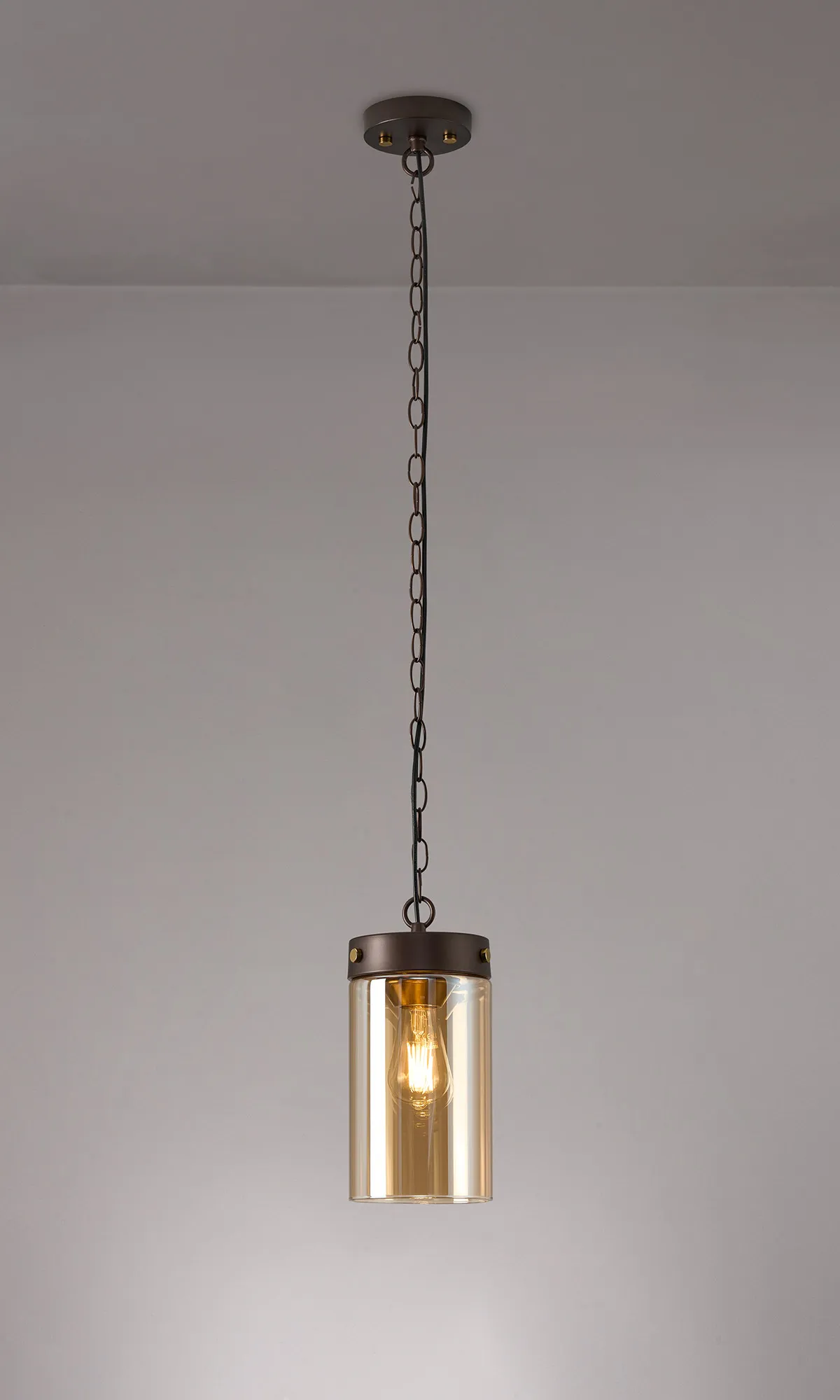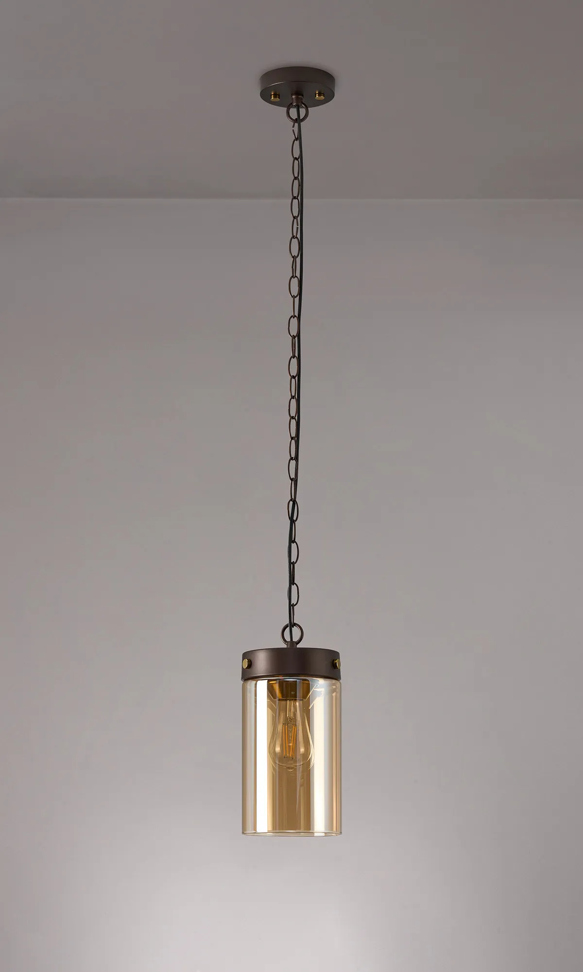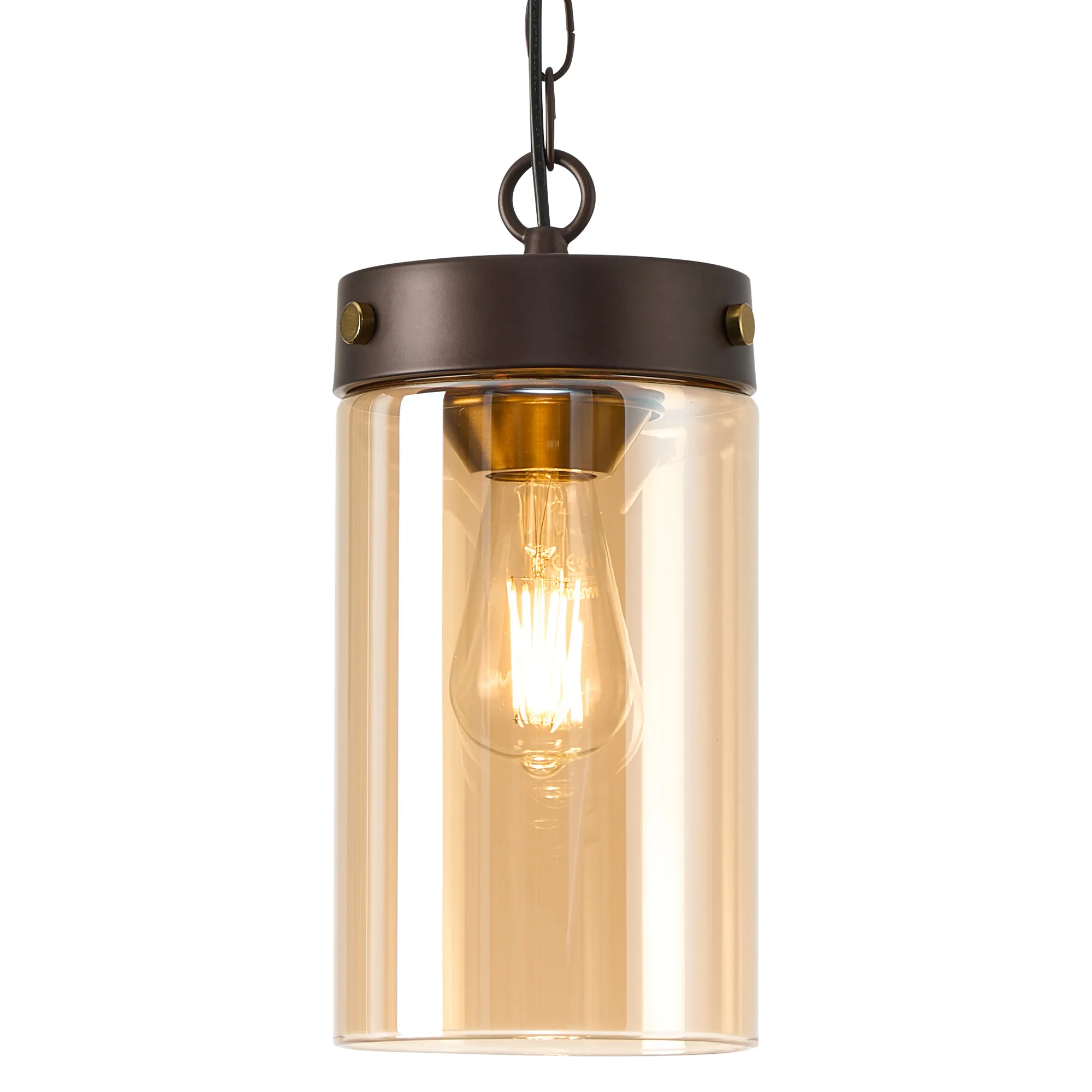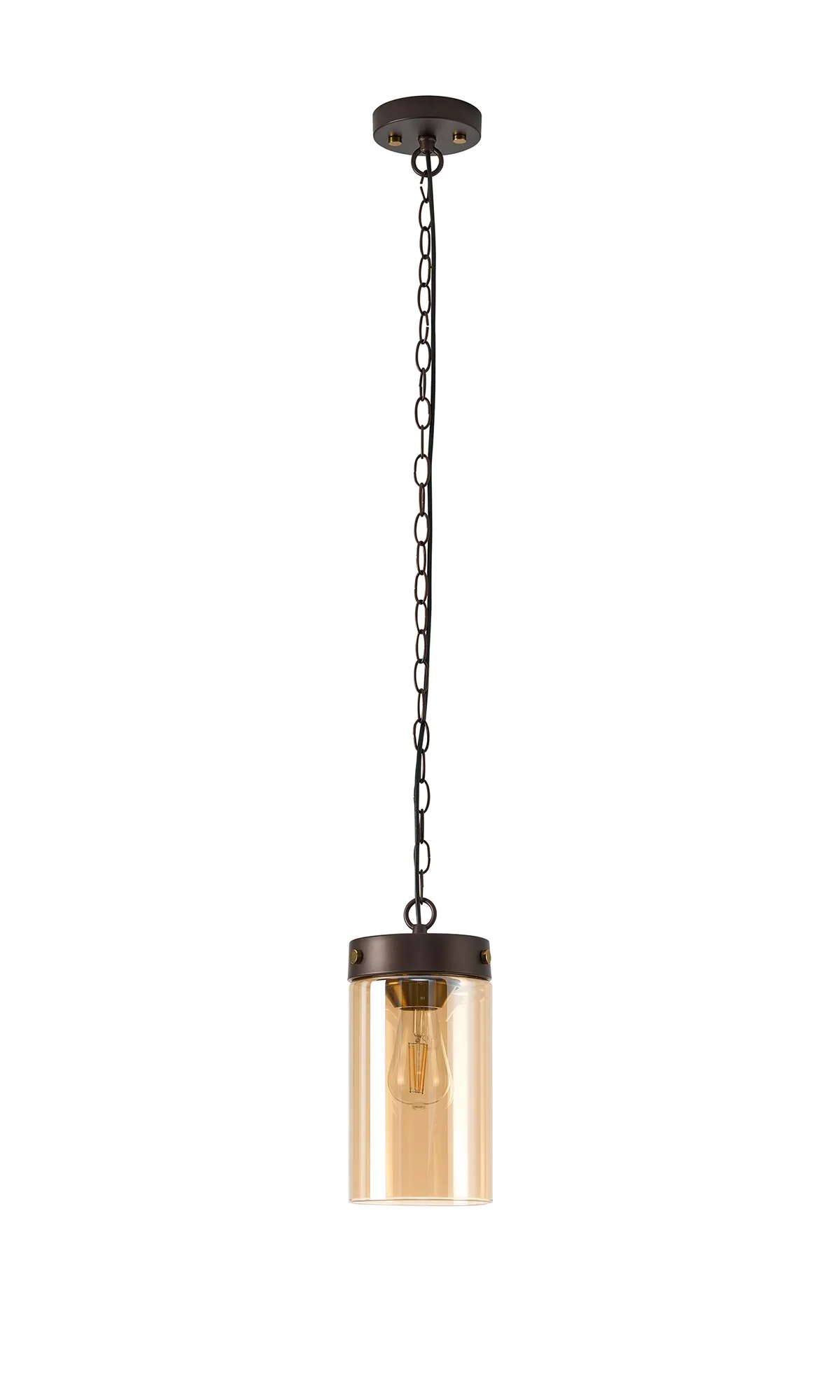 OTHER Somers Single Pendant 1 Light E27, Brown Oxide/Gold Bronze With Amber Glass Shade