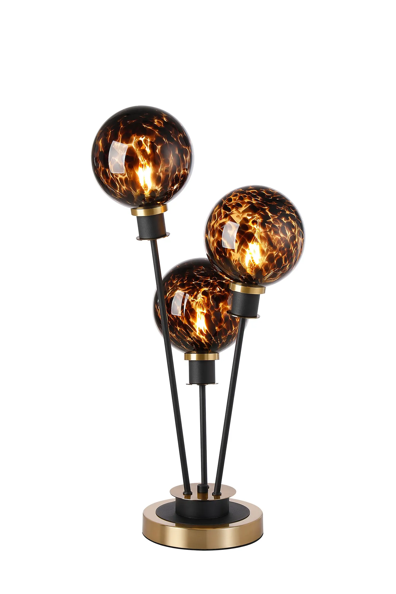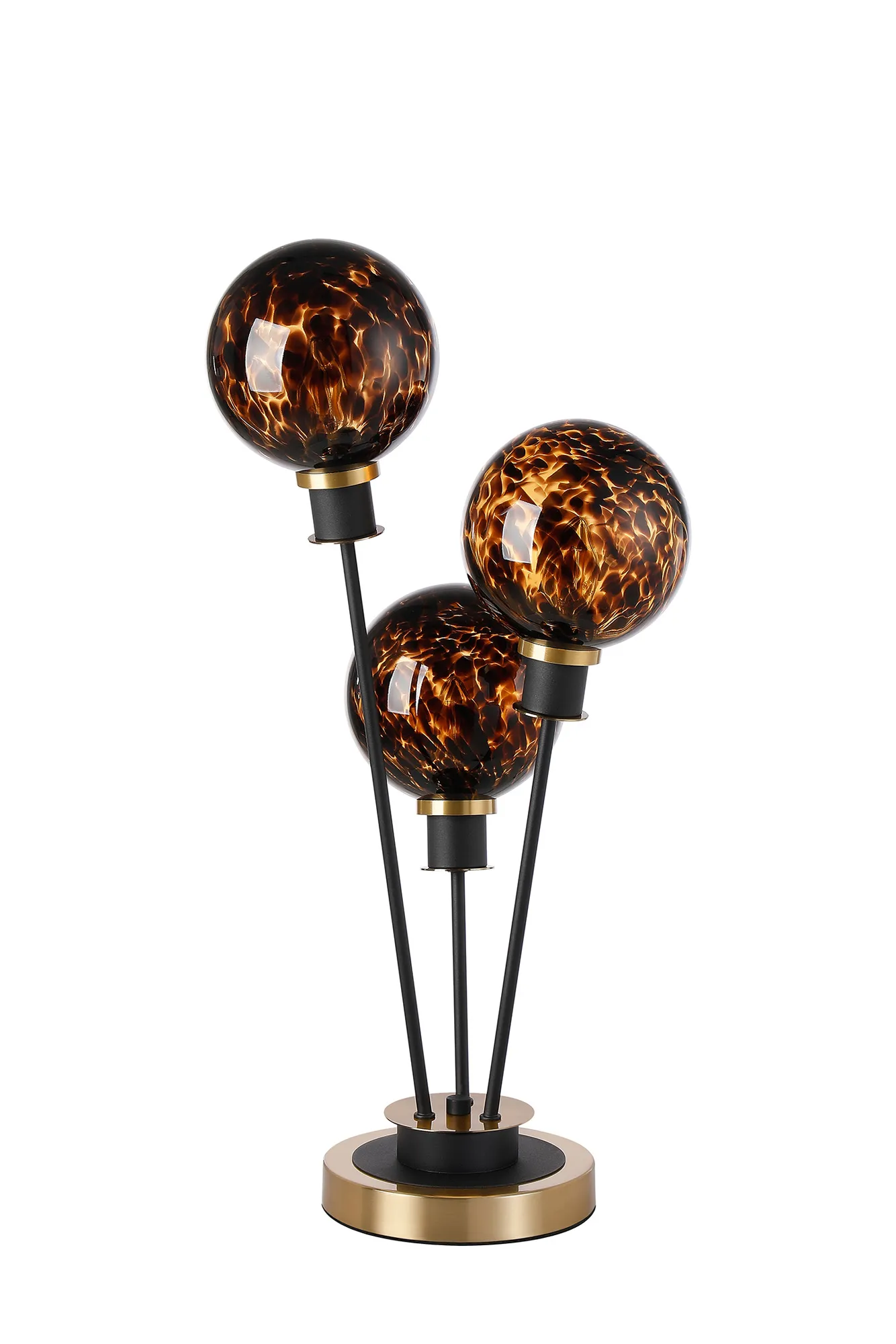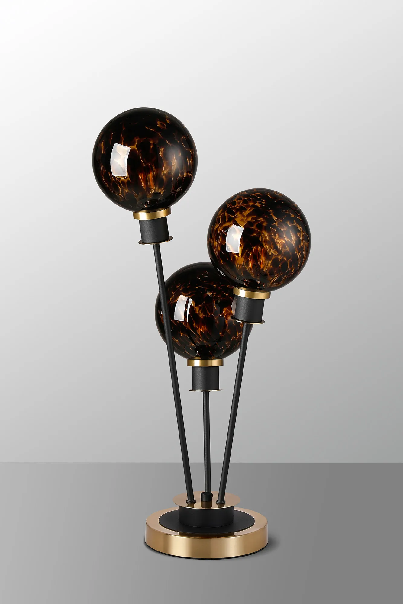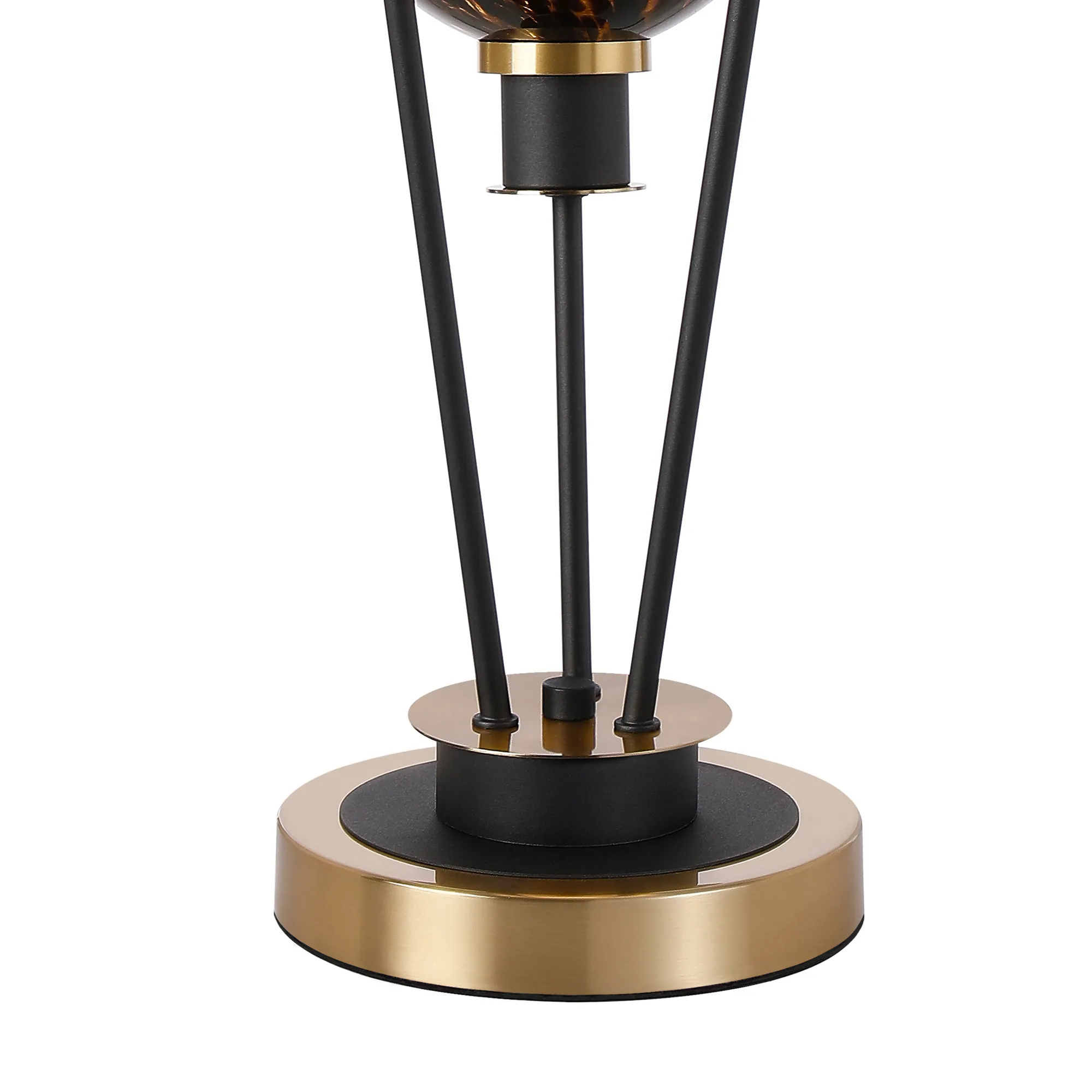 Fernie Floor Lamp, 5 Light E14, With 15cm Round Brown & Amber Tortoise Shell Glass Shade, Brass & Satin Black