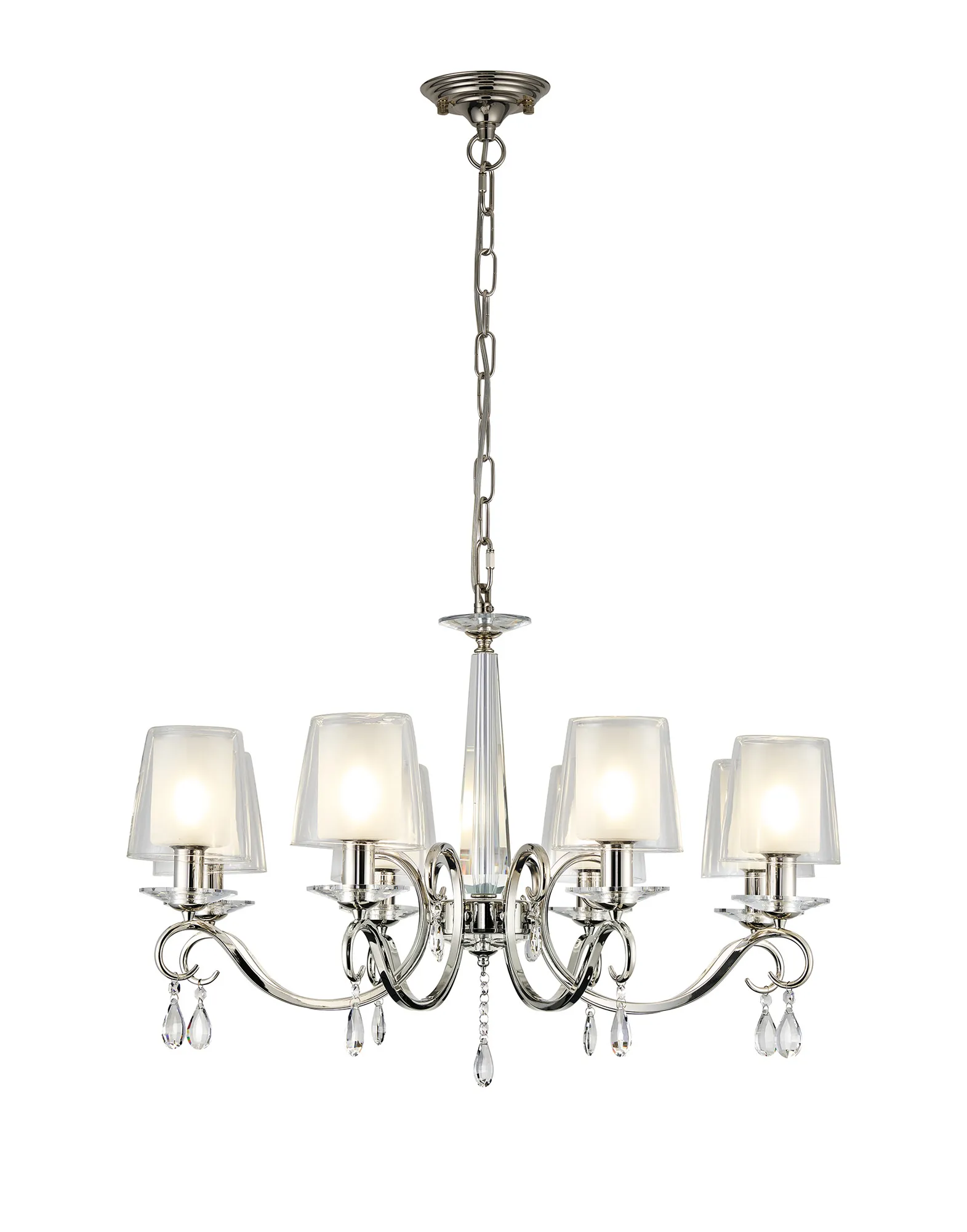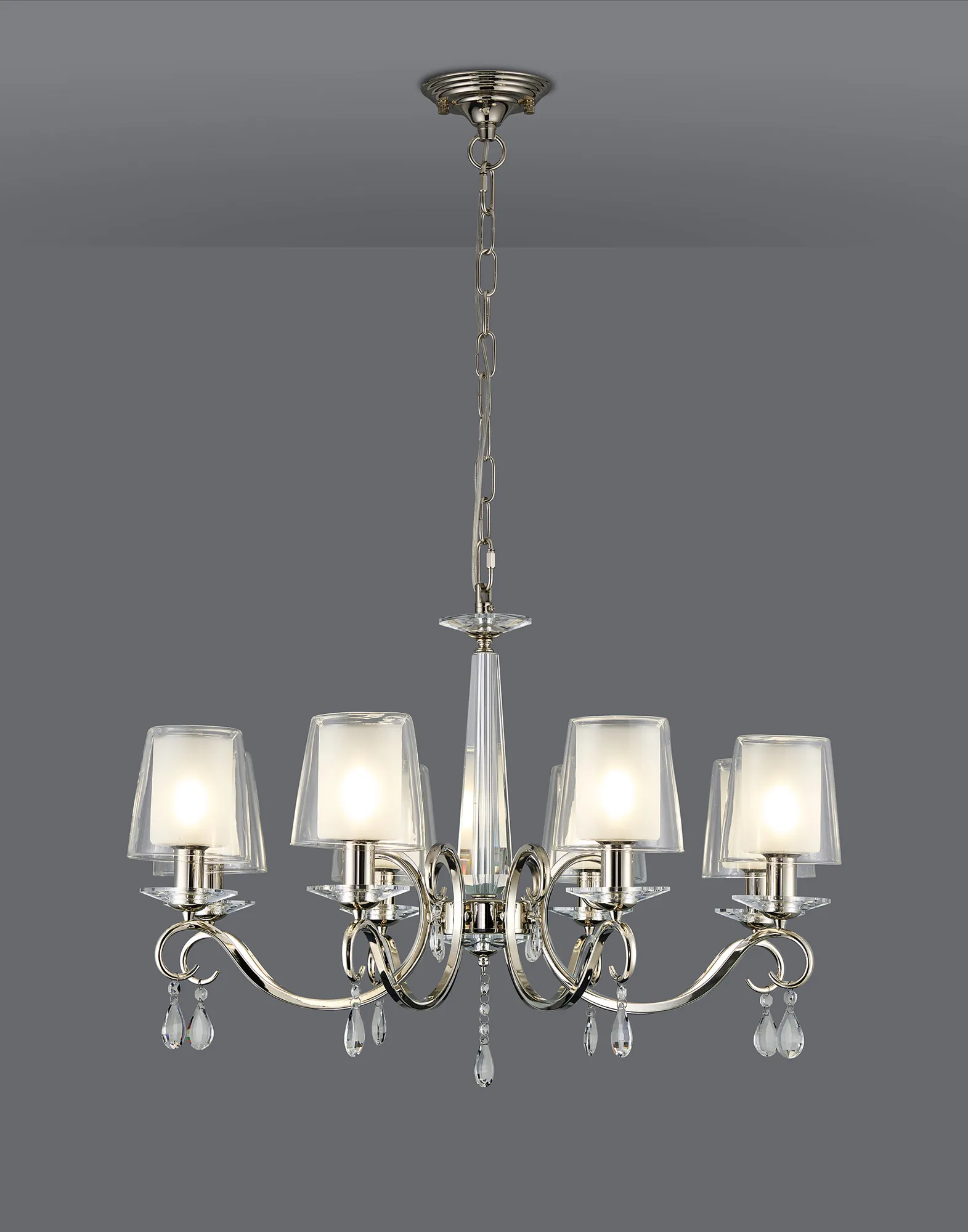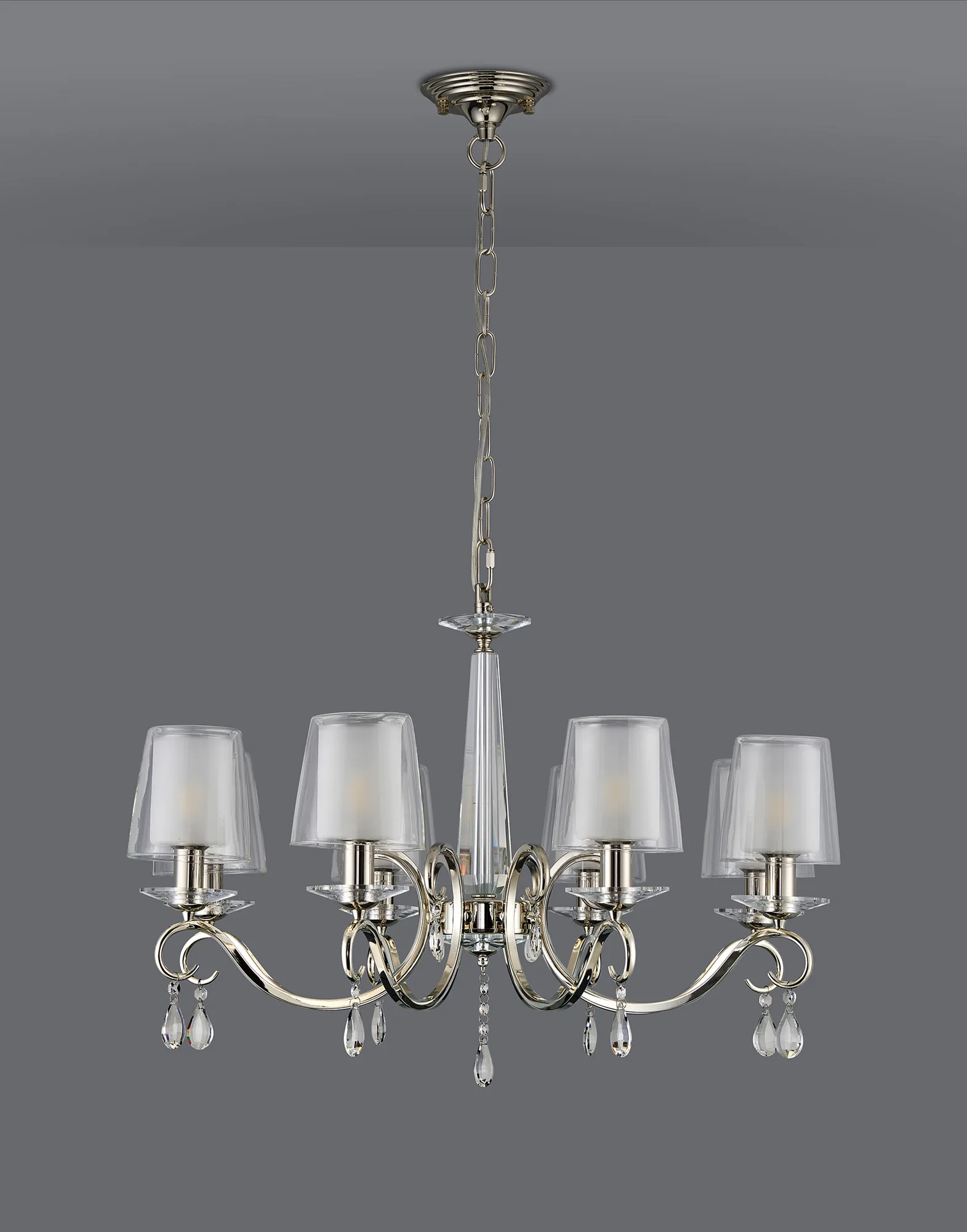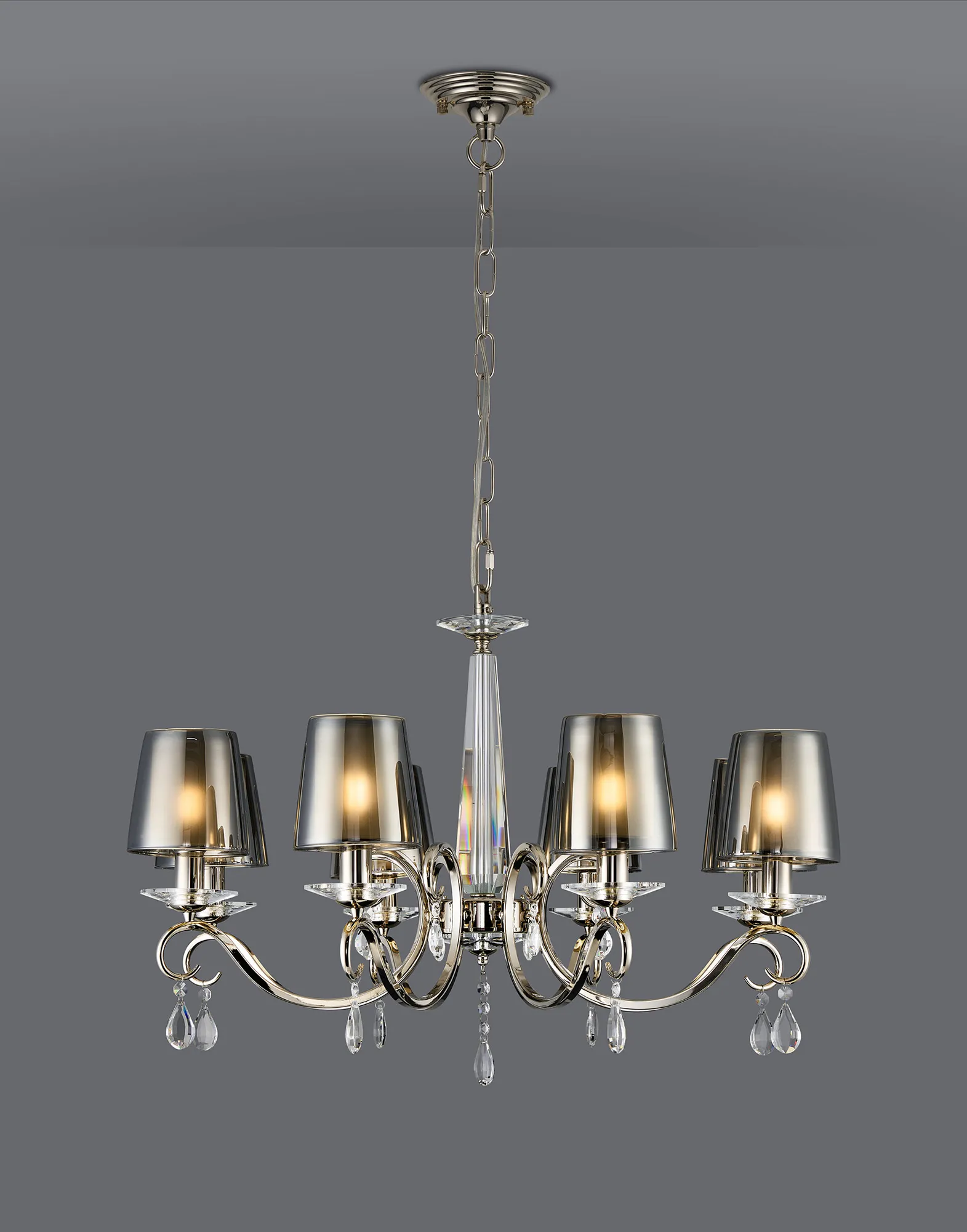The Dauphin range is a chic and contemporary collection of crystal chandeliers and wall lights, designed to bring elegance and sophistication to any interior. Available in three luxurious finishes—French gold, antique brass, and polished nickel—this versatile range caters to both classic and modern design sensibilities. At the heart of the collection are the stunning crystal chandeliers, available in a variety of sizes to suit different spaces. To complement the pendants, the range includes matching single and double wall lamps, along with table and floor lamps ensuring a cohesive lighting scheme throughout your home or project. Each piece in the Dauphin range is available with or without a crystal or a glass shade, allowing you to tailor the look to your space. When opting for glass, choose from a selection of elegant shades in amber, clear, or smoked finishes—offering flexibility to suit both classic and contemporary interiors. With its refined detailing and flexible design options, the Dauphin collection delivers timeless beauty with a modern edge.