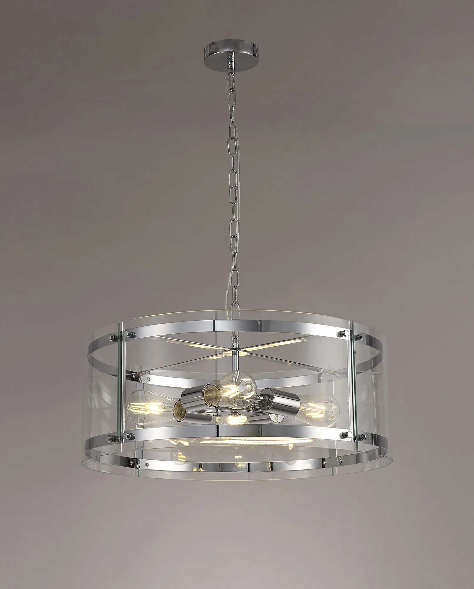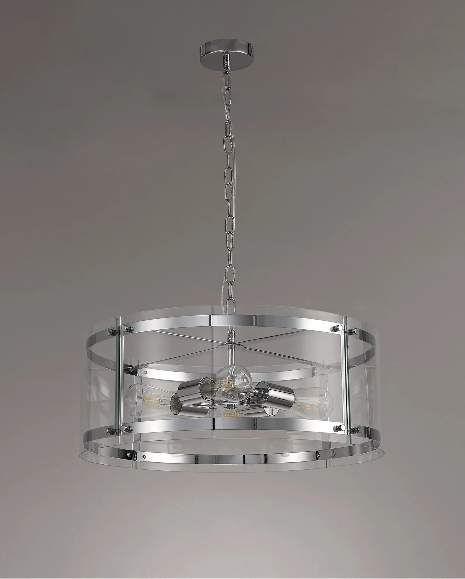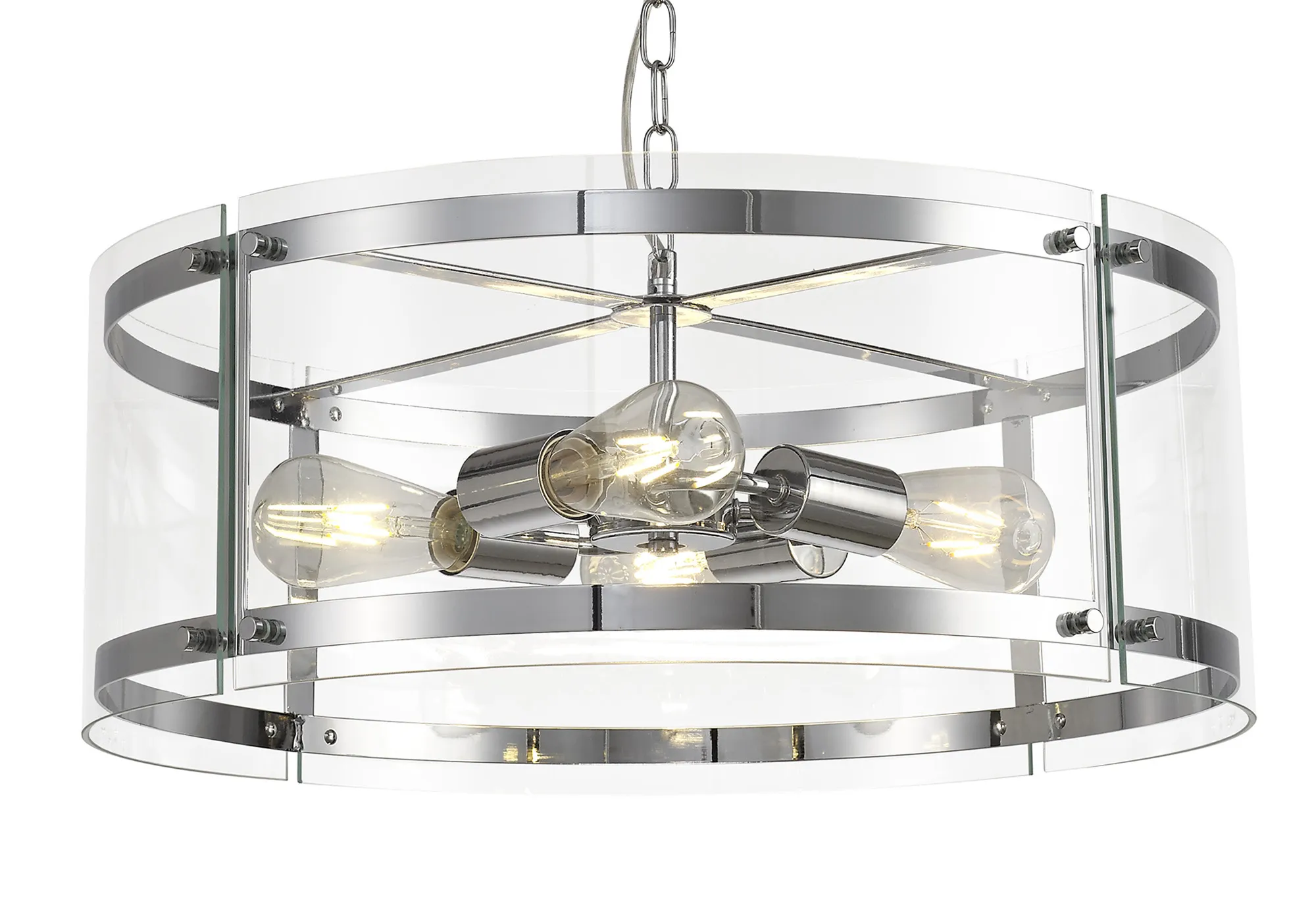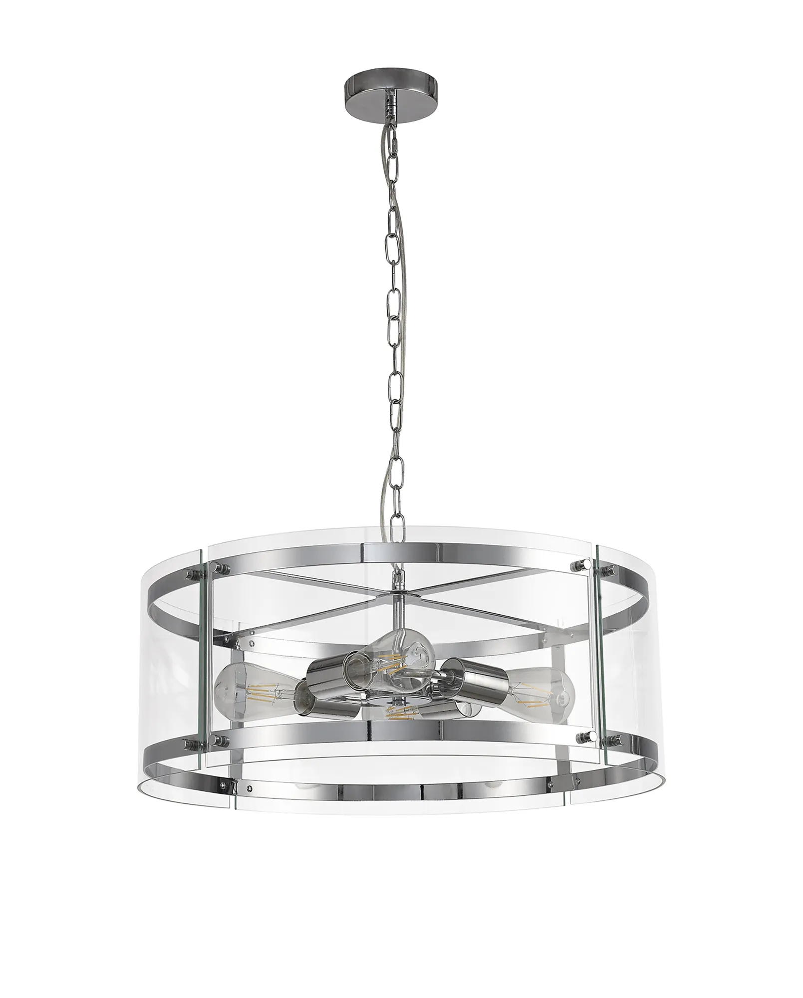 Hindon Pendant, 1 x E27, Polished Chrome / Plain Clear (A) Glass