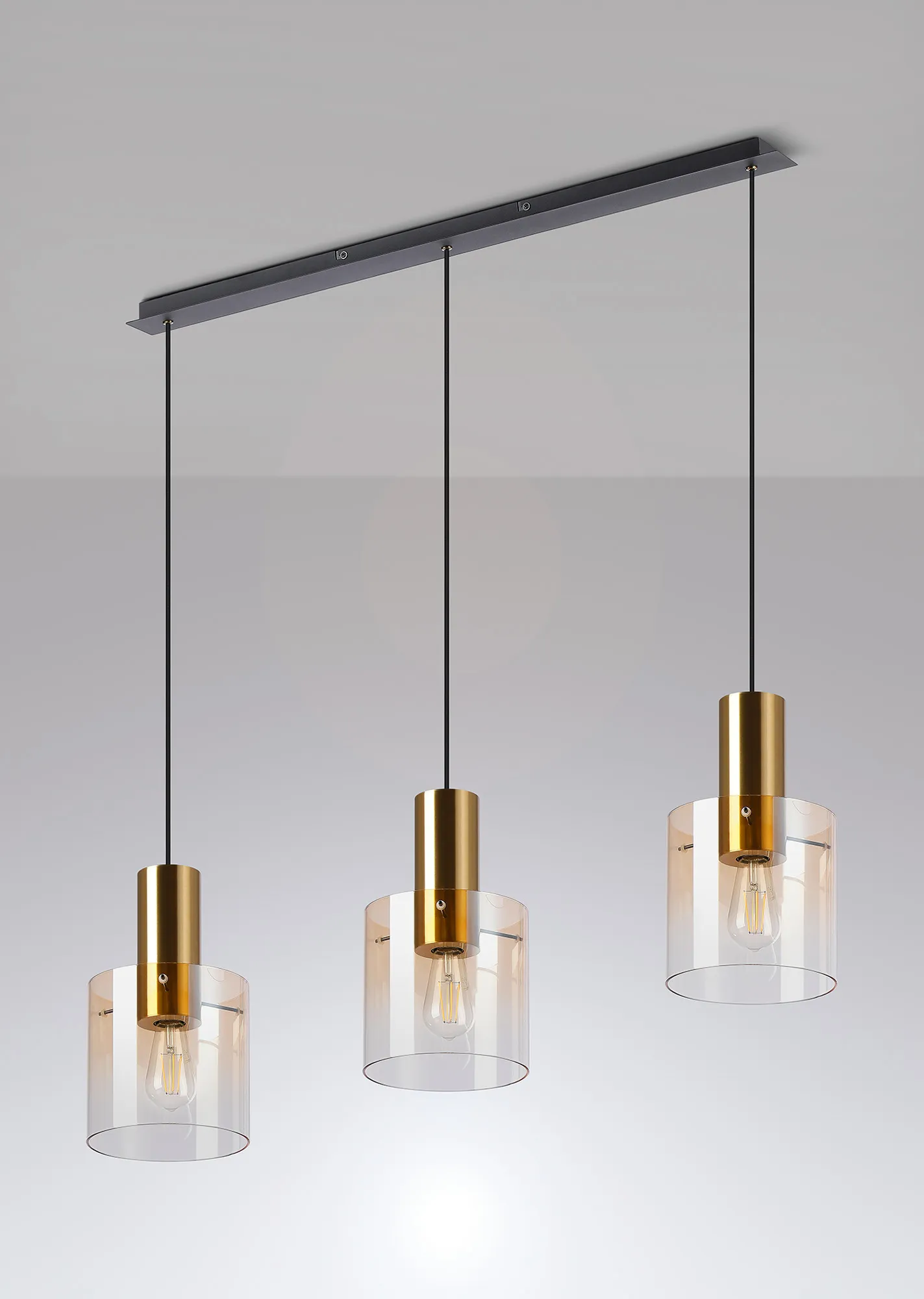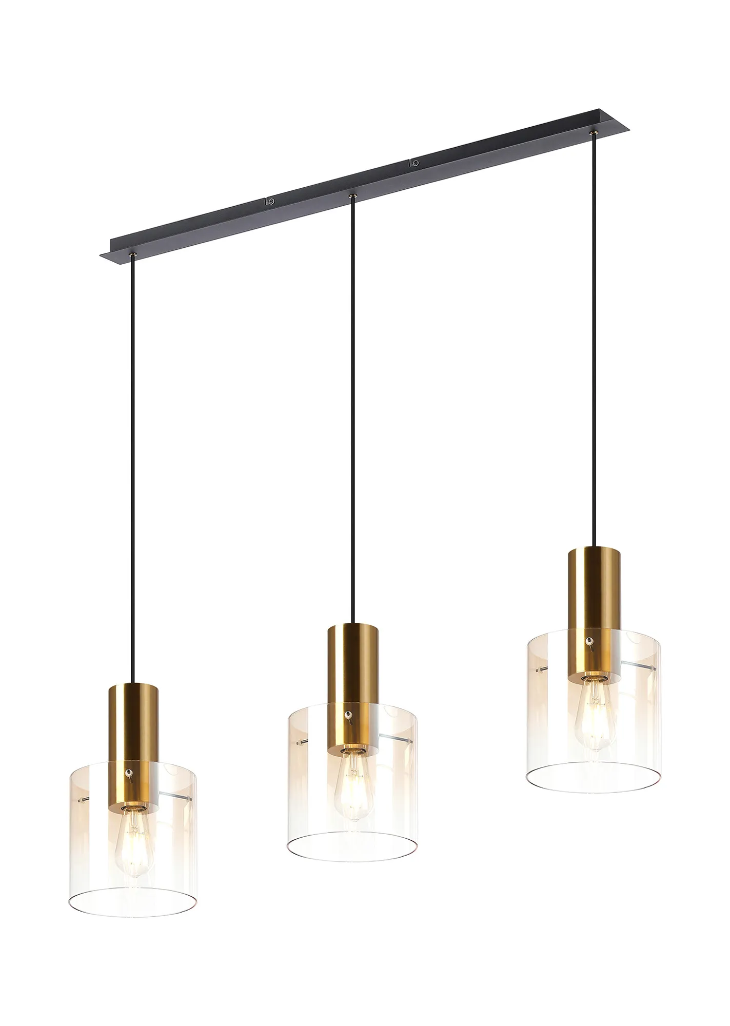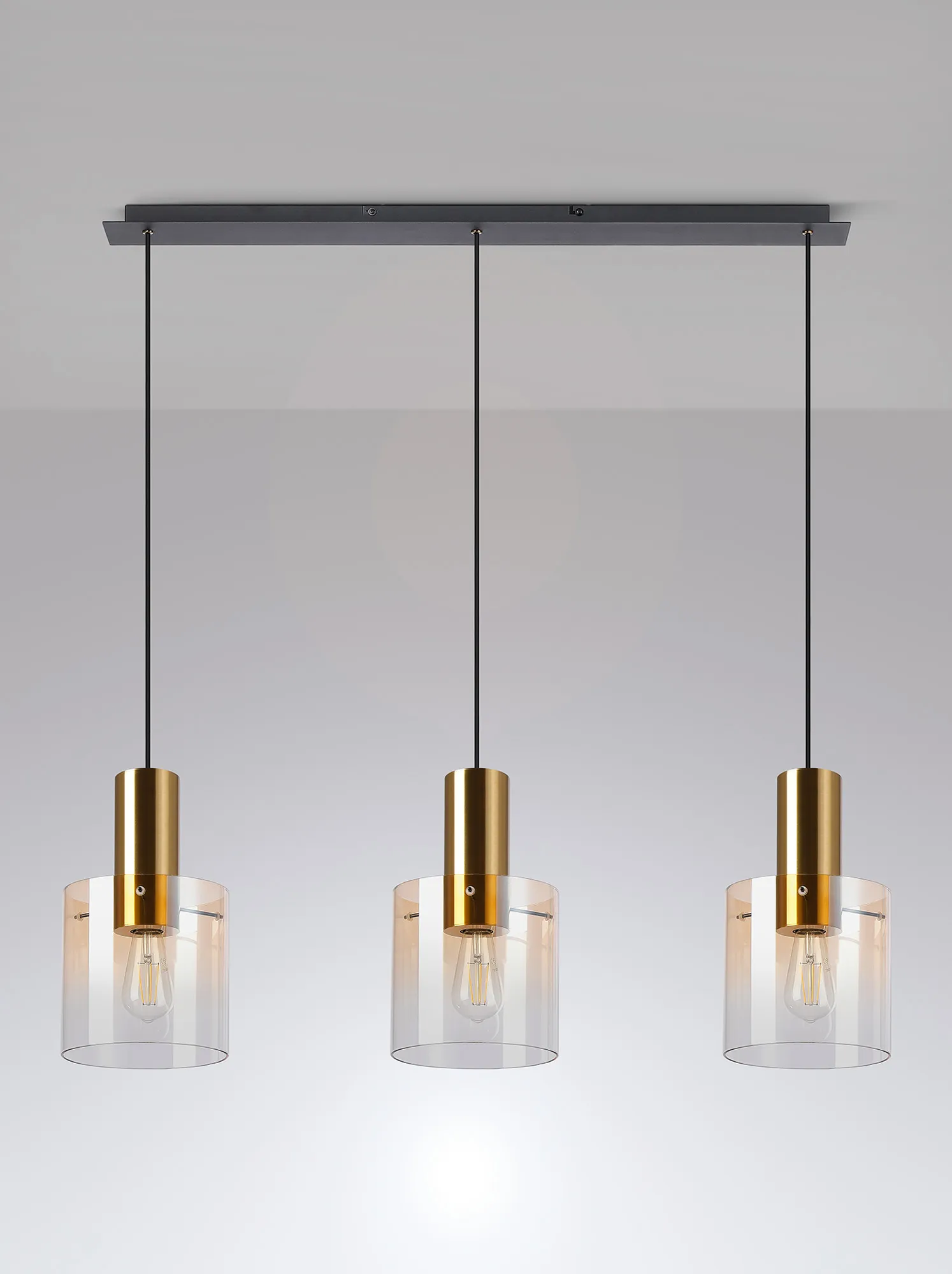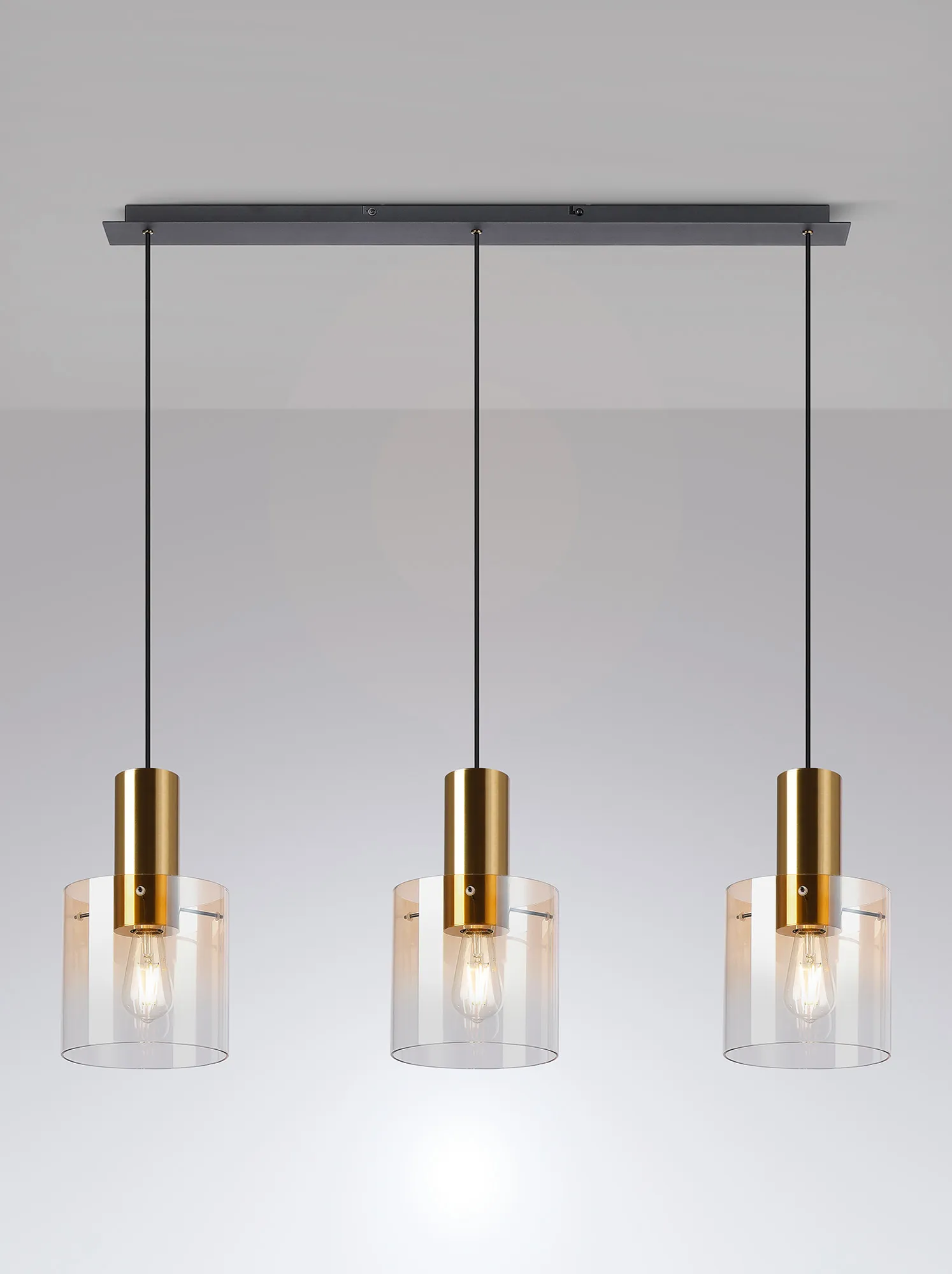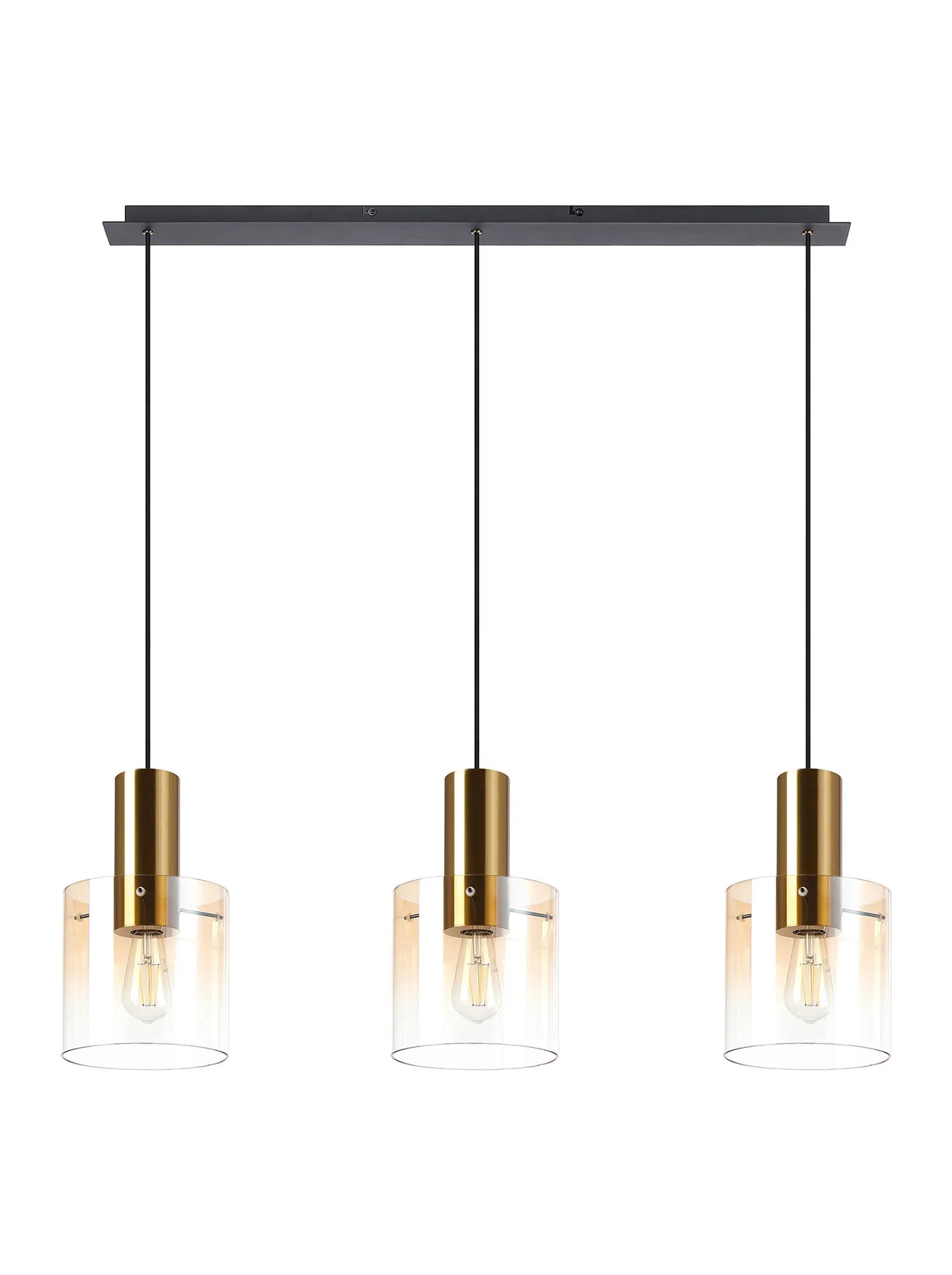 OTHER Mangere Linear Pendant, 3 Light Adjustable E27, Brass/Sand Black/Amber Fade Glass